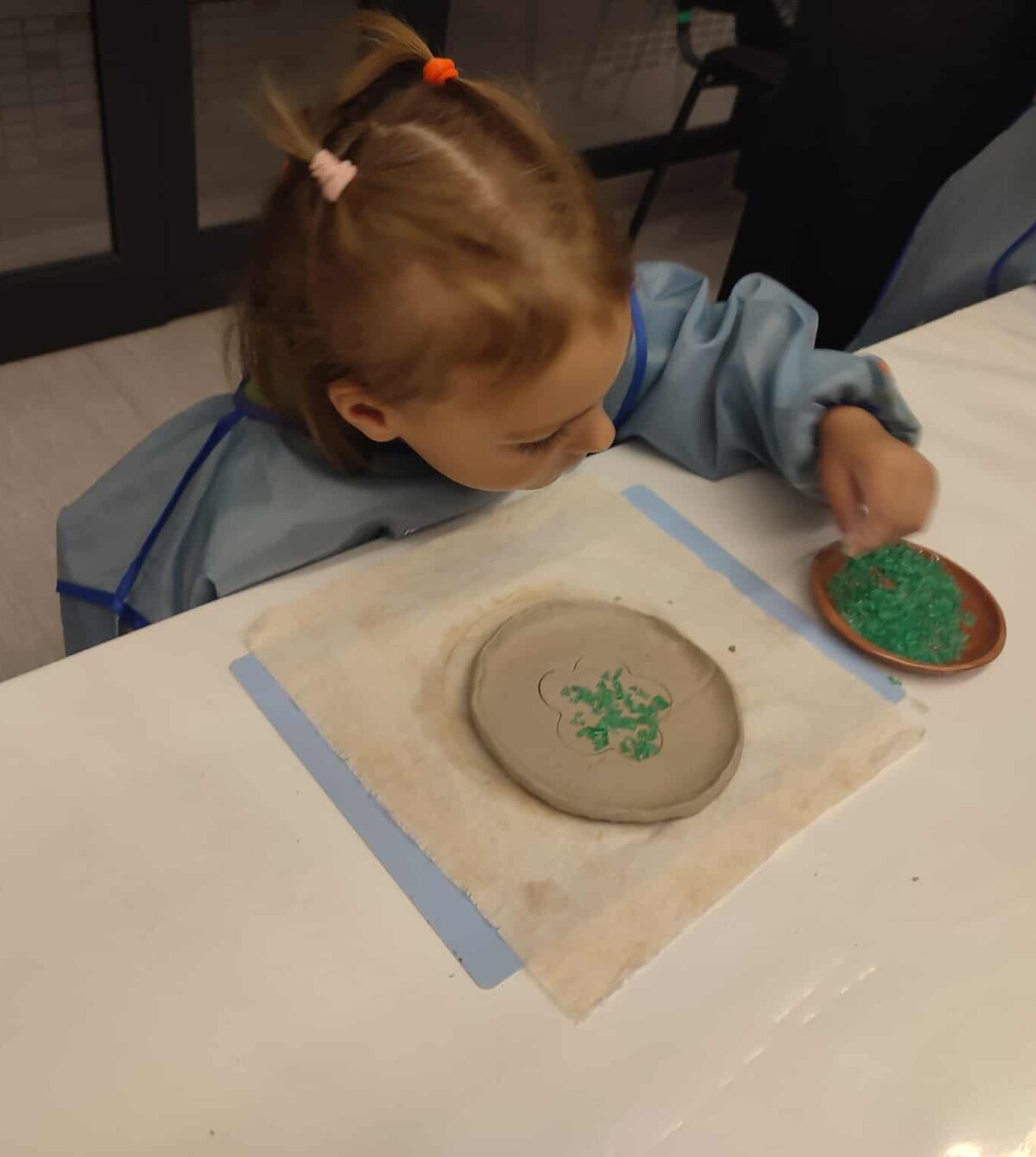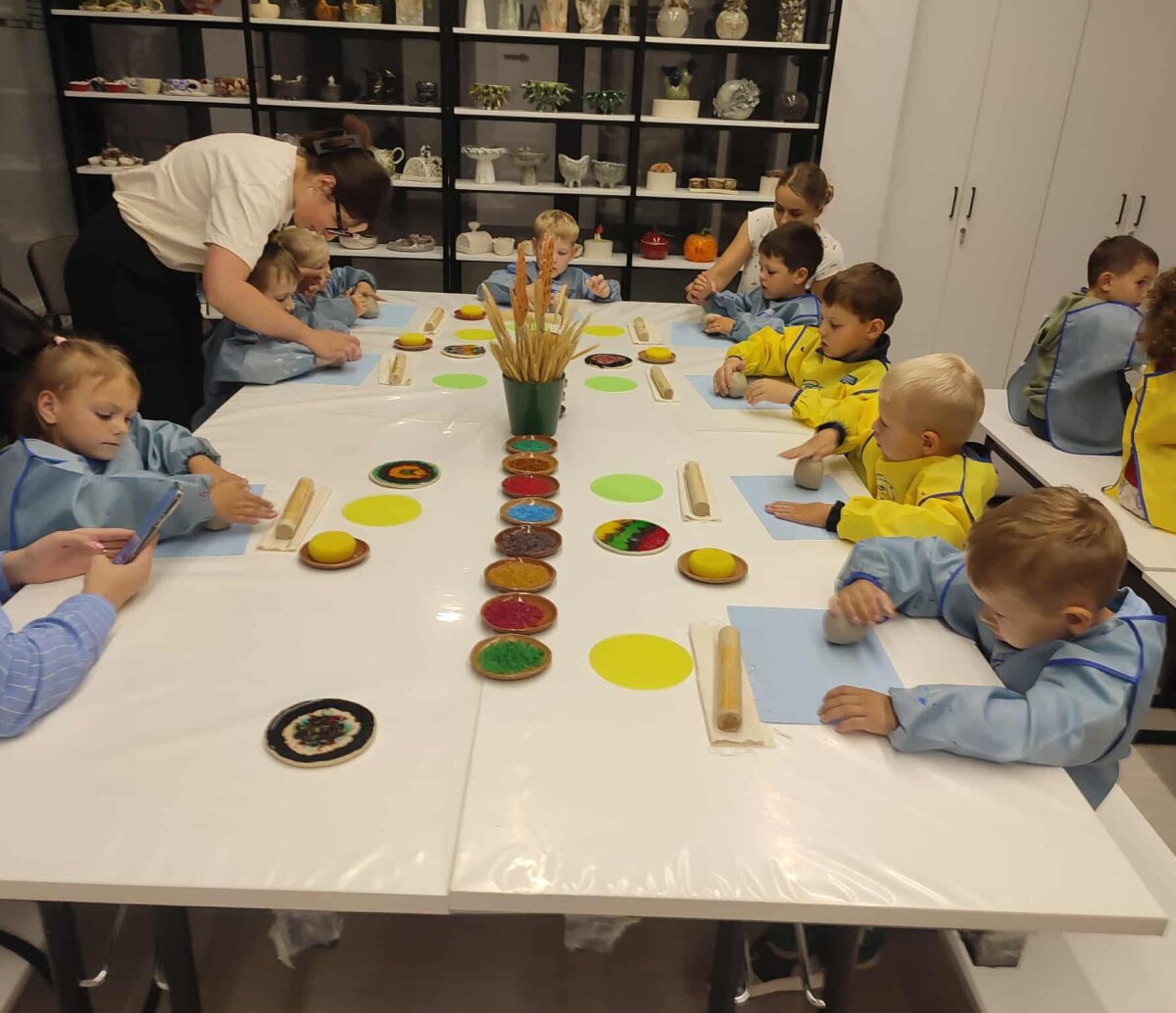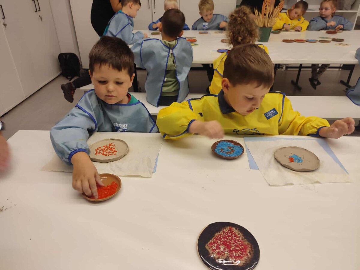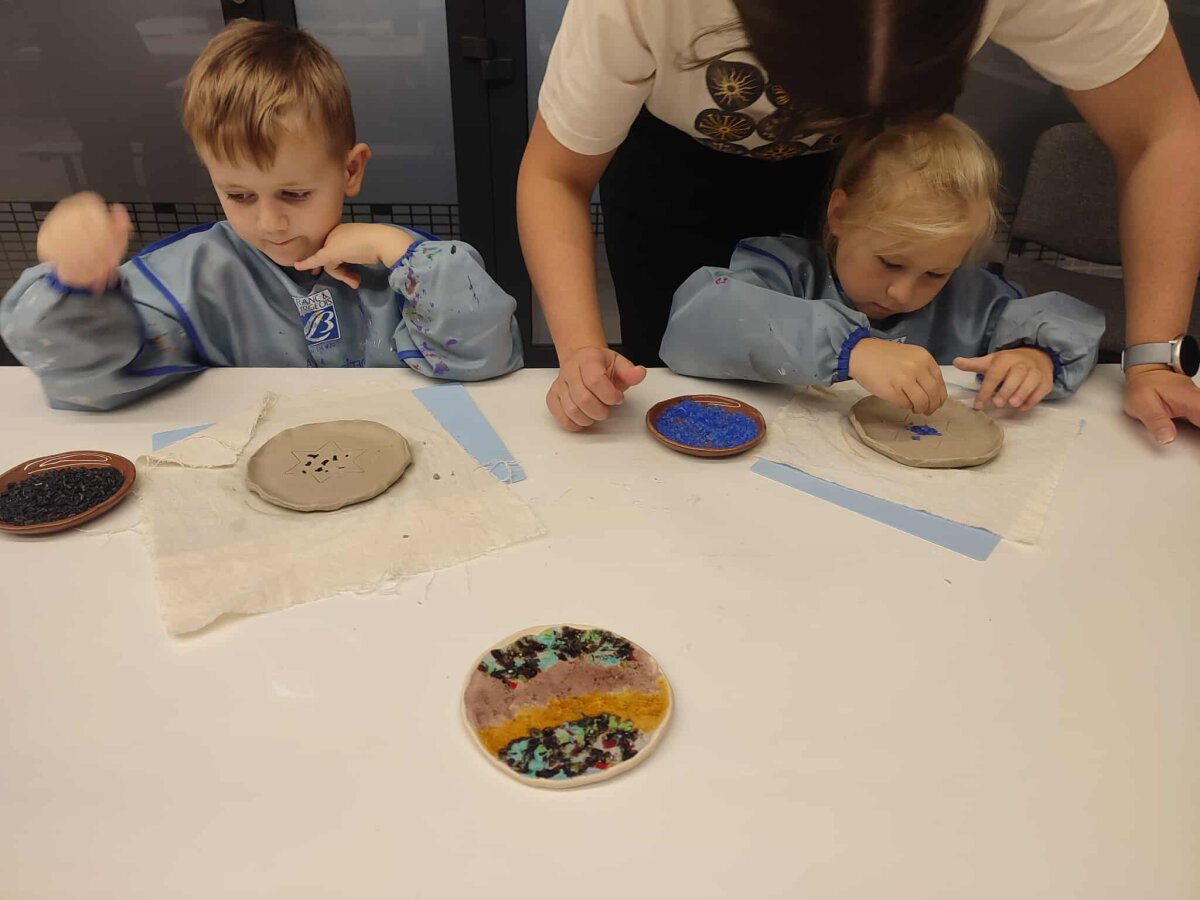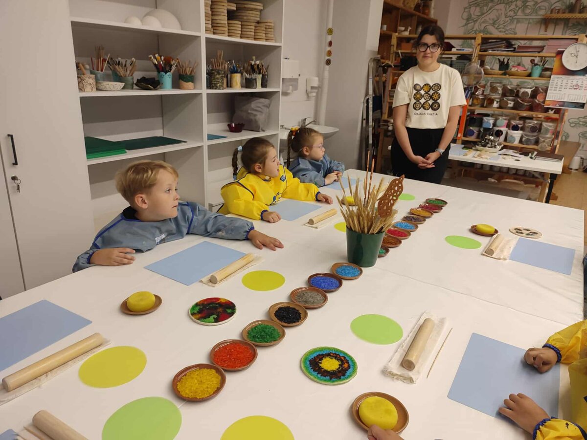 Grupės ,,Riešutėliai“ ugdytiniai kartu su mokytoja Vaida Vaičiuviene, mokinio padėjėja Asta Kliminskiene ir mokytojos padėjėja Erika Šeškevičiene dalyvavo įtraukiančioje edukacinėje veikloje „Molio ir stiklo bičiulystė“, vykusioje Šiaulių kultūros centro „Amatų dirbtuvėse“. Tai buvo ne tik smagi, bet ir vertinga patirtis, padėjusi vaikams pažinti keramikos pasaulį – nuo jos istorijos iki lipdymo technikų, raštų įvairovės ir spalvingų dekoravimo būdų. Edukacijos metu vaikai nusilipdė unikalų dirbinį, kurį dekoravo nugludinto, smulkinto stiklo gabalėliais, kuris degimo metu išsilydęs padengs įvairiais raštais bei faktūra molio dirbinius. Vaikai sužinojo, kad norint pasiekti galutinį rezultatą, reikia laiko – jų darbai turės išdžiūti, būti išdegti specialiose aukštos temperatūros krosnyse ir tik tada taps tikrais keramikiniais kūriniais. Edukacija ugdytiniams suteikė daug džiaugsmo ir įkvėpimo kurti. Tikimės, kad ši patirtis paskatins dar labiau domėtis keramika ir kitais amatais! Nuoširdžiai dėkojame edukacijos vadovei už šiltą bendravimą, vertingas žinias ir kūrybiškas idėjas!