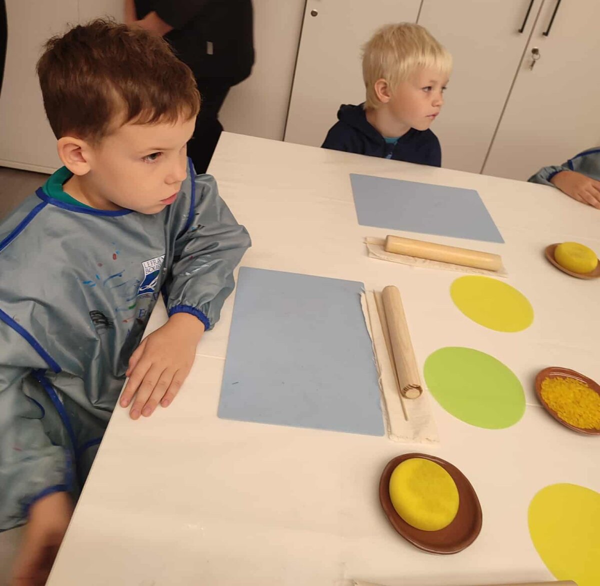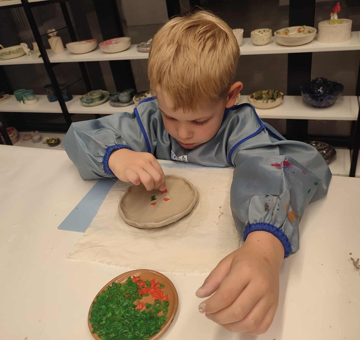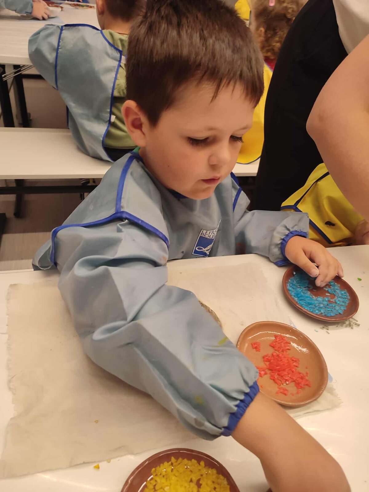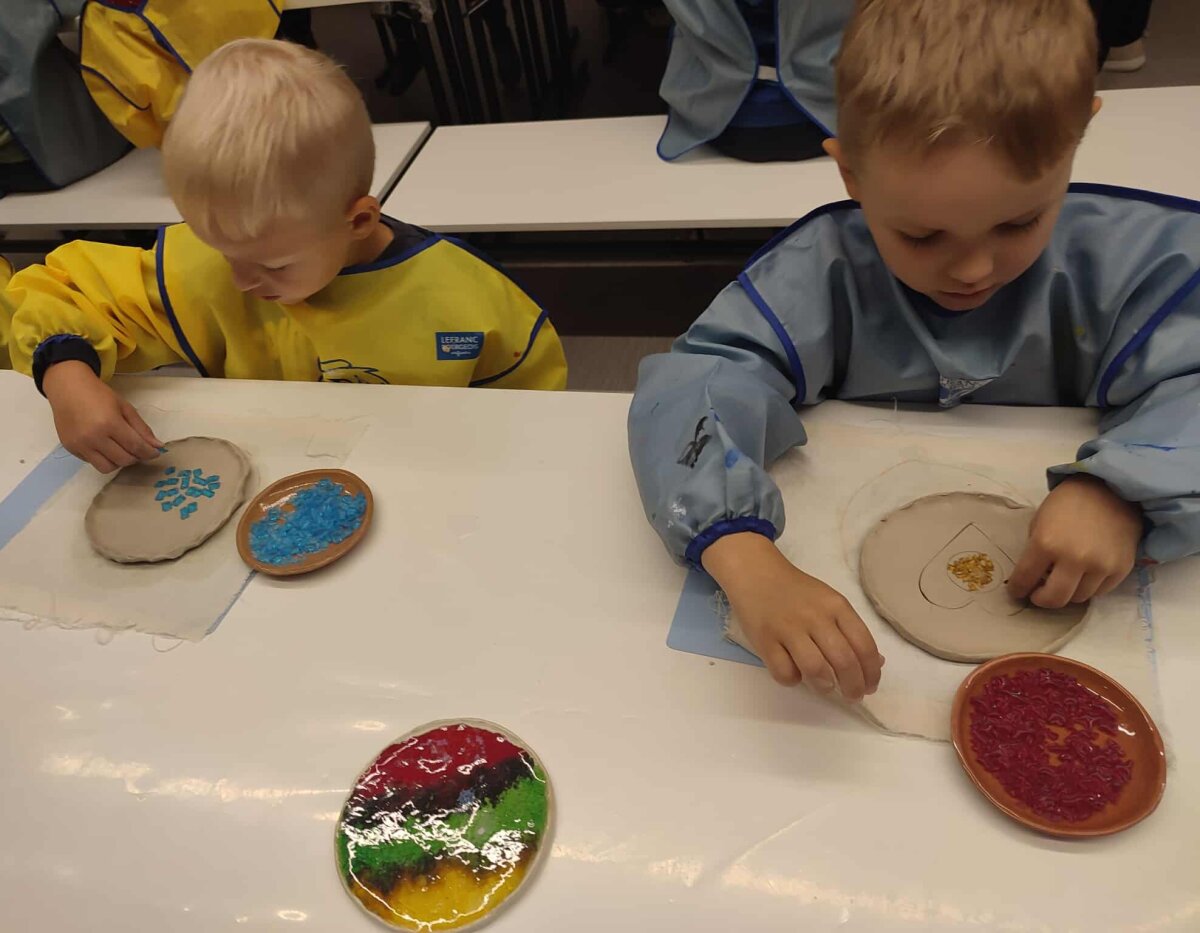 Grupės ,,Riešutėliai“ ugdytiniai kartu su mokytoja Vaida Vaičiuviene, mokinio padėjėja Asta Kliminskiene ir mokytojos padėjėja Erika Šeškevičiene dalyvavo įtraukiančioje edukacinėje veikloje „Molio ir stiklo bičiulystė“, vykusioje Šiaulių kultūros centro „Amatų dirbtuvėse“. Tai buvo ne tik smagi, bet ir vertinga patirtis, padėjusi vaikams pažinti keramikos pasaulį – nuo jos istorijos iki lipdymo technikų, raštų įvairovės ir spalvingų dekoravimo būdų. Edukacijos metu vaikai nusilipdė unikalų dirbinį, kurį dekoravo nugludinto, smulkinto stiklo gabalėliais, kuris degimo metu išsilydęs padengs įvairiais raštais bei faktūra molio dirbinius. Vaikai sužinojo, kad norint pasiekti galutinį rezultatą, reikia laiko – jų darbai turės išdžiūti, būti išdegti specialiose aukštos temperatūros krosnyse ir tik tada taps tikrais keramikiniais kūriniais. Edukacija ugdytiniams suteikė daug džiaugsmo ir įkvėpimo kurti. Tikimės, kad ši patirtis paskatins dar labiau domėtis keramika ir kitais amatais! Nuoširdžiai dėkojame edukacijos vadovei už šiltą bendravimą, vertingas žinias ir kūrybiškas idėjas!