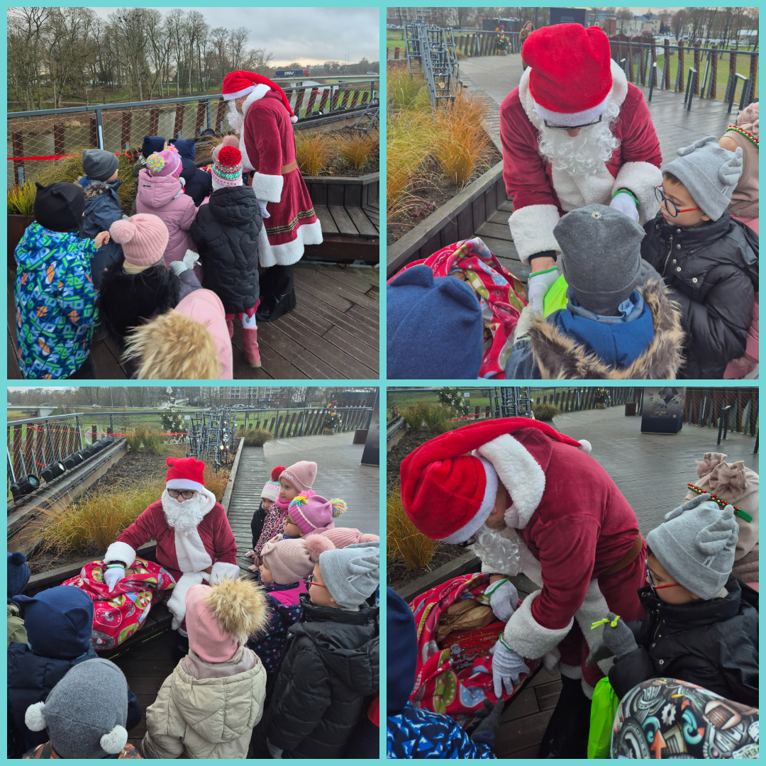 Įpusėjus tiltą, vaikai sutiko Kalėdų senelį, kuris ieškojo būtent „Kaštoniukų“ grupės. Mažieji deklamavo eilėraštį, atsakė į gudrius Kalėdų senelio klausimus ir buvo apdovanoti mažomis kalėdinėmis dovanėlėmis.