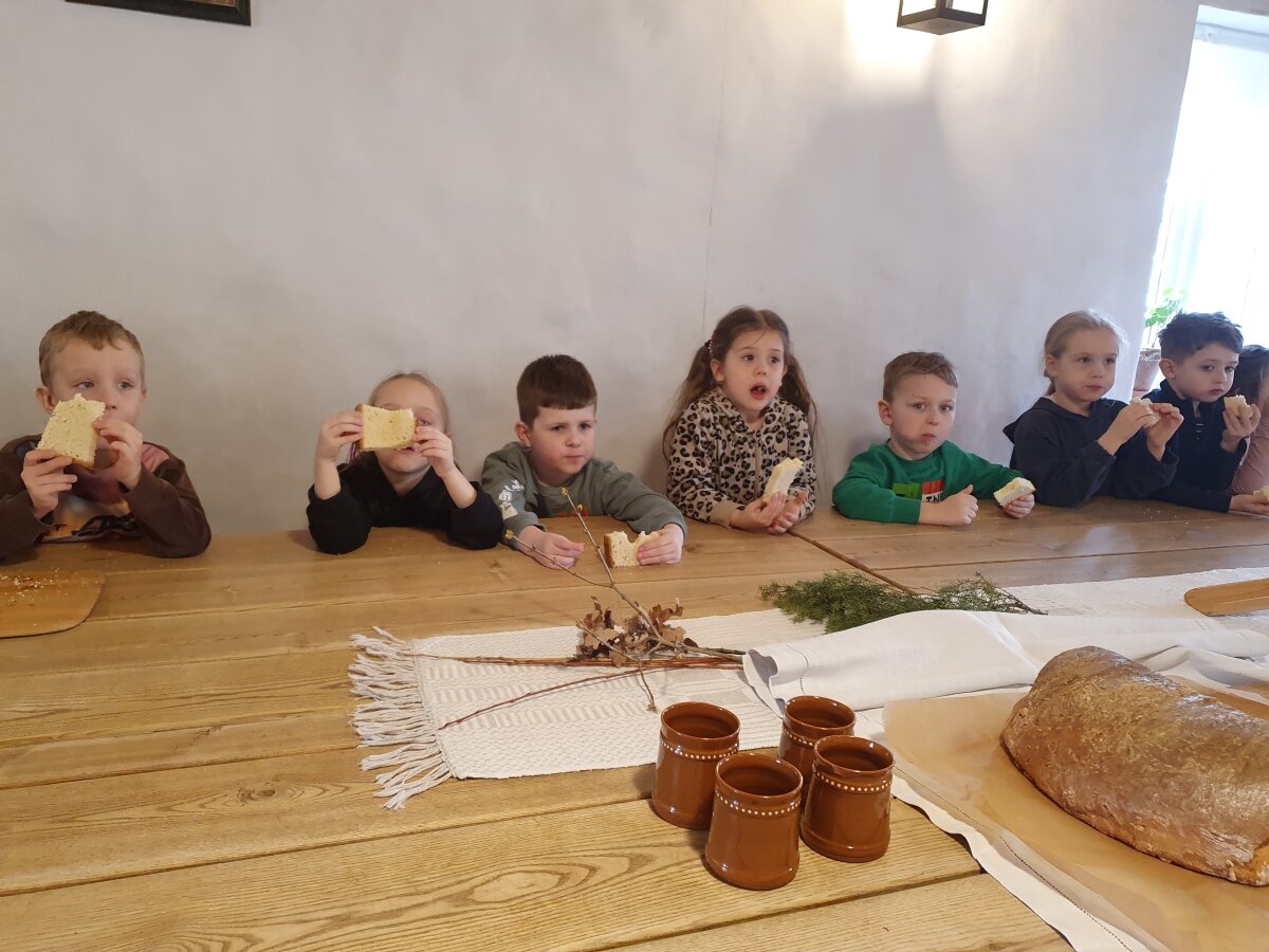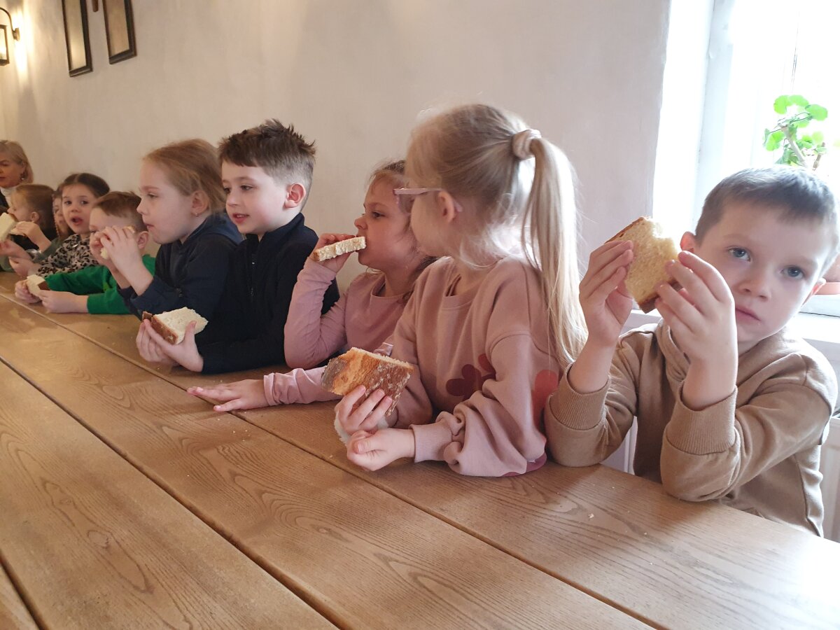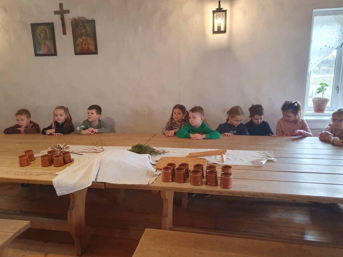 Kovo 25 dieną grupės „Žiogeliai“ vaikai vyko į Žaliūkių malūnininko sodybą, kur dalyvavo edukacinėje veikloje „Velykinis pyragas“. Sodyboje vaikus pasitiko trobos šeimininkė, kuri šiltai bendravo su vaikais ir supažindino juos su Velykų papročiais bei verbų reikšme. Edukacijos metu vaikai klausėsi pasakojimo apie senovines tradicijas, sužinojo, kaip anksčiau buvo kepami Velykiniai pyragai. Šeimininkė pavaišino vaikus Velykiniu pyragu ir kvapnia mėtų arbata. Vaikai noriai ragavo vaišes, džiaugėsi jaukia aplinka, mandagiai padėkojo šeimininkei. Sotūs ir laimingi vaikai apžiūrėjo ūkininko trobą, susipažino su įvairiais senoviniais buities daiktais. Skenuodami QR kodus, jie sužinojo daiktų pavadinimus ir paskirtį, taip plėtodami pažinimo, tyrinėjimo ir skaitmeninio raštingumo gebėjimus.