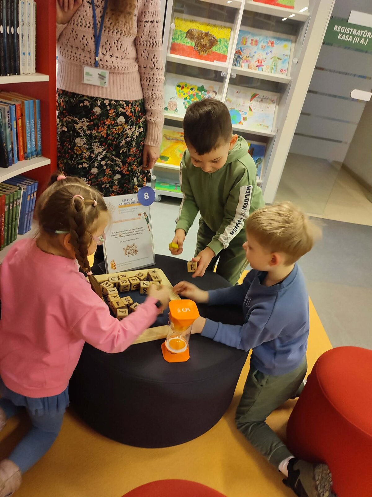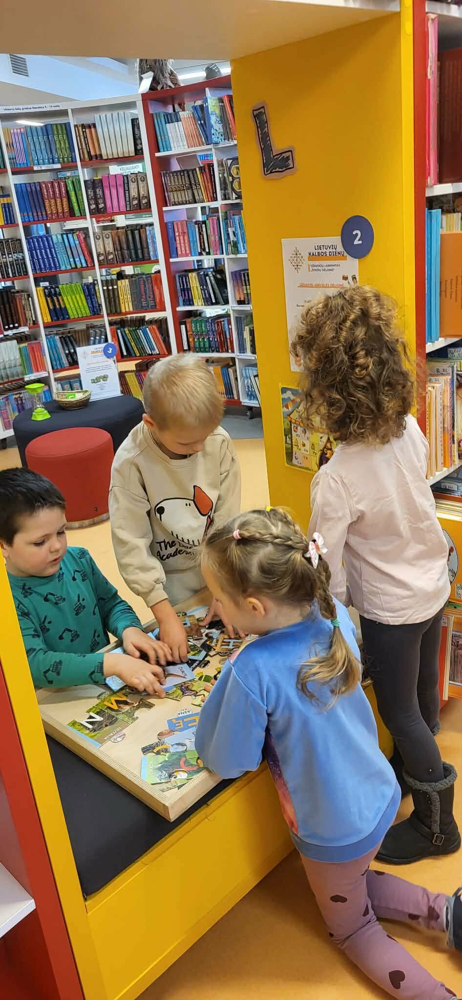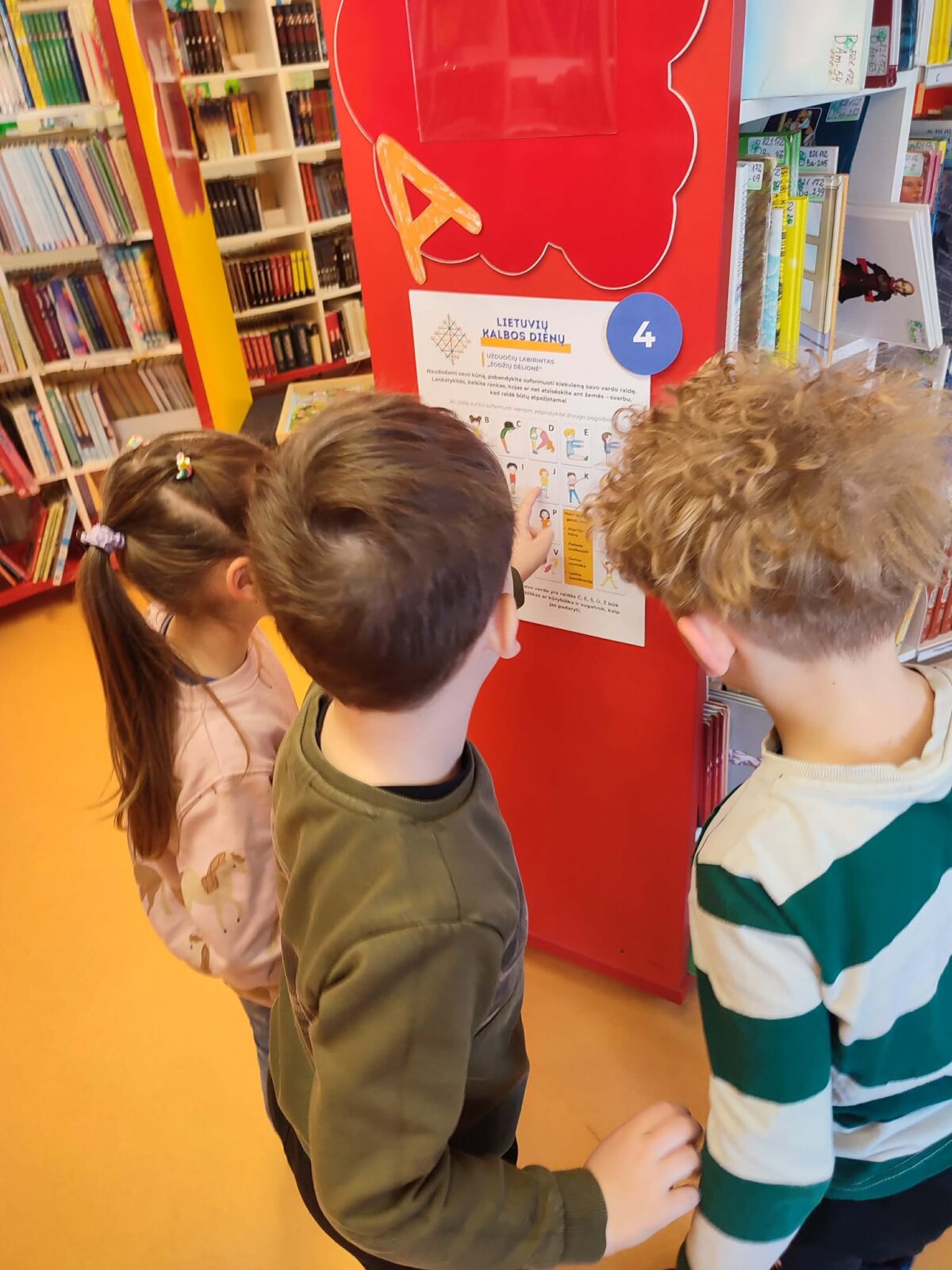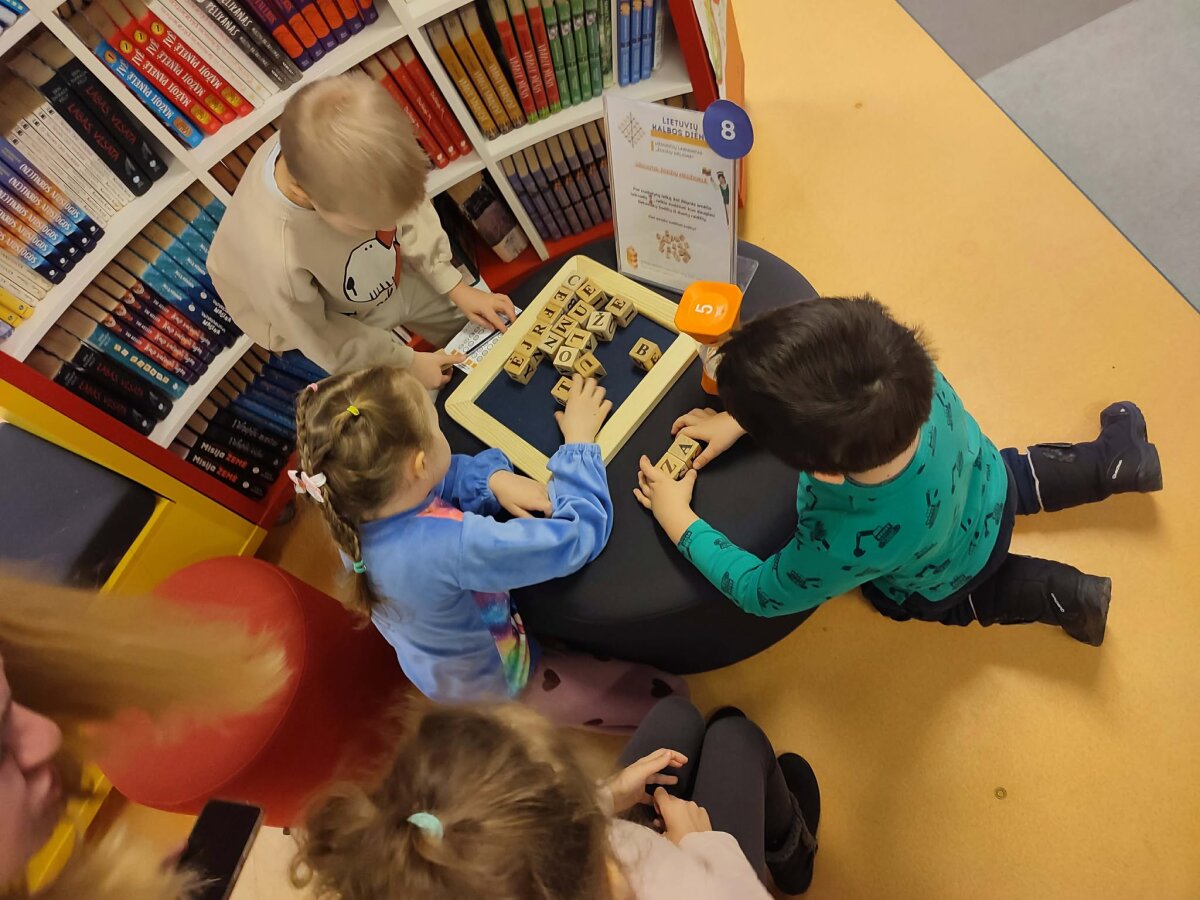 2026 m. kovo 12 d. Šiaulių lopšelio-darželio „Eglutė“ „Riešutėlių“ grupės ugdytiniai vyko į Šiaulių Povilo Višinskio viešąją biblioteką, kur dalyvavo ,,Lietuvių kalbos dienų" edukacijoje „Žodžių dėlionė“. Veikloje vaikus lydėjo ikimokyklinio ugdymo mokytoja Vaida Vaičiuvienė, mokinio padėjėja Asta Kliminskienė ir mokytojos padėjėja Erika Šeškevičienė. Tikslas – lavinti vaikų kalbinius gebėjimus, raidžių pažinimą ir žodžių sudarymo įgūdžius, skatinant bendradarbiavimą bei problemų sprendimą komandose. Edukacijos pradžioje vaikai buvo suskirstyti į komandas, sugalvojo komandų pavadinimus ir išsirinko kapitonus. Komandos bibliotekos erdvėse, knygų lentynų labirintuose, ieškojo 10 užduočių. Atlikdami užduotis rinko raides, kurias vėliau iššifravo ir sudėjo žodį „KALBA“. Veiklos metu vaikai atliko kalbines ir mąstymo užduotis, bendradarbiavo komandose, taikė raidžių atpažinimo ir žodžių sudarymo gebėjimus. Edukacijos metu buvo lavinami kalbiniai gebėjimai, dėmesio koncentracija ir bendradarbiavimo įgūdžiai.