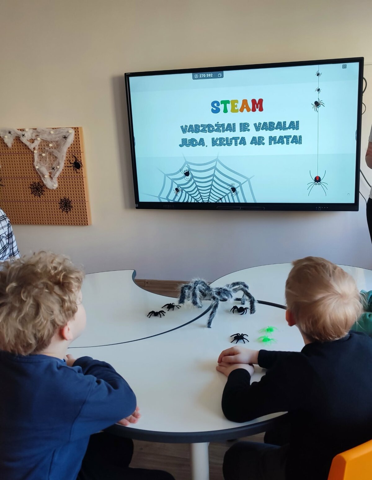 2026 m. kovo 27 d. Šiaulių lopšelyje-darželyje „Pupų pėdas“ vyko STEAM veikla „Vabzdžiai ir vabalai juda, kruta ar matai?“. Veikloje dalyvavo „Riešutėliai“ grupės vaikai kartu su ikimokyklinio ugdymo mokytoja Vaida Vaičiuviene, mokinio padėjėja Asta Kliminskiene ir mokytojos padėjėja Erika Šeškevičiene. Veiklos pradžioje vaikai susidomėję stebėjo interaktyvioje lentoje pateiktą vaizdinę medžiagą apie vorus ir jų kuriamus tinklus. Kartu su pedagogais aptarė vabzdžių judėjimą, jų gyvenimo aplinką, išskyrė pagrindinius ypatumus, dalijosi savo patirtimi, kėlė klausimus ir ieškojo atsakymų. Vėliau vaikai įsitraukė į įvairias STEAM veiklas. Jie dalyvavo iššūkyje „Pagamink vorą“, kurio metu iš plastilino kūrė vorus, formavo kūną, lipdė ir tvirtino kojas, skaičiavo jų skaičių, lygino dydžius, tyrinėjo formą bei sandarą. Taip pat atliko veiklą „Voro tinklas“, iš medinių pagaliukų kūrė pagrindą ir siūlu vijo voratinklius, laikydamiesi sekos, jungdami taškus ir suprasdami tinklo struktūrą. Papildomai vaikai atliko skaičiavimo ir modeliavimo užduotį, pasirinkę korteles su skaičiais, segtukais dėliojo tiek voro kojų, kiek nurodyta skaičiuje. Jie susikaupę skaičiavo, tikrino, lygino savo rezultatus, mokėsi pastebėti ir ištaisyti klaidas. Kūrybinėje–skaitmeninėje veikloje vaikai spalvino vorus, o pasitelkę programėlę „Animated Drawings“ stebėjo, kaip jų piešiniai „atgyja“ ir juda. Tai suteikė daug džiaugsmo ir leido patirti technologijų bei kūrybos sąveiką. Veikla skatino vaikų smalsumą, kūrybiškumą, tyrinėjimo gebėjimus, loginį mąstymą bei bendradarbiavimą. Vaikai aktyviai įsitraukė, dirbo susikaupę, dalijosi idėjomis ir džiaugėsi savo pasiektais rezultatais.