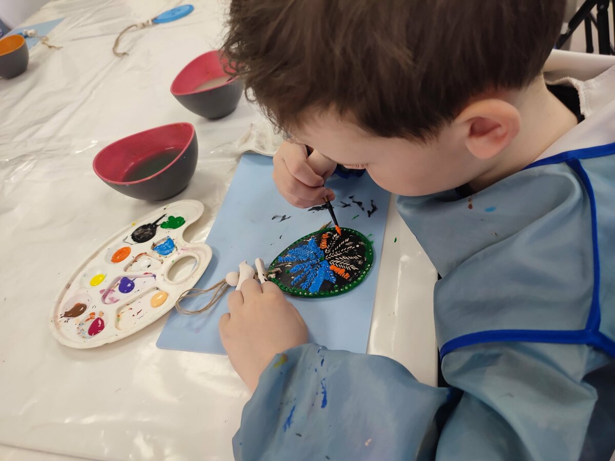2026 m. kovo 25 d. Šiaulių kultūros centre „Riešutėliai“ grupės vaikai kartu su ikimokyklinio ugdymo mokytoja Vaida Vaičiuviene, mokinio padėjėja Asta Kliminskiene ir mokytojos padėjėja Erika Šeškevičiene dalyvavo edukaciniame užsiėmime „Velykų raštai“, kuriame susipažino su lietuvių etnokultūros dalimi, margučių marginimo tradicijomis. Tikslas – supažindinti vaikus su Velykų tradicijomis ir margučių raštais, skatinant jų kūrybiškumą ir meninę saviraišką. Vaikai tyrinėjo margučių raštų įvairovę, jų simboliką, sužinojo, kad kiekvienas ornamentas turi savo prasmę ir yra perduodamas iš kartos į kartą. Kūrybinio proceso metu patys margino molinius kiaušinius, rinkosi spalvas, kūrė savitus raštus, išbandė dekoravimo būdus. Ši patirtinė veikla ugdė vaikų kūrybiškumą, meninę raišką, stiprino ryšį su tautiniu paveldu, skatino pagarbą tradicijoms bei jų puoselėjimą. Vaikai bendradarbiavo, dalijosi idėjomis, patyrė džiugių emocijų, o sukurtus darbelius parsinešė kaip prasmingą Velykų simbolį.