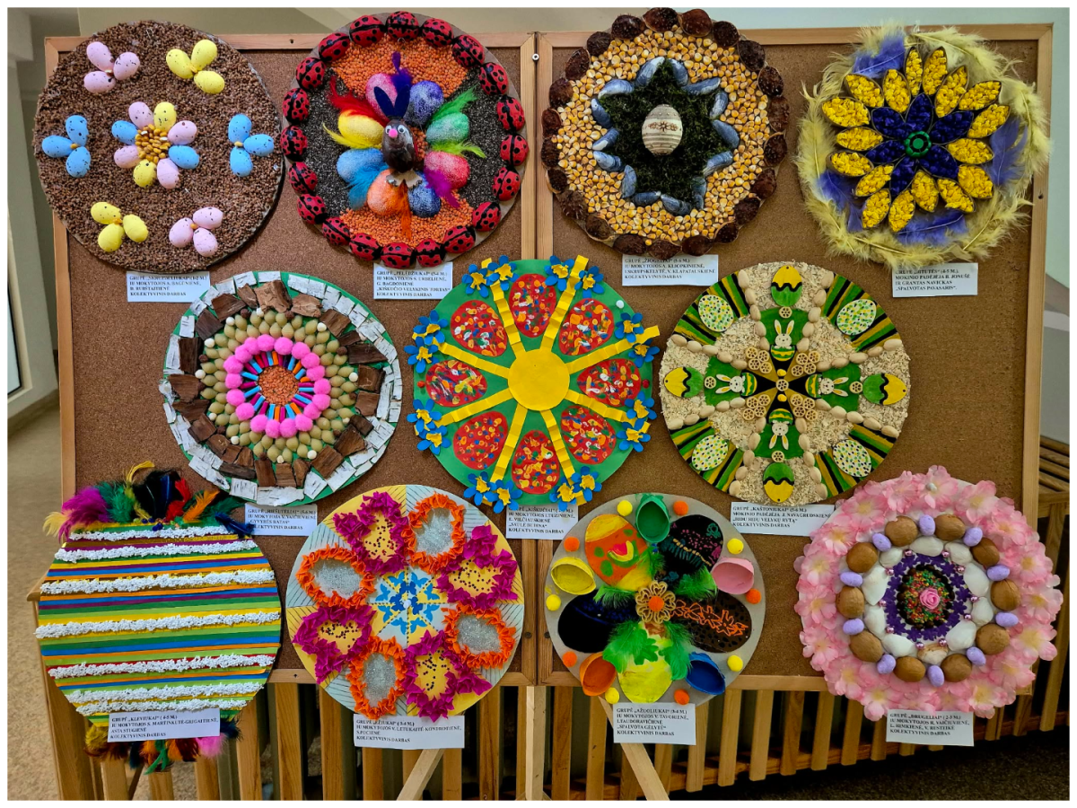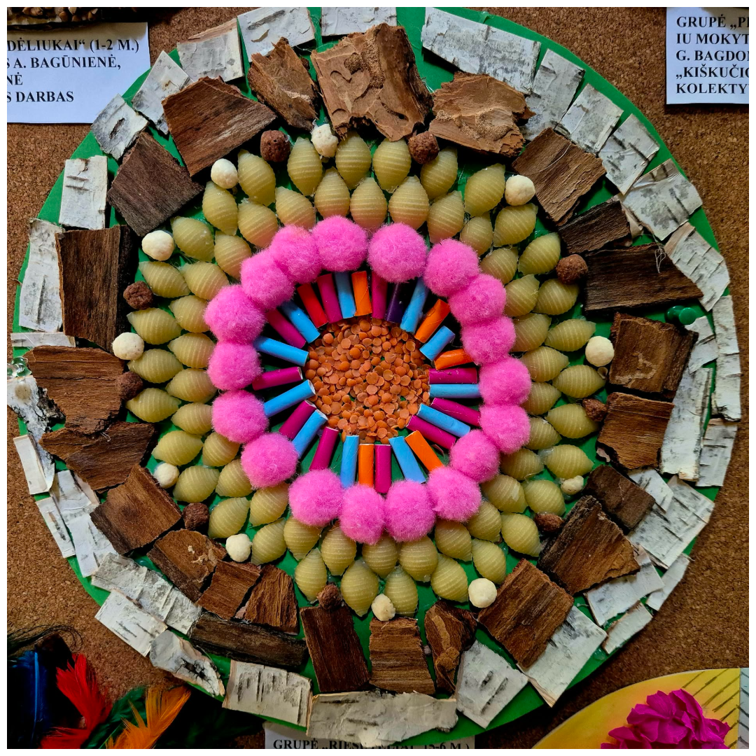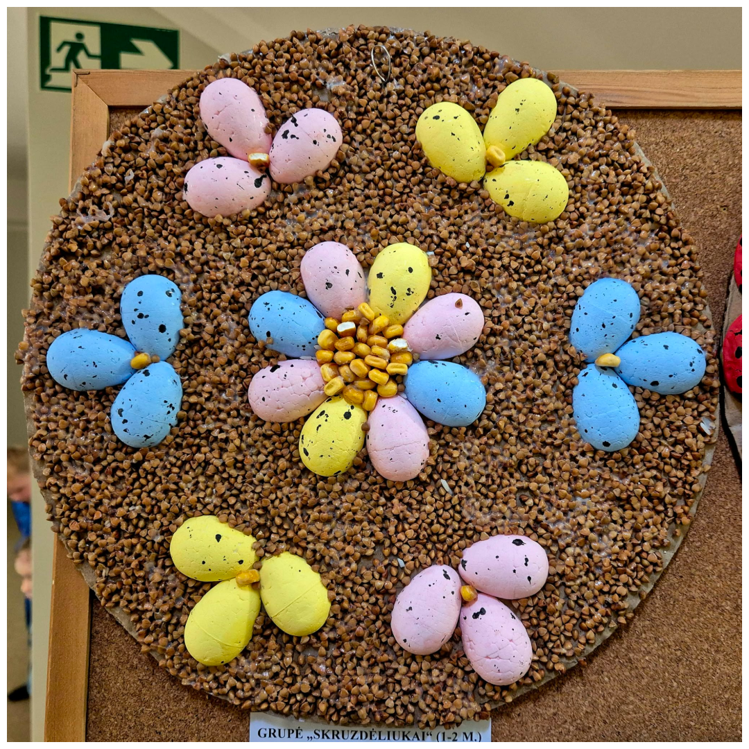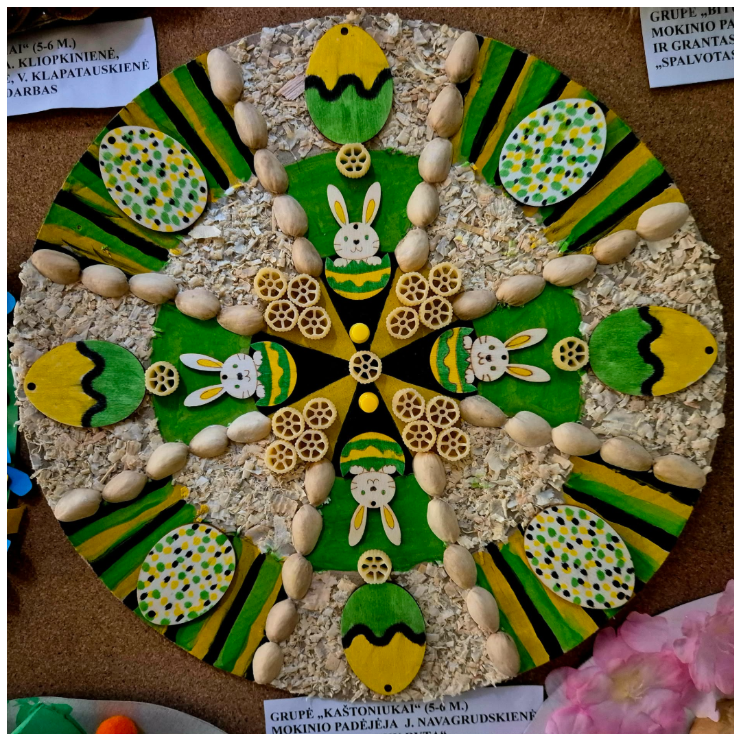 Kūrybinių veiklų metu vaikai eksperimentavo su įvairiomis meninės raiškos priemonėmis – kruopomis, sėklomis, popieriumi, plunksnomis, kiaušinių lukštais ir kitomis medžiagomis, kūrė spalvingas, originalias kompozicijas. Per kūrybines veiklas atsiskleidė vaikų suvokimas apie Velykų tradicijas, simbolius bei pavasario atgimimą. Parodoje eksponuojami darbai išsiskyrė raštų įvairove, spalvų deriniais ir kūrybiškais sprendimais, o kiekviena mandala atspindėjo vaikų vaizduotę, kruopštumą ir saviraišką.