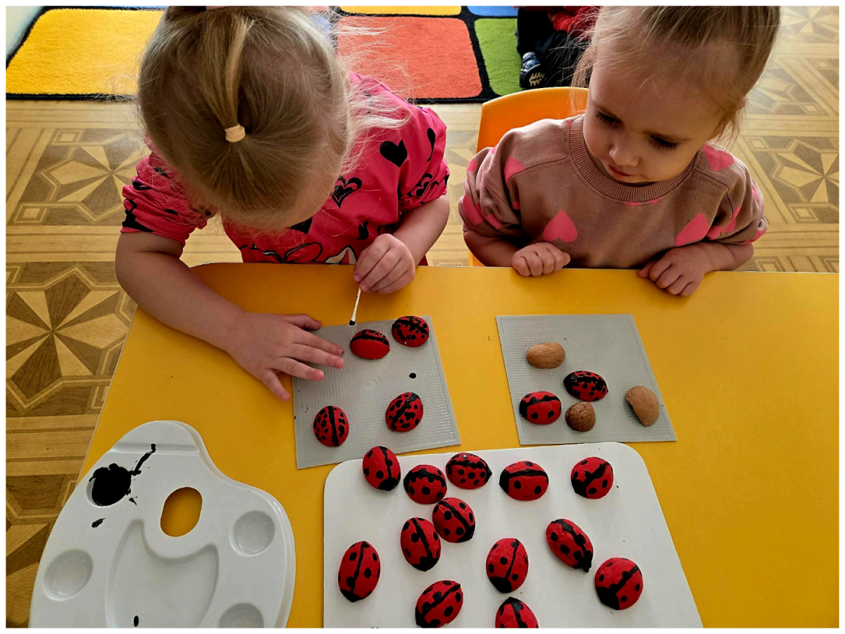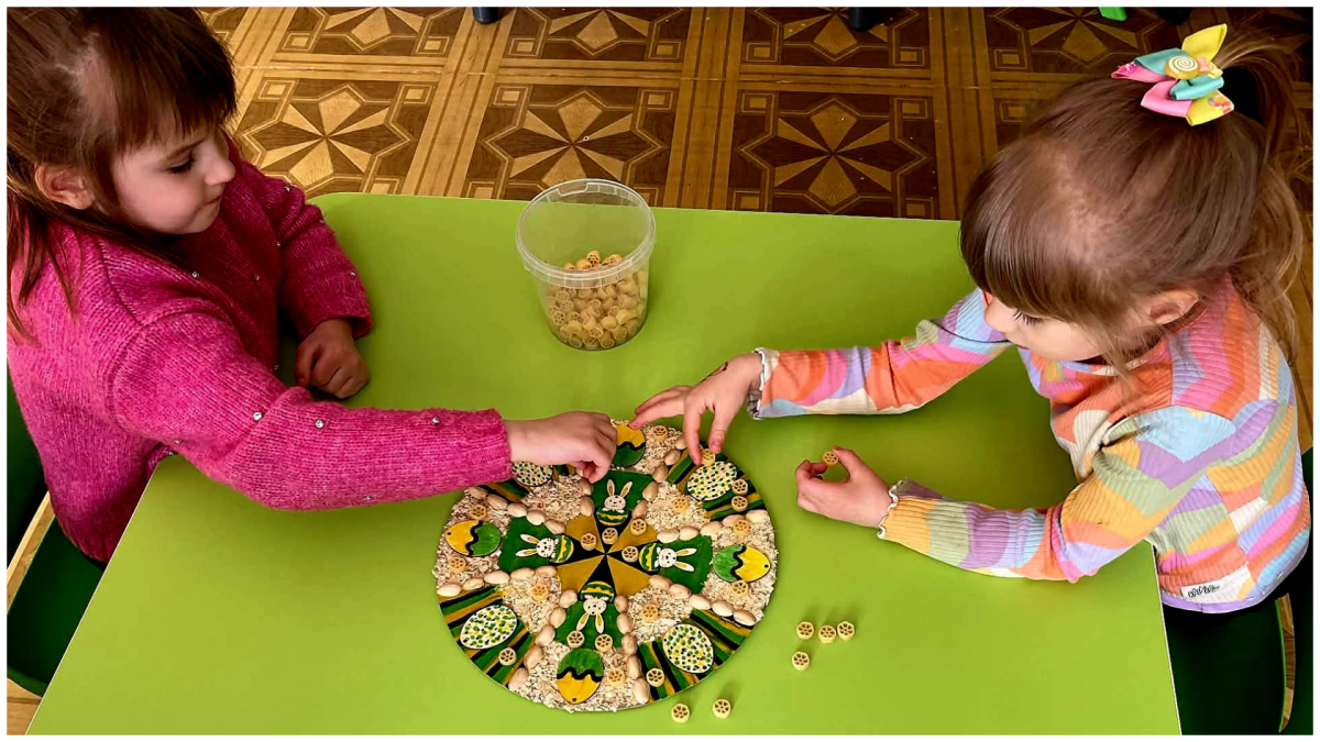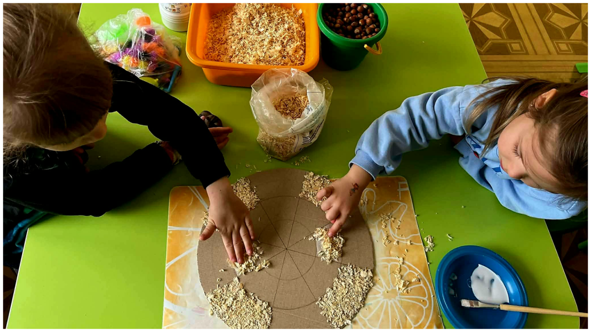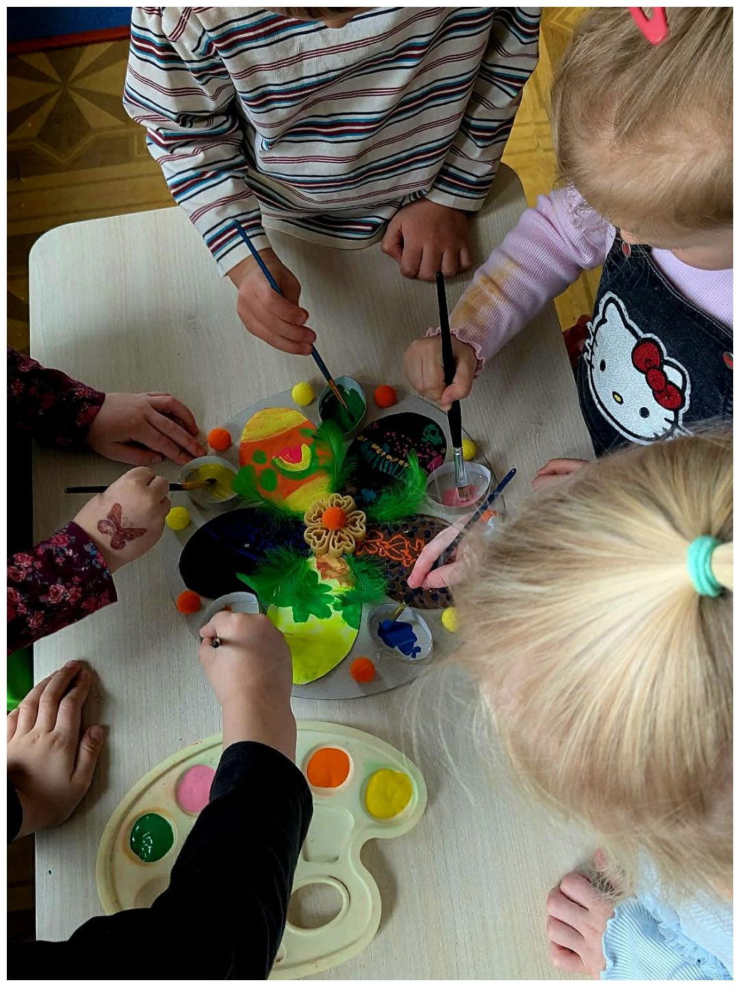 Kūrybinių veiklų metu vaikai eksperimentavo su įvairiomis meninės raiškos priemonėmis – kruopomis, sėklomis, popieriumi, plunksnomis, kiaušinių lukštais ir kitomis medžiagomis, kūrė spalvingas, originalias kompozicijas. Per kūrybines veiklas atsiskleidė vaikų suvokimas apie Velykų tradicijas, simbolius bei pavasario atgimimą. Parodoje eksponuojami darbai išsiskyrė raštų įvairove, spalvų deriniais ir kūrybiškais sprendimais, o kiekviena mandala atspindėjo vaikų vaizduotę, kruopštumą ir saviraišką.