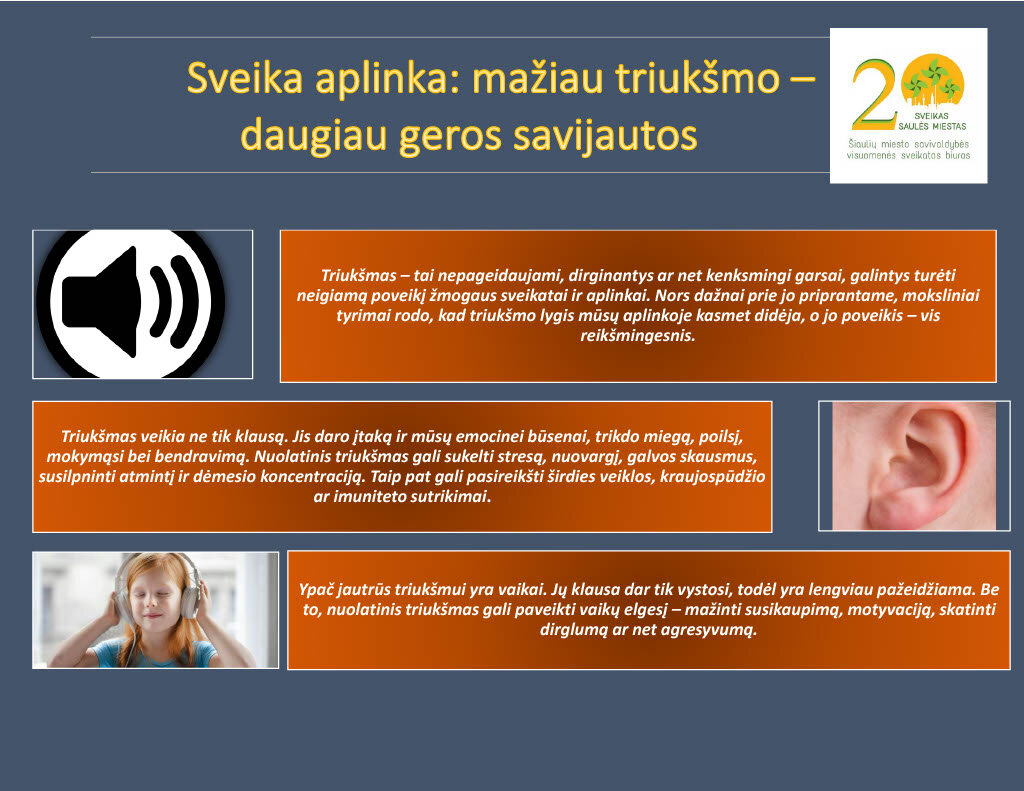 Sveika aplinka: mažiau triukšmo – daugiau geros savijautos