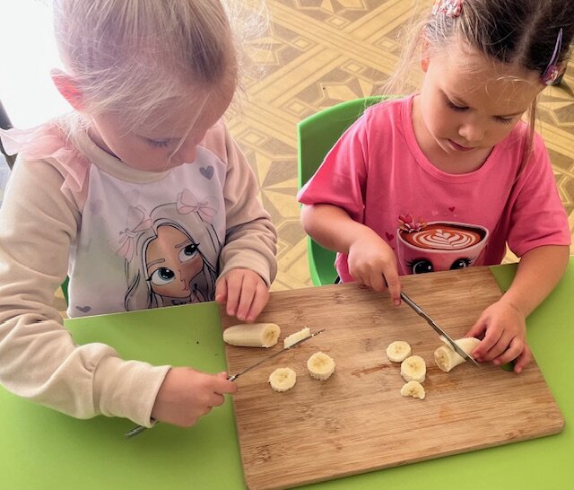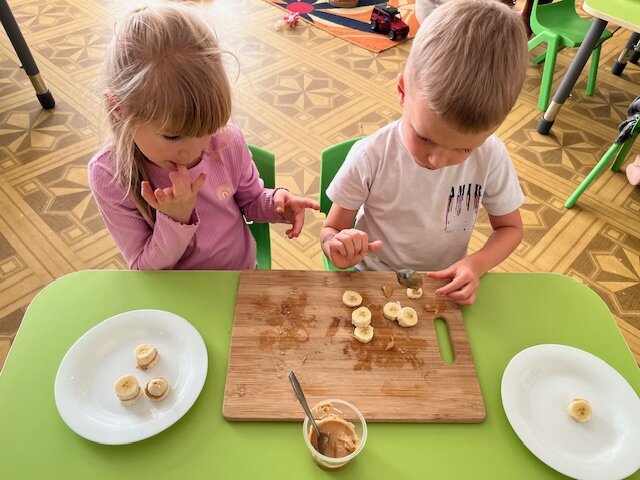 Sužinoję, kad riešutai yra vienas iš sveikos mitybos produktų, vaikai mokėsi gaminti sveiką užkandį, naudodami riešutų sviestą ir bananus: pjaustė bananus riekelėmis, tepė riešutų sviestą ant bananų, kūrė „skanėstų bokštelius“. Ragaudami suprato, kad skanėstas gali būti ir sveikas, ir gardus – net be cukraus.