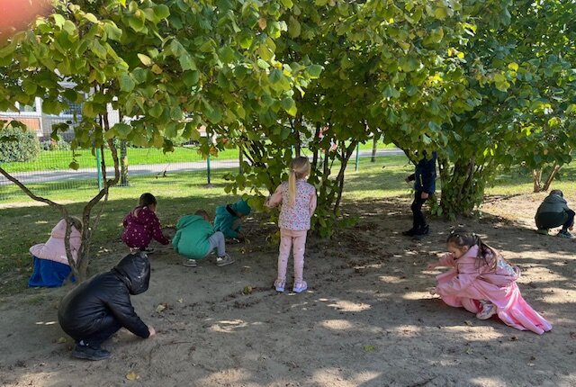 Žaisdami darželio lauko edukacinėje erdvėje, vaikai po lazdynu surado riešutų. Kelias savaites jie domėjosi riešutais – juos rinko, tyrinėjo, gliaudė, ragavo. Natūralaus konteksto dėka gimė „Riešutėlių veikla“. Vaikai susipažino su lazdyno krūmu ir jo riešutais, sužinojo apie riešutų naudą žmonėms ir gyvūnams. Išsiaiškino, kad riešutuose gausu baltymų, vitaminų E ir B, kurie gerina odos būklę, stiprina raumenis ir bendrą sveikatą.