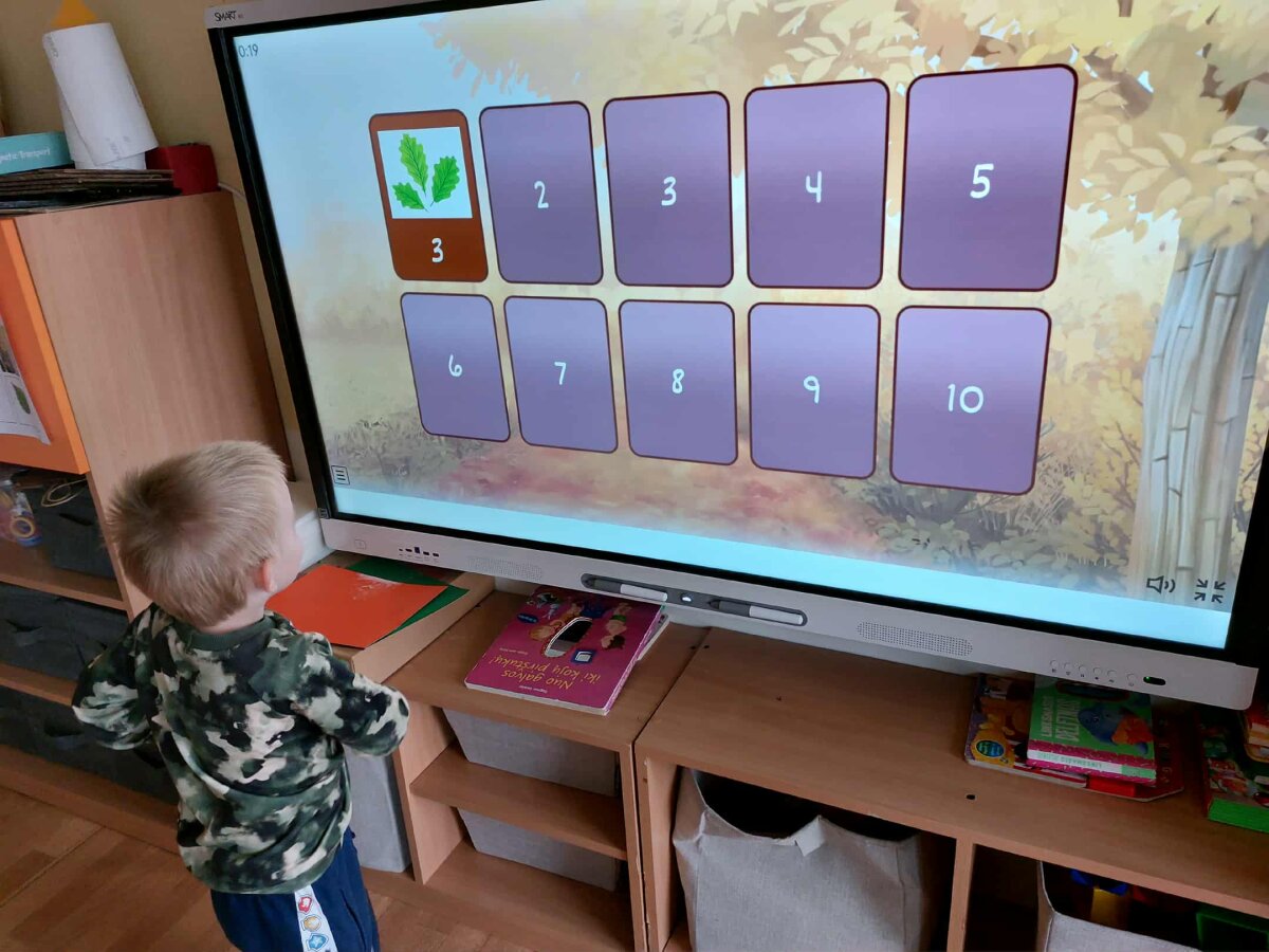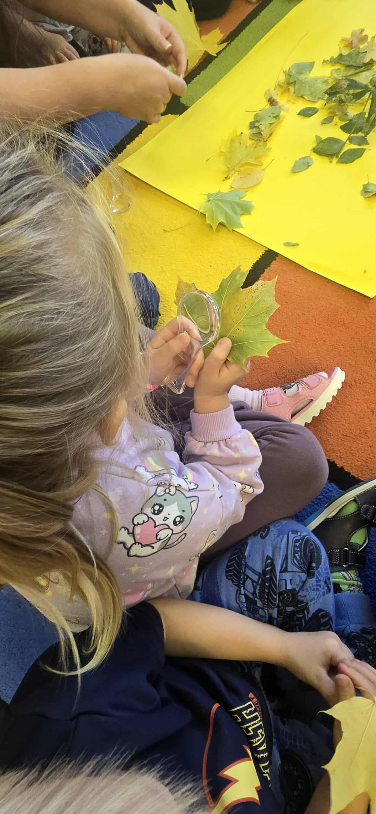 Vaikai tyrinėjo medžius, jų lapus ir vaisius, stebėjo, lygino lapų dydžius, spalvas bei formas. Naudodamiesi padidinimo stiklais, smalsiai žiūrinėjo lapų gysleles ir linijas, o su SMART lenta atliko skaičiavimo bei atmintį lavinančias užduotėles.