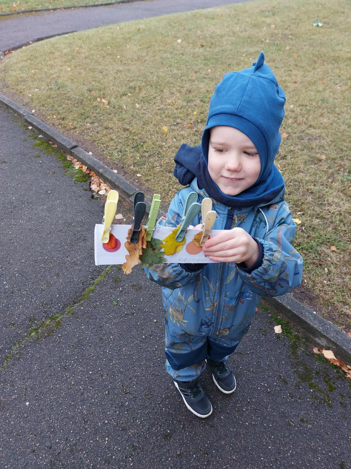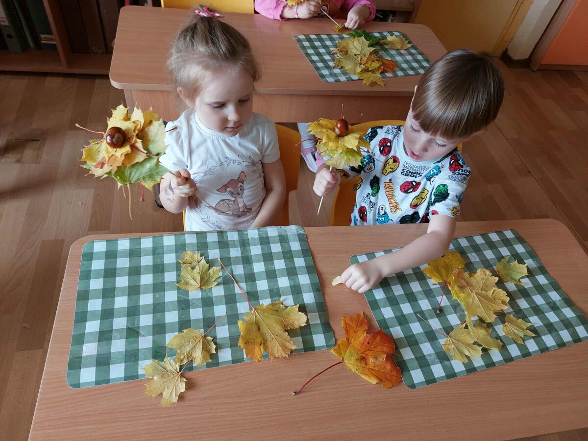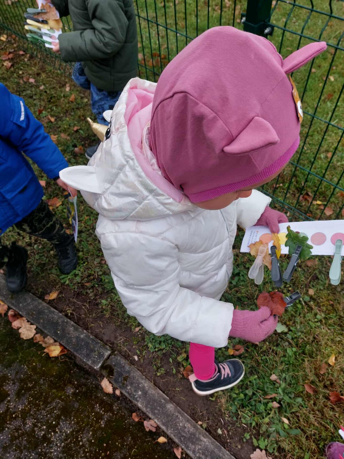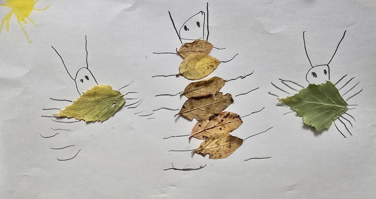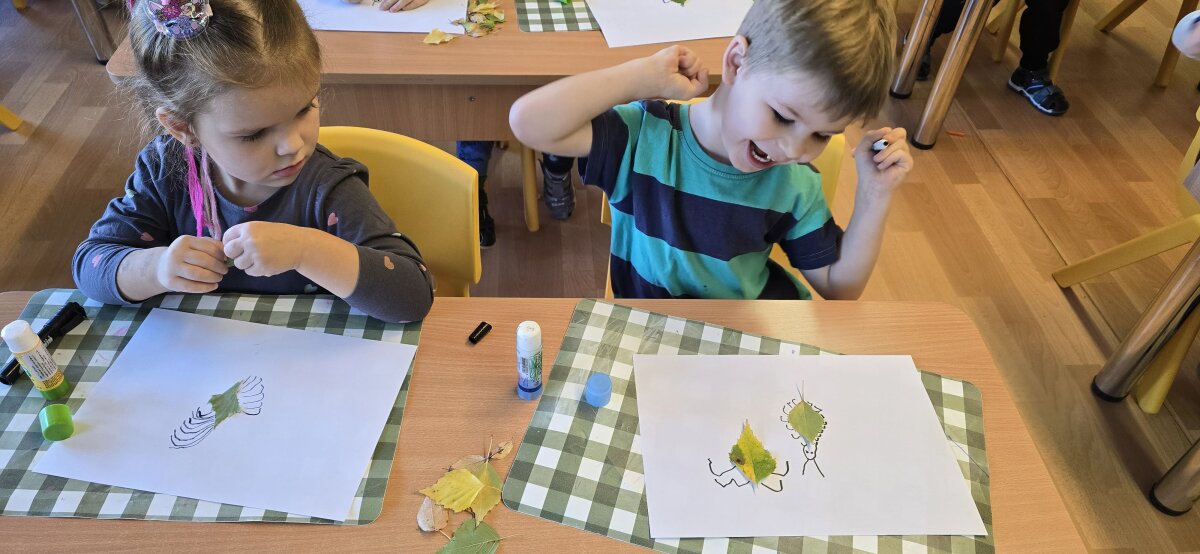 Lauke mažieji „detektyvai“ gavo korteles su spalvomis ir ieškojo darželio teritorijoje atitinkamų atspalvių medžių lapų. Prisirinkę įvairių lapų, kūrė iš jų „vabaliukus“ – piešė jiems galvytes, kojytes ir ūselius. Iš mažų ir didelių klevo lapų vaikai ant iešmelio pasigamino „linksmus kirmėliukus“.