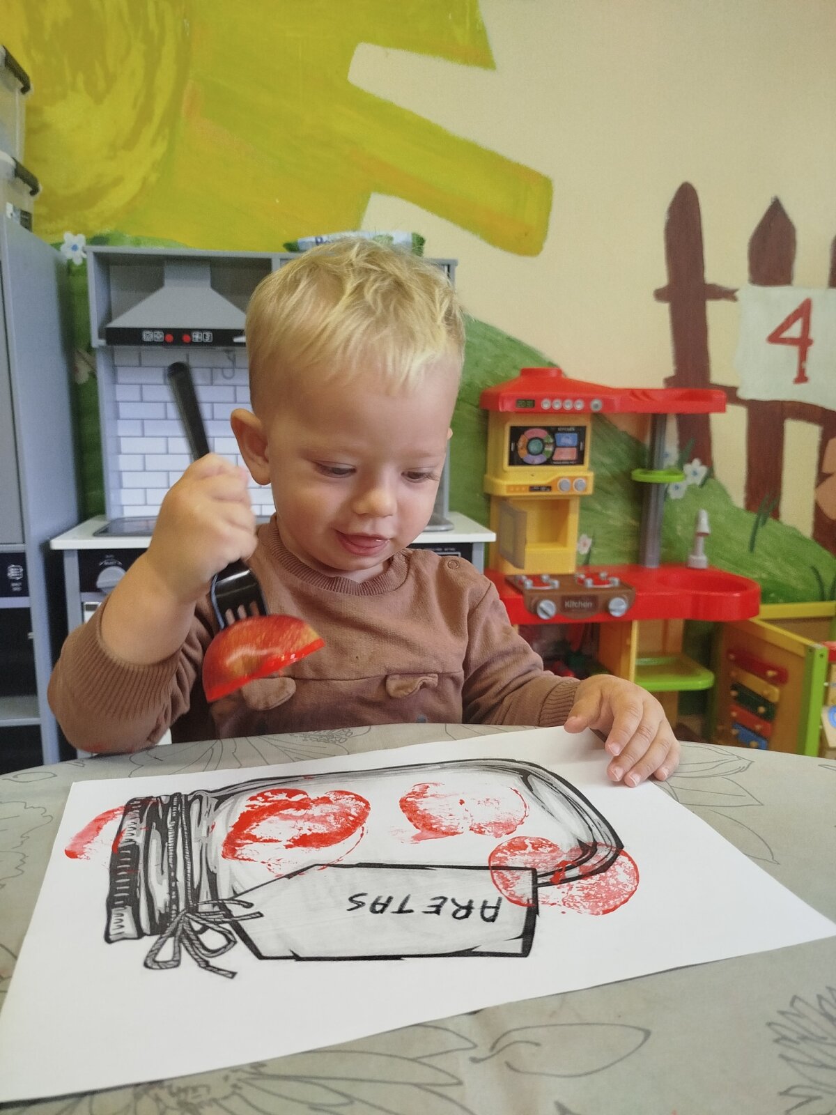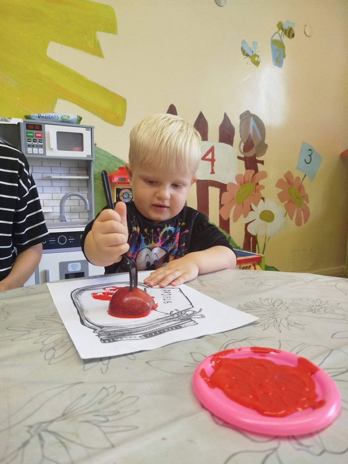 Per žaidimą „Didelis – mažas“ vaikai susipažino su dydžių skirtumais, mokėsi atsargiai lyginti vaisius. Kūrybinėse veiklose – piešime, spalvinime, obuolių antspaudų kūrime ir trafaretų užpildyme – vaikai lavino smulkiąją motoriką, kūrybiškumą ir dėmesingumą detalėms.