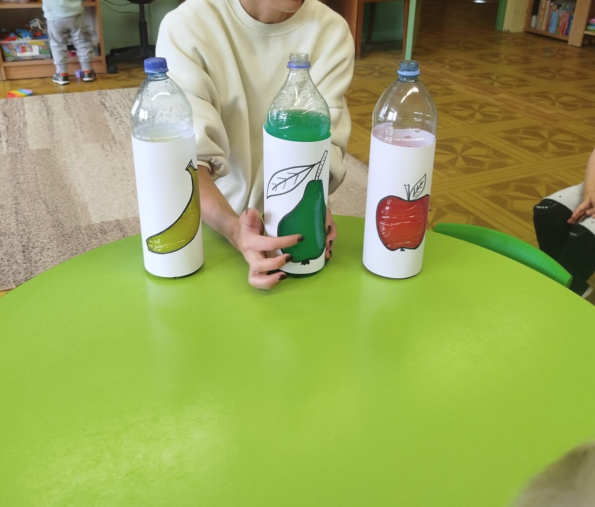 Vaikai žaidė žaidimus „Kokios aš spalvos“ ir „Spalvų medžioklė“, rūšiuodami obuoliukus pagal spalvą, ieškodami panašių vaisių ir lygindami jų skirtumus. Eksperimente „Atspėk spalvą“ mažieji stebėjo, kaip paslepiamos spalvos atsiskleidžia maišant dažus, ir mokėsi priežasties-pasekmės ryšių.