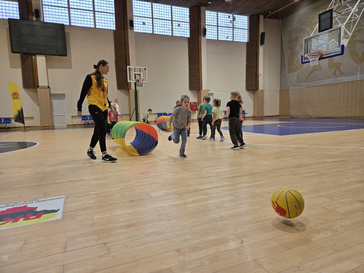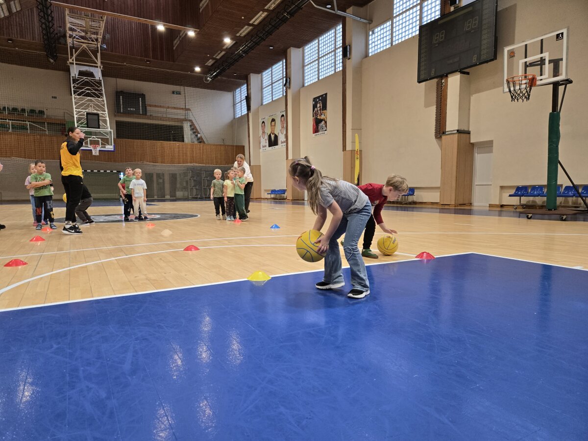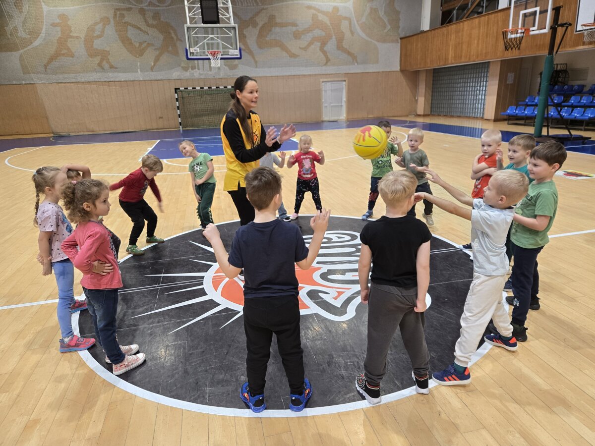 Sportininkė vaikus pakvietė į aktyvią treniruotę, kurioje vaikai sužinojo ir išmoko įvairių krepšinio žaidimo technikos elementų bei patyrė daug džiugių emocijų atlikdami komandines užduotis, dalyvaudami estafetėse bei žaisdami smagius žaidimus. Mažiesiems projekto dalyviams labai patiko užsiėmimas. Tęsiant projektą, išmoktus žaidimus, pratimus ir užduotis būtinai integruosime fizinio aktyvumo veiklose įstaigoje.