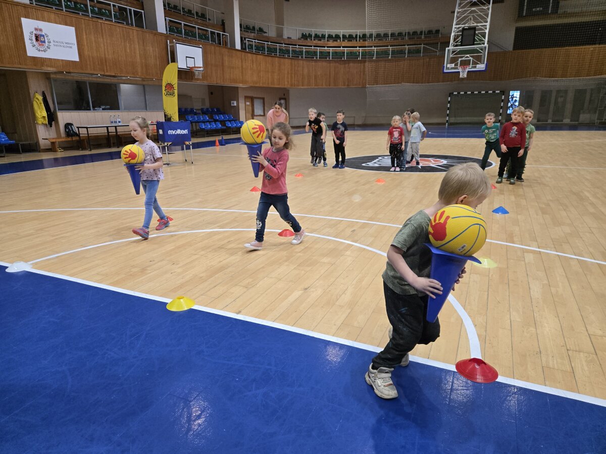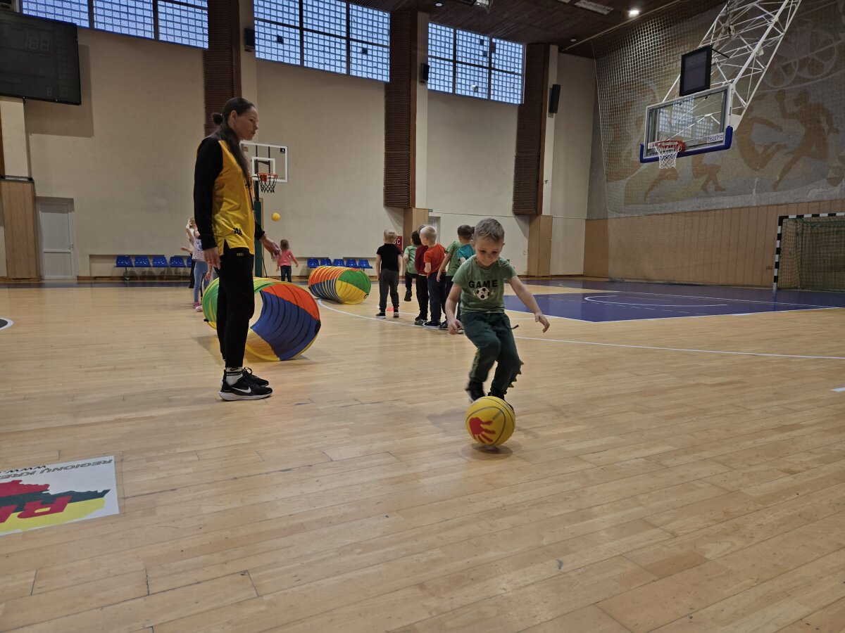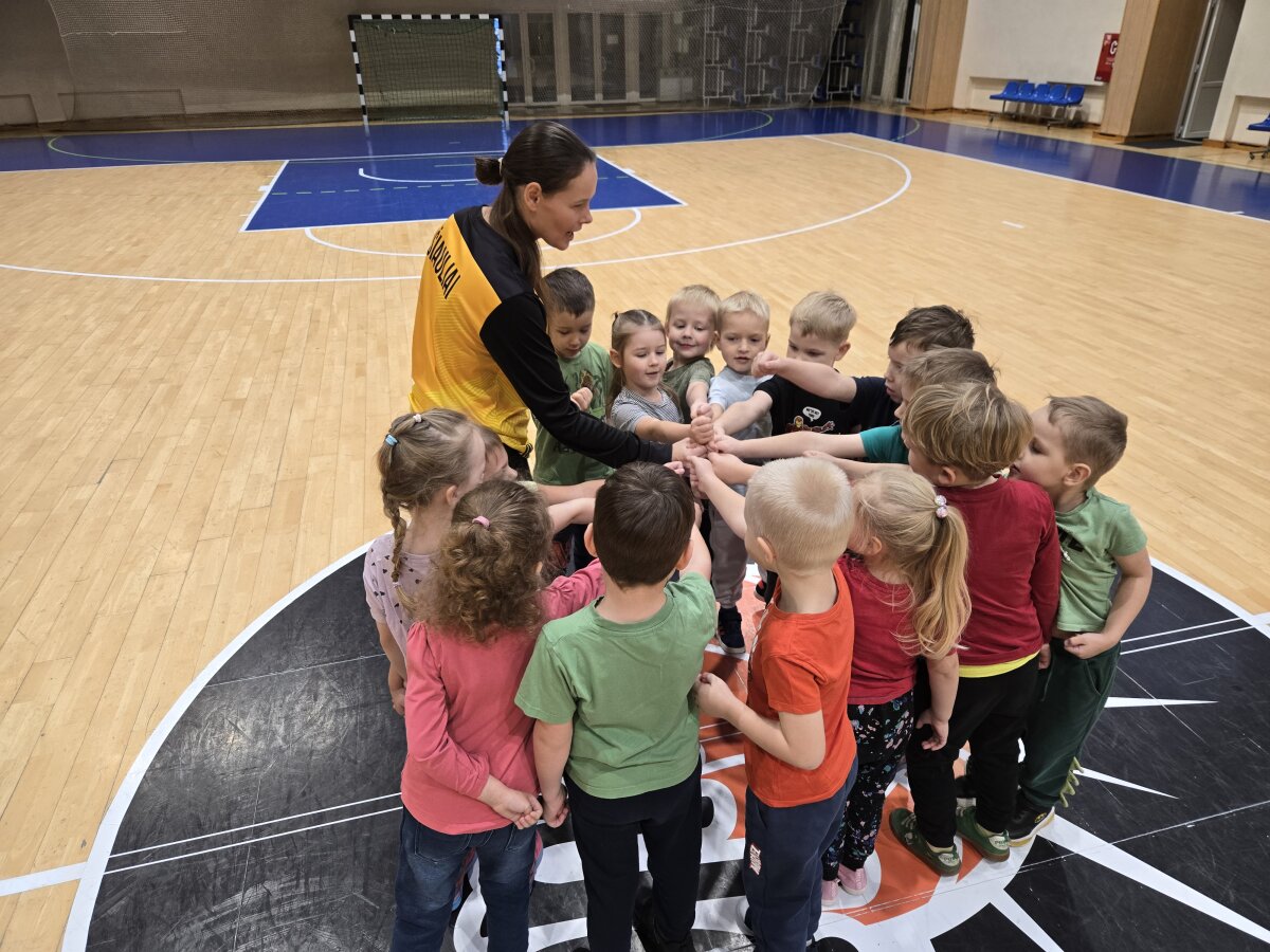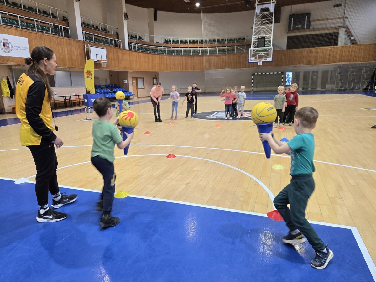 Sportininkė vaikus pakvietė į aktyvią treniruotę, kurioje vaikai sužinojo ir išmoko įvairių krepšinio žaidimo technikos elementų bei patyrė daug džiugių emocijų atlikdami komandines užduotis, dalyvaudami estafetėse bei žaisdami smagius žaidimus. Mažiesiems projekto dalyviams labai patiko užsiėmimas. Tęsiant projektą, išmoktus žaidimus, pratimus ir užduotis būtinai integruosime fizinio aktyvumo veiklose įstaigoje.