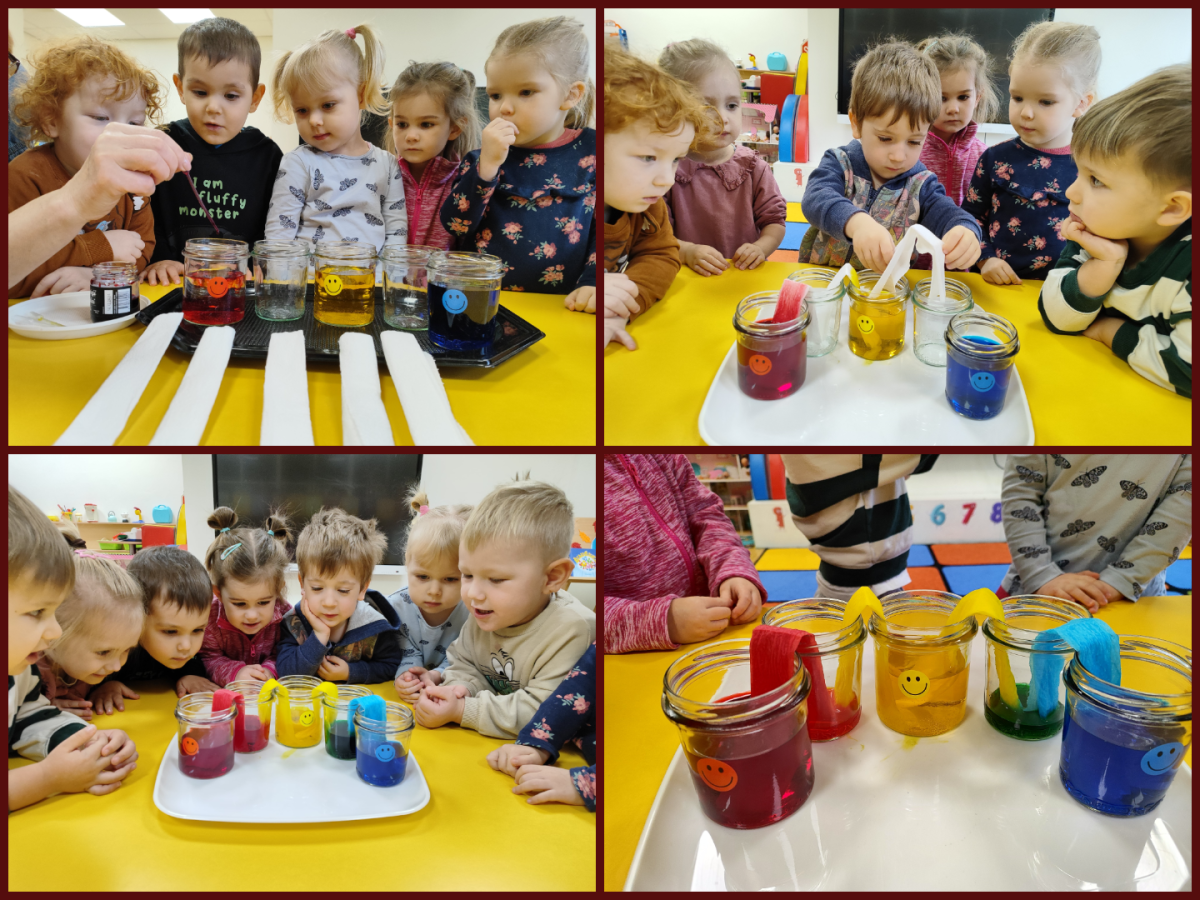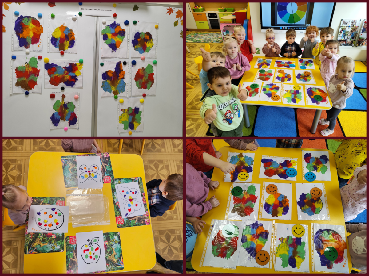 Ugdytiniai ieškojo aplinkoje daiktų pagal rodomą spalvą, juos skaičiavo ir rūšiavo pagal dydį, taip ugdydami loginį mąstymą ir pastabumą. Kurdami meninį darbelį, vaikai pirštukais stumdė dažus ant popieriaus įvairiomis kryptimis, lavino smulkiąją motoriką ir džiaugėsi netikėtomis spalvų kombinacijomis. Didelį įspūdį paliko eksperimentas „Spalvų šokis“, kai flomasteriais marginti vatos diskai buvo merkiami į pieną ir stebimos pamažu besiskleidžiančios spalvos.