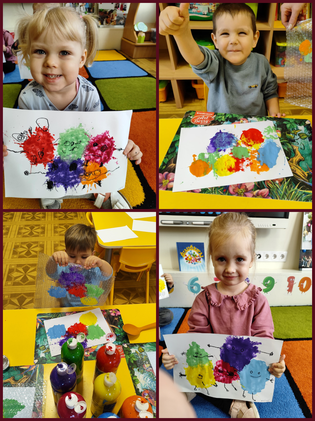 Projekto metu įvairūs namų apyvokos daiktai virto kūrybine medžiaga – taip gimė „Pukuotukai“. Vaikai šaukštais liejo spalvotus dažus, piešė akytes, burnytes ir rankytes, kurdami linksmus, žaismingus personažus, kurie papuošė grupės stendą. Projektas skatino ne tik individualią saviraišką, bet ir komandinį darbą, bendrą kūrybą bei vaikų tarpusavio bendravimą. „Spalvų magija“ tapo spalvinga, atradimais ir teigiamomis emocijomis pripildyta patirtimi, praturtinusia ugdytinių kasdienybę ir sustiprinusia jų norą tyrinėti pasaulį.