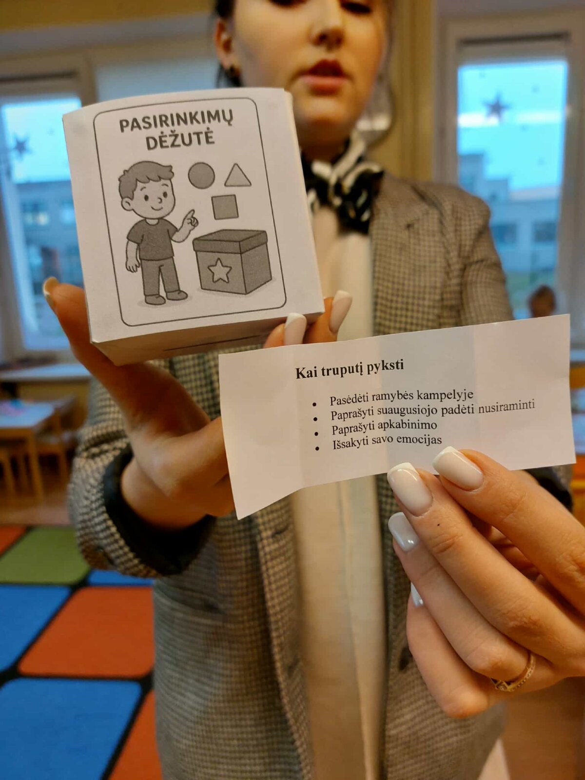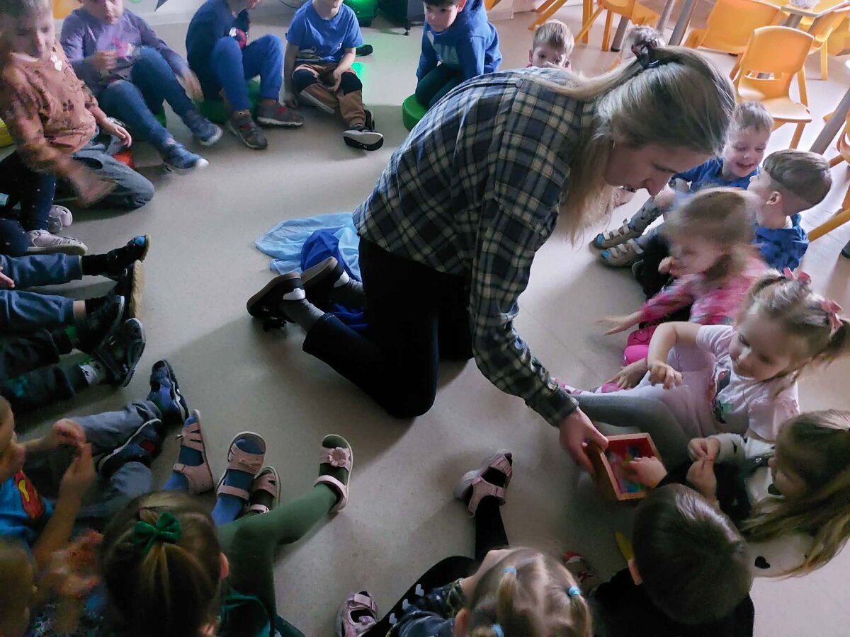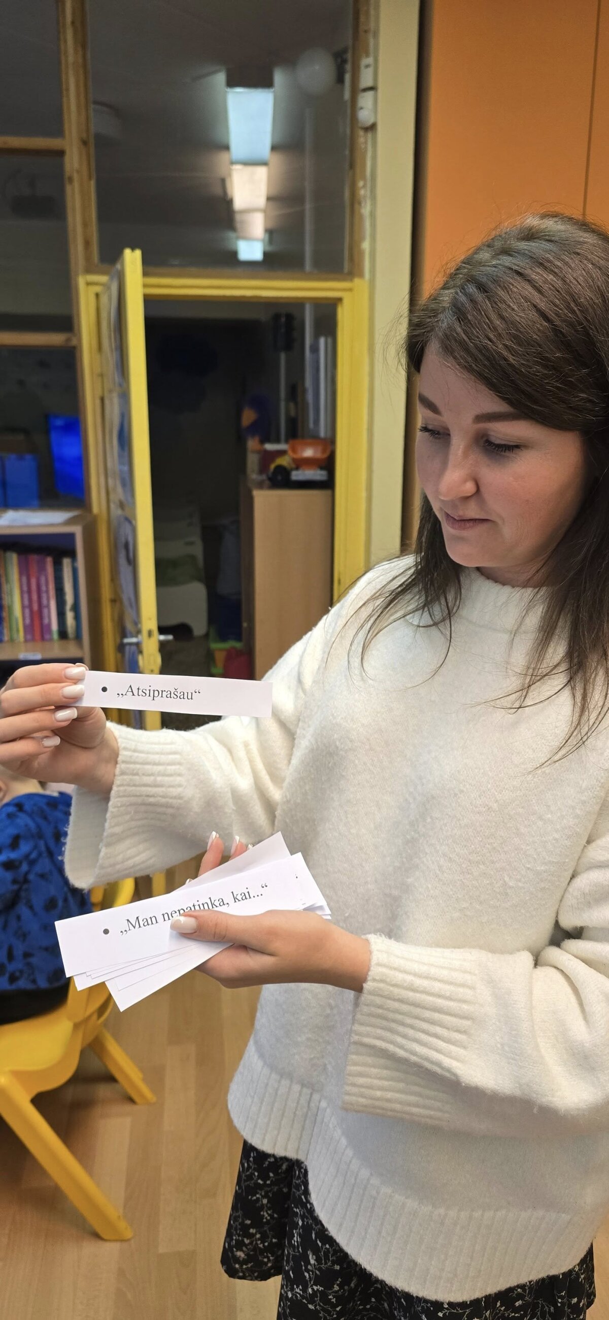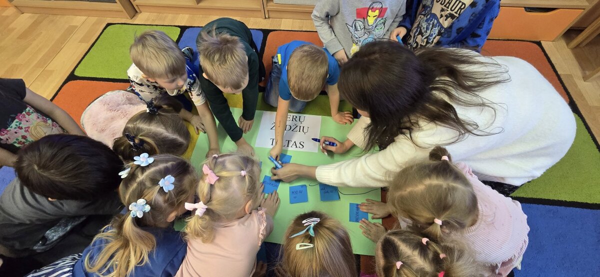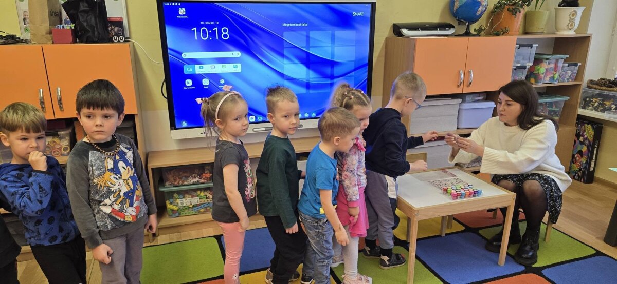Grupės „Kleviukai“ vaikai kartu su ikimokyklinio ugdymo mokytojomis Sandra Martinkute-Grigaitiene ir Žydrūne Baltrukėniene, mokytojo padėjėja Asta Stugiene, socialine pedagoge Viktorija Lukoševičiene bei specialiąja pedagoge Rimante Petrauske įgyvendino trumpalaikį problemų sprendimo projektą „Kleviukų draugystė“. Projekto tikslas – ugdyti vaikų gebėjimą integruotai spręsti įvairias problemas, stiprinti pozityvų tarpusavio bendravimą bei bendradarbiavimą. Projekto metu vaikai, praktiškai veikdami ir susidūrę su įvairiais iššūkiais, patys, padedami draugų ir mokytojų, mokėsi įveikti iškilusias problemas. Vienos iš veiklų metu vaikai turėjo „išlaisvinti“ lede užšalusius plastikinius gyvūnėlius. Lašindami šiltą vandenį, berdami druską ir grandydami ledą pagaliukais, vaikai sėkmingai atliko užduotį ir išlaisvino gyvūnėlius. Mokytoja atnešė vieną obuolį ir paklausė vaikų, ar ji galėtų jį suvalgyti viena, ar vis dėlto reikėtų pasidalinti. Nuomonės išsiskyrė: vieni manė, kad obuolį galima suvalgyti vienai, kiti siūlė dalintis. Po ilgų diskusijų, svarstymų bendru sutarimu nusprendėme pasidalinti su visais grupės draugais ir obuolį supjaustyti į tiek dalių, kiek grupėje yra žmonių. Nors kiekvienam teko po mažą gabalėlį, jo užteko visiems. Socialinė pedagogė Viktorija savo veiklas integravo į projekto turinį. Veiklos „Kartu išspręskime situaciją“ metu vaikai diskutavo, teikė siūlymus ir kartu ieškojo tinkamiausių sprendimų įvairiose situacijose. Veikloje „Pasirinkimų dėžutė“ jie mokėsi rinktis iš kelių galimų variantų, o užsiėmimo „Stebuklingi žodžiai“ metu – vartoti mandagius, gražius žodžius, padedančius taikiai spręsti problemas. Veikloje „Emocijų debesėliai“ vaikai mokėsi atpažinti, įvardyti ir valdyti savo emocijas bei jas kūrybiškai pavaizduoti. Specialioji pedagogė Rimantė, remdamasi knyga „Nojus ir banginis“, organizavo integruotą veiklą, skirtą stiprinti vaikų draugystės, bendradarbiavimo, problemų sprendimo ir pažintinius gebėjimus. Vaikai buvo įtraukti į žaismingas, trumpas problemų sprendimo užduotis, susijusias su knygos siužetu. Iškilus situacijai, kurioje banginiui reikėjo pagalbos, vaikai, dirbdami mažose grupelėse, ieškojo sprendimų, kaip Nojus galėtų padėti savo draugui. Išsiaiškinę, ką banginiukas mėgsta valgyti, vaikai piešė žuvytes, krabus. Sužinoję, kad banginiukas negali išgyventi be vandens, jie turėjo „užkimšti“ vonioje atsiradusias skylutes, kad vanduo neišbėgtų. Banginiukui susižeidus, vaikai klijavo pleistrus ant žaizdų ir ieškojo atitinkamų skaitmenų. Vaikai noriai padėjo Nojui išgelbėti banginiuką ir saugiai sugrąžinti jį į namus – vandenyną. Projekto veiklos tęsėsi ir namuose. Kartu su tėveliais vaikai įveikė STEAM iššūkį – „Pastatyti draugystės bokštą iš 3-5 apelsinų“. Iš pradžių vaikai bandė bokštą pastatyti savarankiškai, vėliau prašė tėvelių pagalbos. Bendradarbiaudami su šeimos nariais, vaikai sėkmingai pastatė draugystės bokštus, dar kartą patirdami, kokia svarbi yra pagalba, susitarimas ir draugiškas bendravimas.
