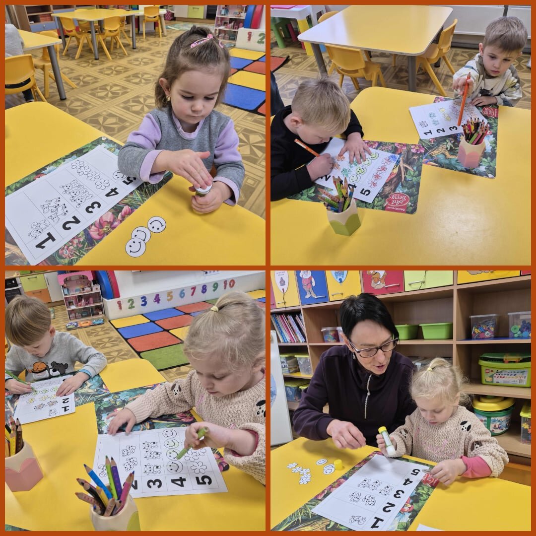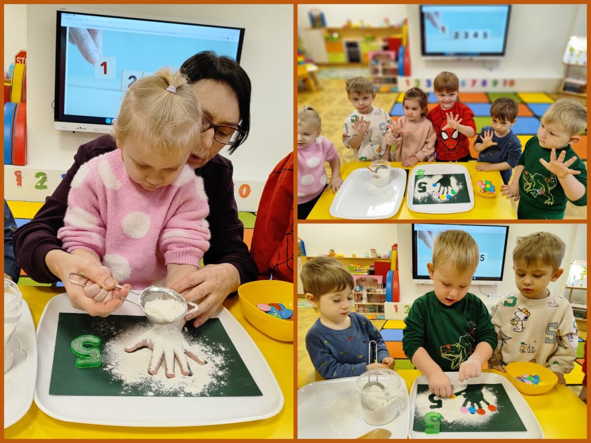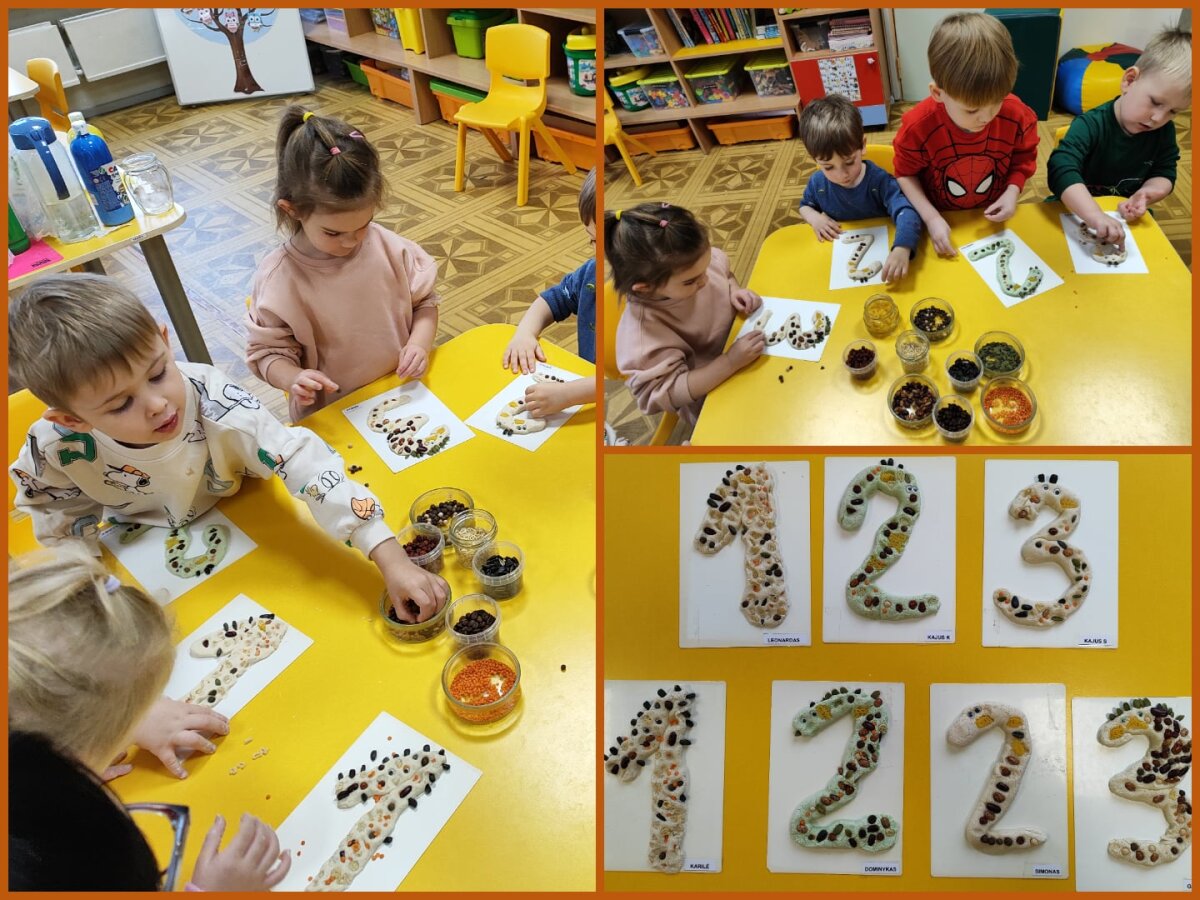 Vaikai leidosi į smagią ir žaismingą pažintį su skaičių pasauliu. Per įvairius žaidimus ir pojūčių patirtis jie mokėsi skaičiuoti iki penkių, atpažinti skaitmenis, pagrindines geometrines formas, rūšiuoti daiktus pagal spalvas ir dydžius, lyginti kiekius. Grupėje vaikai „keliavo“ spalvų ir skaičių takeliu, rinko karoliukus, juos skaičiavo ir vėrė pagal spalvą, dydį, nurodytą skaičių, statė matematinius bokštus iš skirtingų dydžių kaladėlių ir juos lygino pagal aukštį, spalvą bei dydį. Ant šviesos stalo dėliojo skaidrias formas, spalvotus akmenukus ir mažus žaisliukus, tyrinėjo jų formas, spalvas ir kiekius.