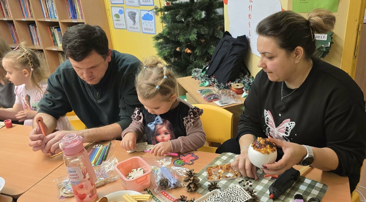 Gruodžio 4 d. grupės „Kleviukai“ vaikai kartu su ikimokyklinio ugdymo vyr. mokytojomis Sandra Martinkute-Grigaitiene ir Žydrūne Baltrukėniene, mokytojo padėjėja Asta Stugiene bei tėveliais dalyvavo STEAM Kalėdinių dirbtuvių „Kalėdinis žaisliukas“ veikloje.