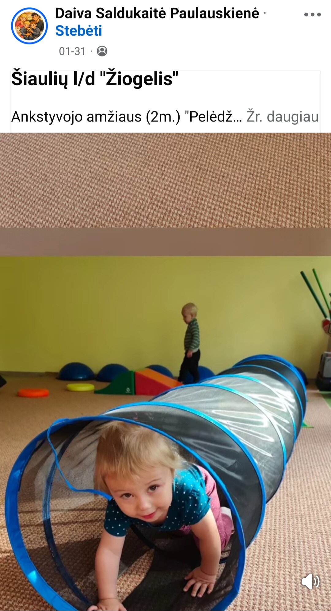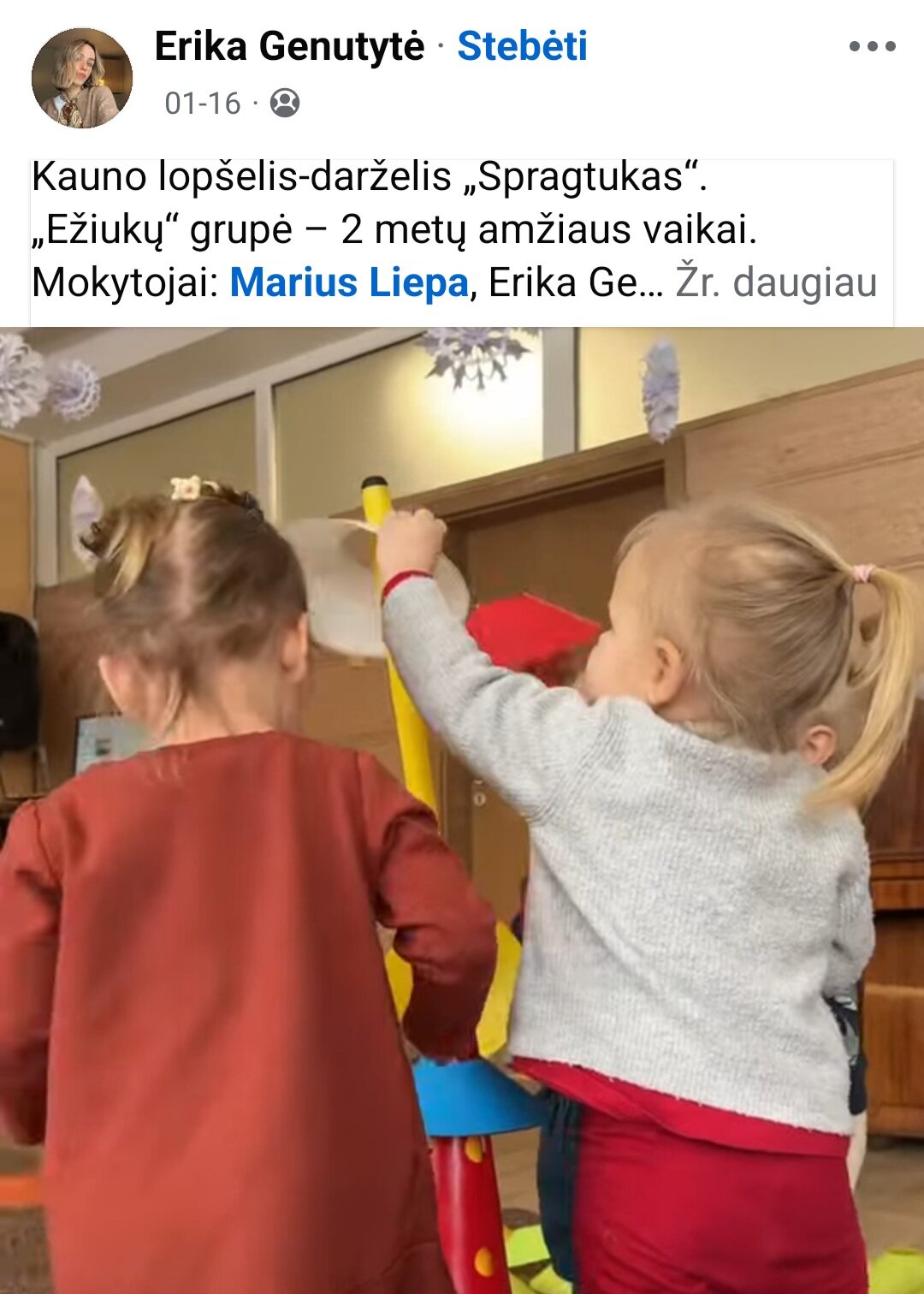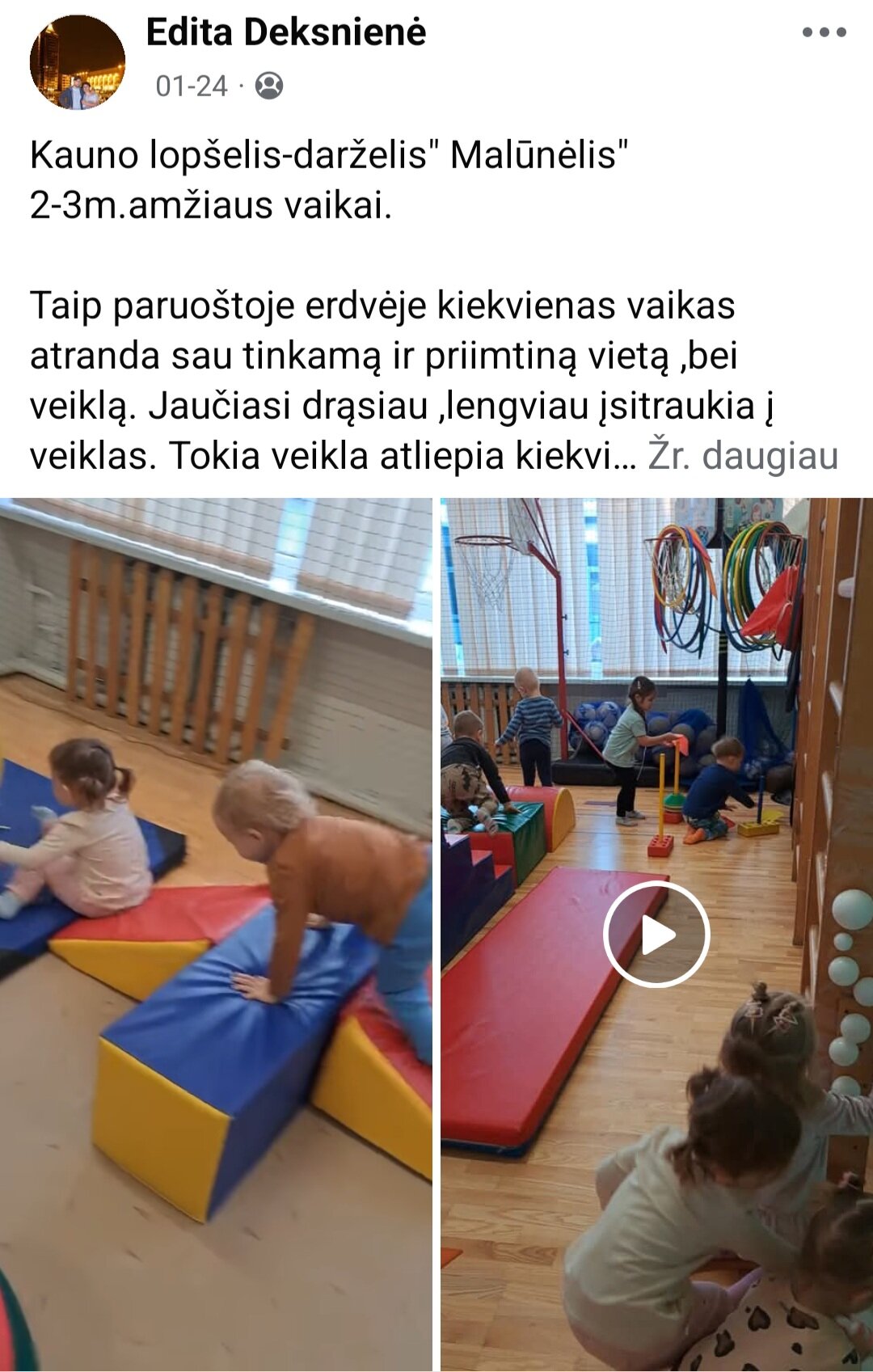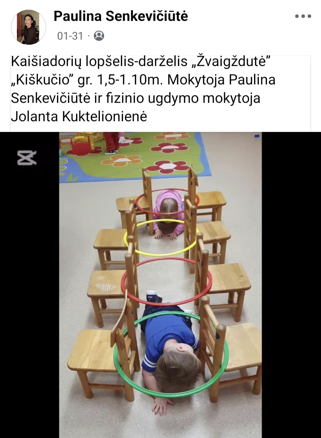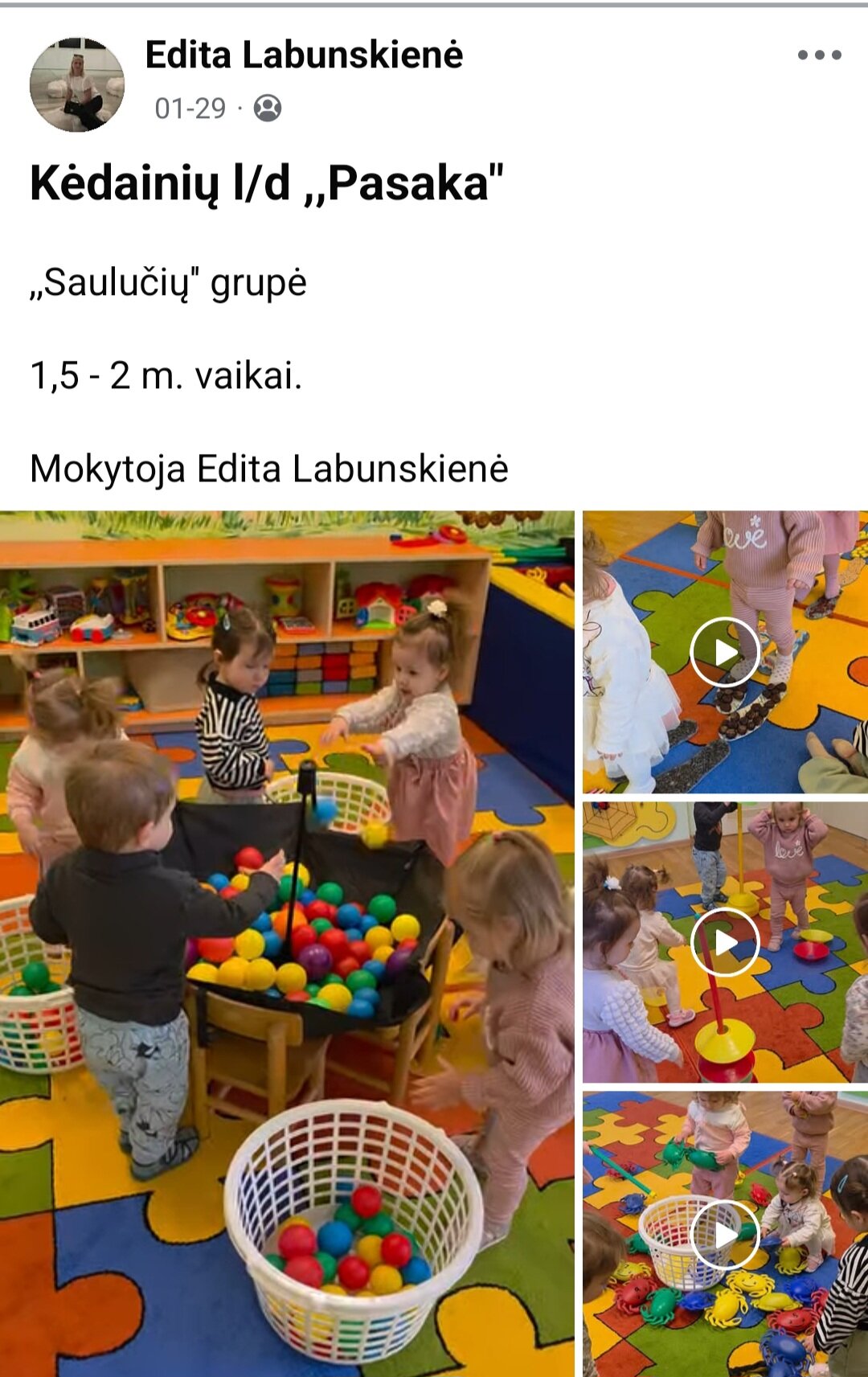 Sausio 12-30 d. judesio korekcijos specialistė, fizinio ugdymo mokytoja Lina Račė organizavo Respublikinį ankstyvojo amžiaus vaikų fizinį aktyvumą skatinantį projektą „Aktyvūs mažyliai 2026“. Projekto tikslas: pasidalinti ankstyvojo amžiaus vaikų fizinio aktyvumo skatinimo žaidimų, pratimų, veiklų idėjomis grupės, sporto salės, muzikos salės, lauko ar kitose erdvėse. Projektas sulaukė didžiulio šalies mokytojų susidomėjimo ir aktyvaus dalyvavimo. Į projektą įsitraukė daugiau nei 130 pedagogų iš visos Lietuvos ikimokyklinio ugdymo įstaigų. Gerąja darbo patirtimi ir kūrybinėmis ankstyvojo amžiaus fizinio aktyvumo veiklų idėjomis dalyviai dalinosi uždaroje Facebook grupėje „Aktyvūs mažyliai 2026“, kurioje patalpinta net 55 video įrašai. Projekto metu mokytojai ne tik dalinosi gerąja darbo patirtimi, bet ir praplėtė praktines žinias, įgavo naujos kūrybinės patirties, pasisėmė veiklos idėjų iš kitų kolegų.