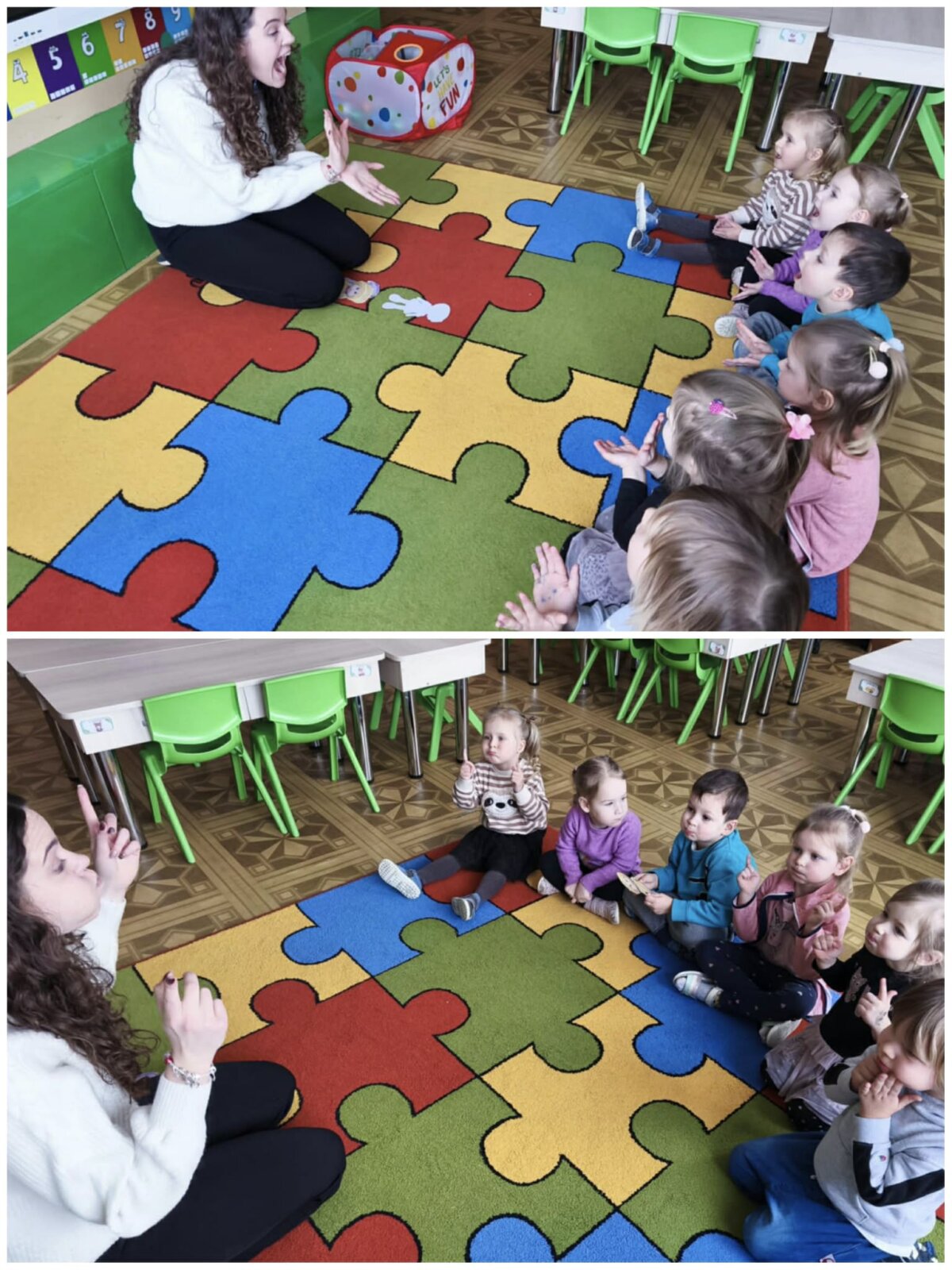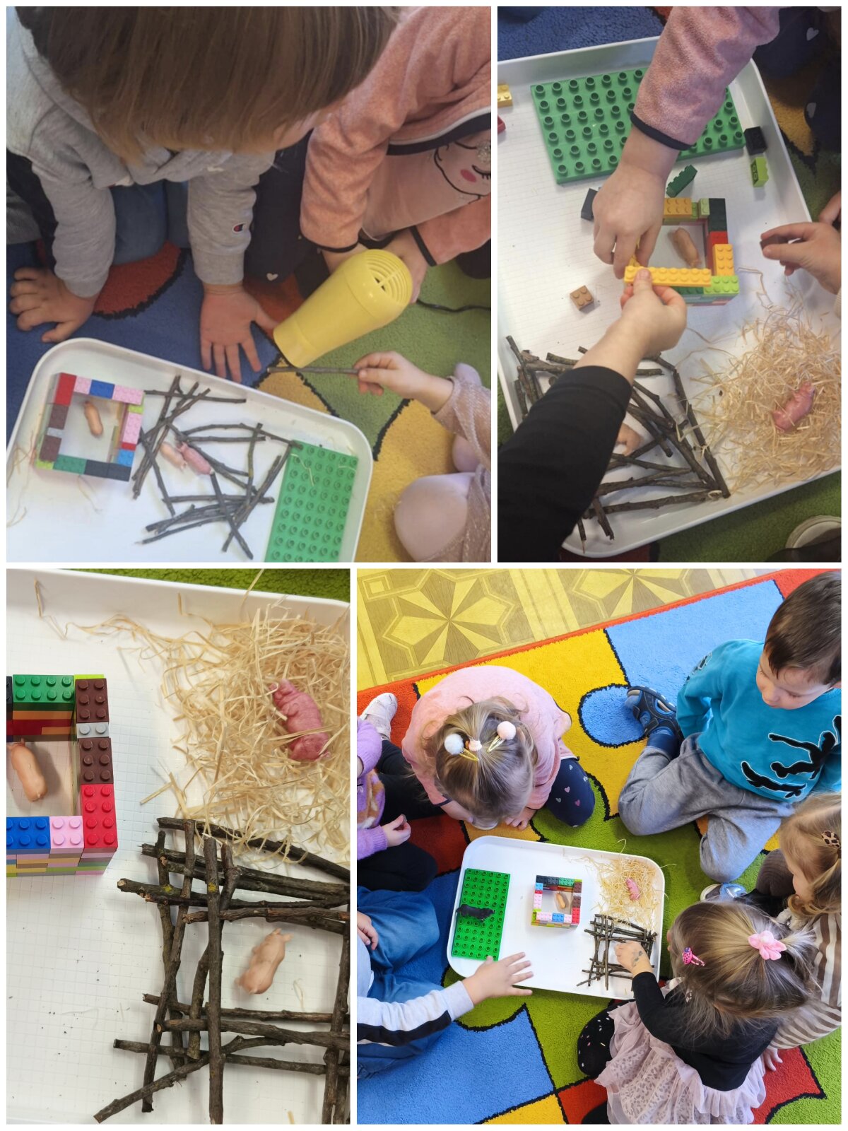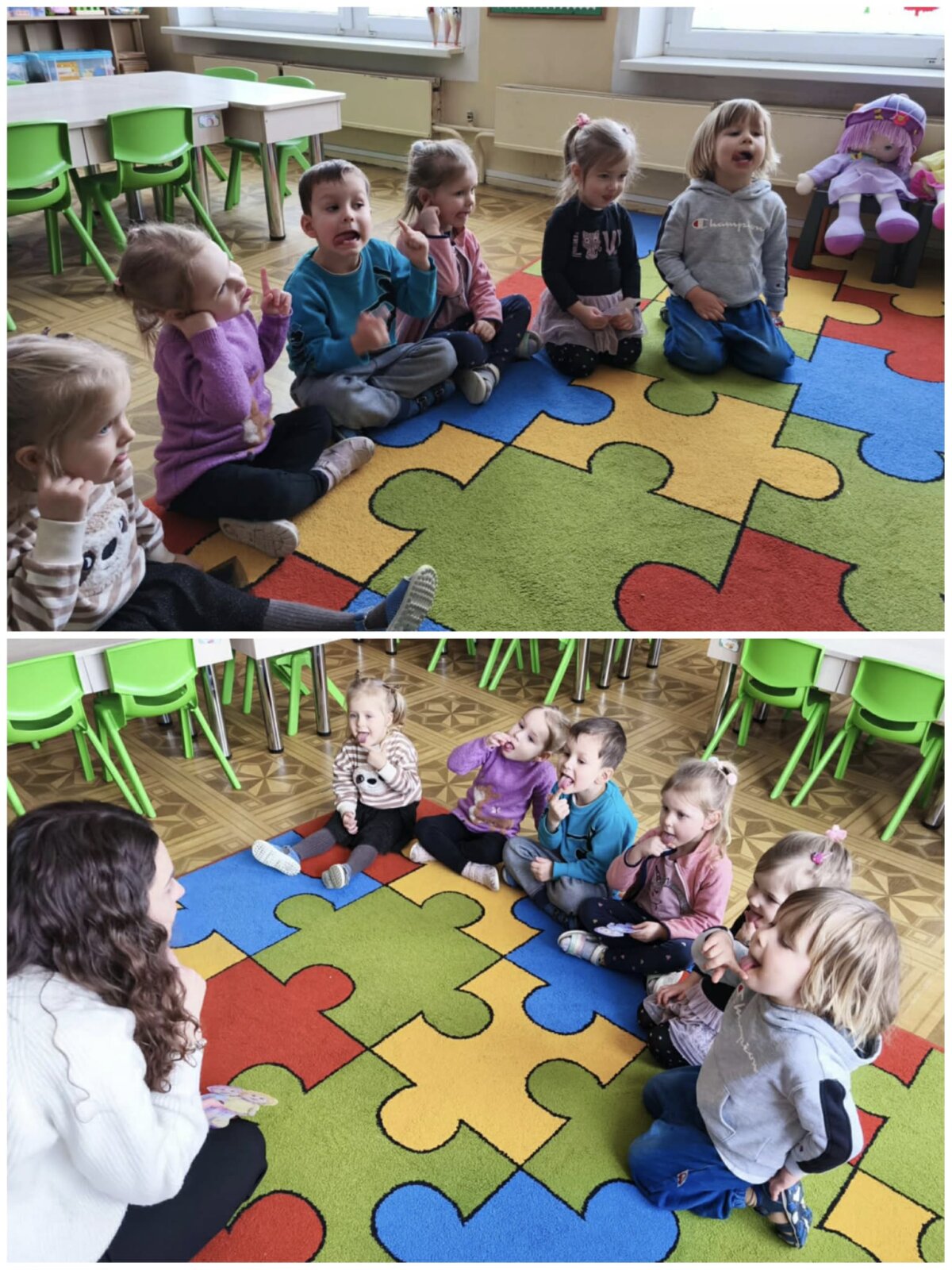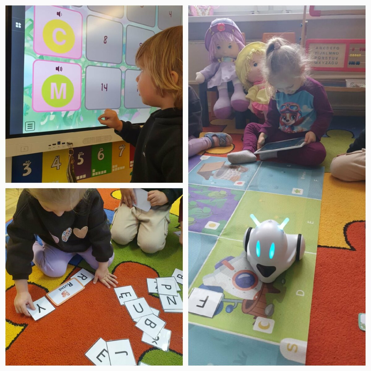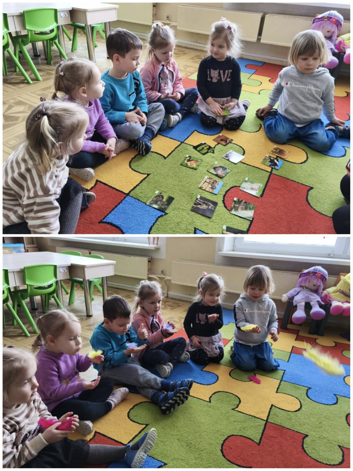 Projekto metu vaikai per žaidimą ir patyrimą susipažino su projekto personažais – lėlėmis, rinko joms vardus, pristatė save ir tyrinėjo savo vardų korteles. Atpažindami pirmąją vardo raidę, vaikai ją siejo su didelėmis raidėmis grupės aplinkoje, lygino, dėliojo iš įvairių medžiagų, spalvino, tapė, rideno kamuoliukus ir judėjo su mašinėlėmis kaip „raidžių gatvėmis“. Tokiu būdu raidės tapo tyrinėjimo objektais, o kalbinė veikla buvo integruota su inžineriniais, meniniais ir sensoriniais patyrimais. Pirštukų žaidimuose ir judesio veiklose vaikai lavino taisyklingą garsų tarimą, kalbinį ritmą, smulkiąją motoriką ir rankų–akių koordinaciją, kurie yra svarbūs kalbos raidai. Kalbiniai gebėjimai buvo nuosekliai ugdomi per knygelių „skaitymą“ ir analizę – vaikai įvardijo iliustracijose matomus objektus, veikėjus, jų veiksmus, lygino knygas pagal dydį ir storį, taikydami elementarius matematinio mąstymo veiksmus. Inžinerinė STEAM veikla „Bokštas aukštesnis už knygą“ skatino vaikus planuoti, rinktis priemones, matuoti, lyginti aukštį, bandyti ir koreguoti sprendimus, ugdant atkaklumą, loginį mąstymą ir pasitikėjimą savimi. LEGO namo konstravimas ir takų planavimas papildė šias veiklas, skatindami erdvinį suvokimą, problemų sprendimą ir bendradarbiavimą. Pasakos „Raudonkepuraitė“, „Trys paršiukai“ ir „Ropė“ tapo integruota STEAM priemone kalbai, technologijoms, inžinerijai ir kūrybinei raiškai ugdyti. Vaikai stebėjo pasakų fragmentus virtualioje aplinkoje, atkūrė siužetus naudodami figūrėles, improvizavo vaidindami, kūrė dialogus, konstravo paršiukams namelius iš skirtingų medžiagų ir analizavo veikėjų elgesį. Veiklos „Pintinė močiutei“ metu vaikai atpažino maisto produktus, juos įvardijo, grupavo ir sąmoningai vartojo kalboje, taip tikslingai plėsdami aktyvųjį žodyną. Tyrinėjimo ir gamtamokslinio pažinimo veiklose vaikai svėrė ir lygino ropes, tyrinėjo jų dydį, o eksperimento „Paslaptis“ metu, naudodami stiklinį indą ir spalvotą vandenį, aiškinosi pasakos „Ropė“ veikėjų eiliškumą. Eksperimento „Vilko pūtimas“ metu vaikai tyrė oro srauto poveikį skirtingoms konstrukcinėms medžiagoms, lygino namelių tvirtumą ir darė paprastas išvadas. Technologijų integracija vyko per edukacinius IT žaidimus, kuriuose vaikai siejo skaičių ir kiekį, atpažino ir įvardijo raides, girdėjo ir kartojo jų garsus. Programuodami Photon robotuko kelią iki savo vardo pirmosios raidės, vaikai lavino loginį ir matematinį mąstymą, sekos suvokimą bei erdvinę orientaciją. Įgyvendinant projektą „Čiauškučiai“, didelis dėmesys buvo skiriamas ir tiksliniam kalbinių gebėjimų stiprinimui bendradarbiaujant su švietimo pagalbos specialistu. Logopedė–specialioji pedagogė Deimantė Šniukaitė vedė kalbos ugdymo užsiėmimą, kurio metu žaismingai ir nuosekliai buvo lavinami vaikų kalbiniai įgūdžiai. Užsiėmimo pradžioje vaikai atliko artikuliacinio aparato mankštą „Citrinukė“ ir „Ema“, stiprindami burnos, liežuvio ir lūpų raumenis bei ruošdamiesi tolimesnėms kalbinėms veikloms. Taikant patyriminį ir tyrinėjimu grįstą metodą, vaikai lavino kalbinį kvėpavimą pūsdami plunksnas ir stebėdami jų judėjimą ore. Klausydamiesi gyvūnų skleidžiamų garsų, vaikai ugdė girdimąjį suvokimą, bandė atpažinti ir įvardyti garsų šaltinius. Žaidybinėje veikloje su kamuoliukais vaikai ieškojo vienodų paveikslėlių ir spalvų porų, o suradę jas įvardijo, apibūdino spalvą ir dydį, taip stiprindami žodyną, kalbinę raišką ir loginį mąstymą. Šis užsiėmimas prasmingai papildė projekte taikomas STEAM veiklas ir prisidėjo prie nuoseklaus vaikų kalbos ugdymo ir džiaugsmo mokantis.