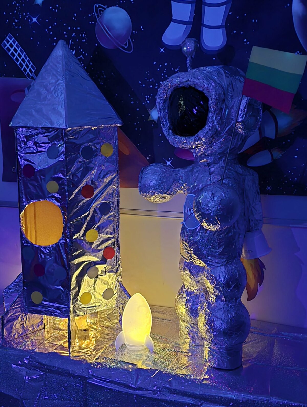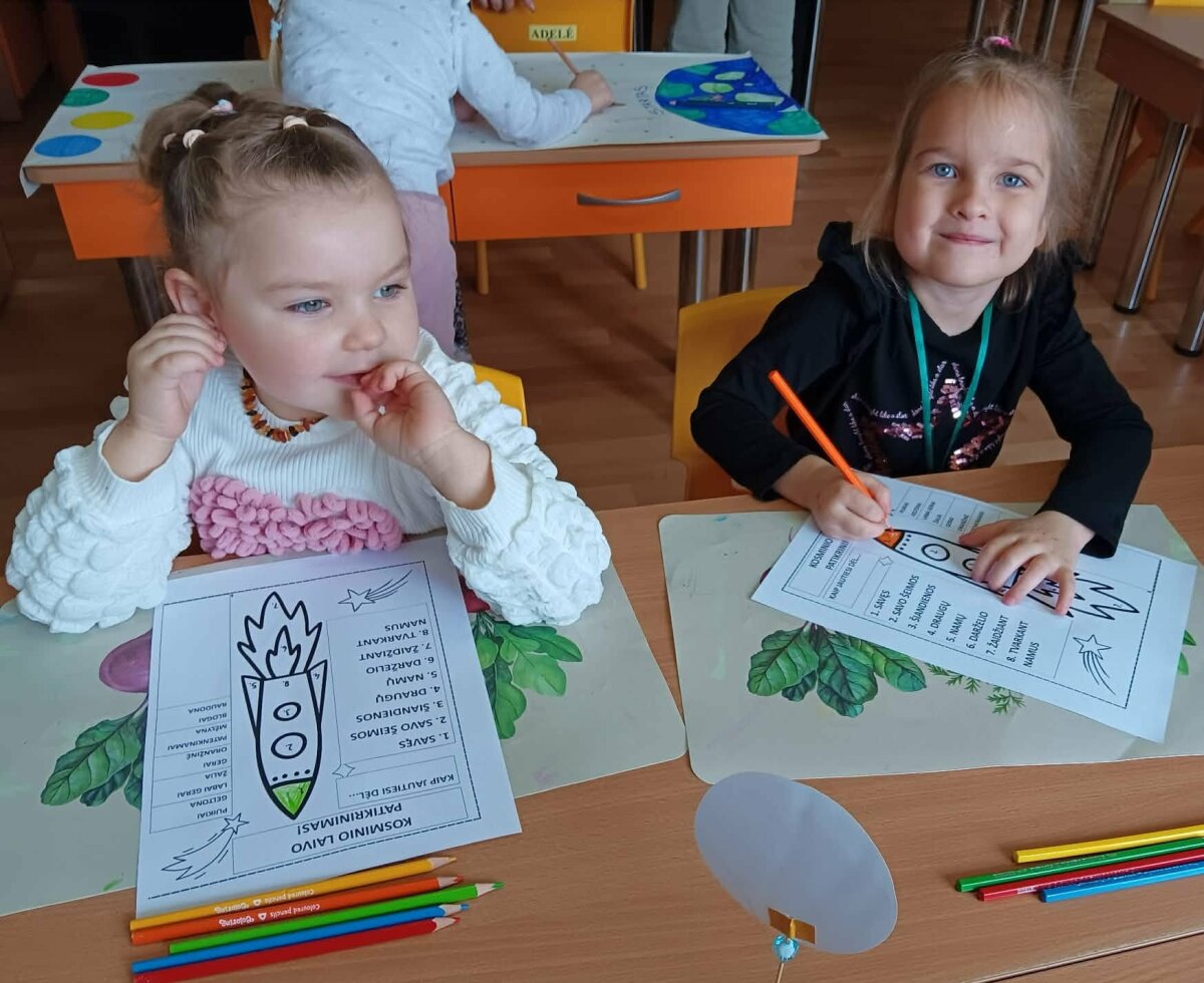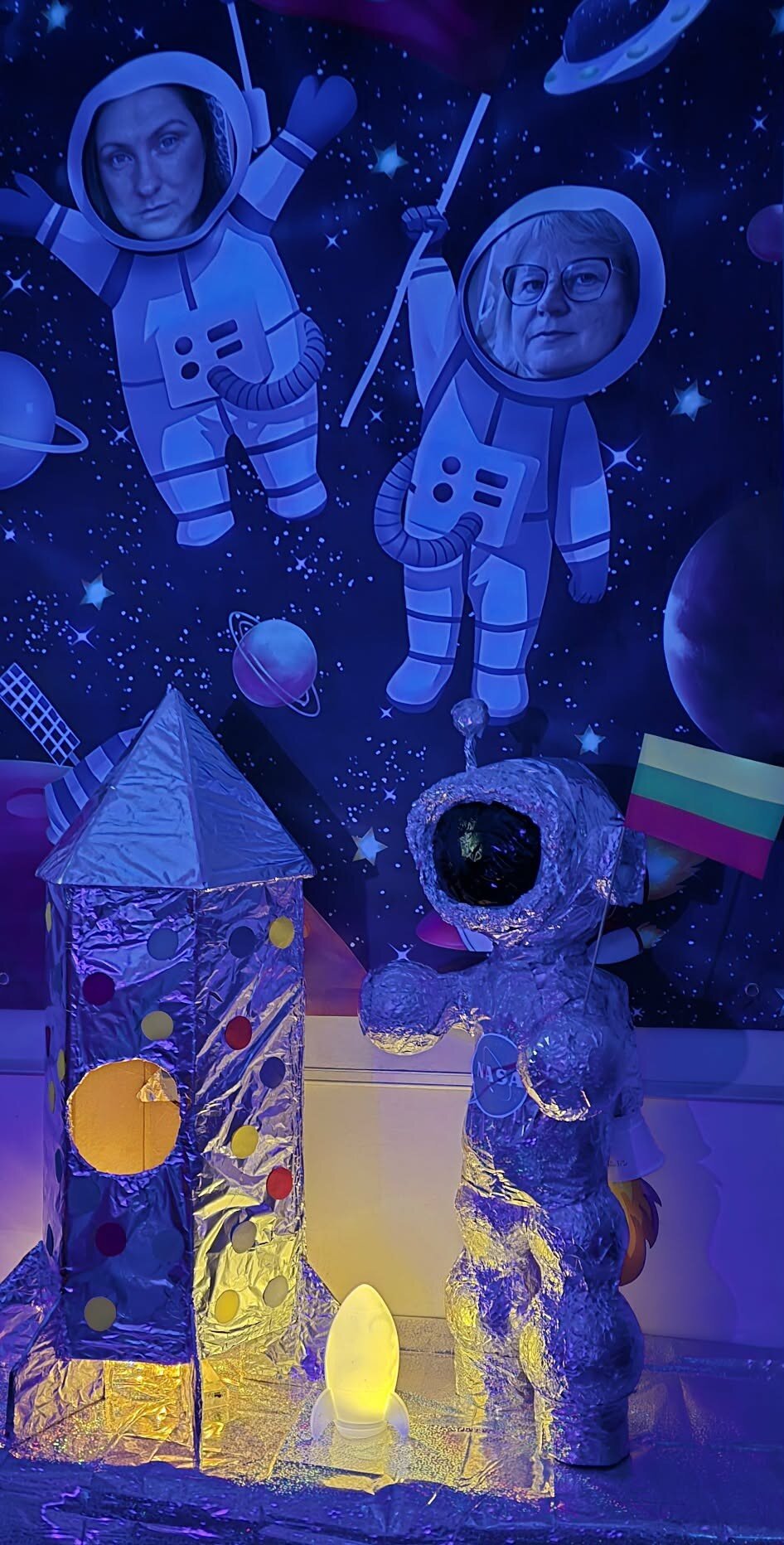 Šiaulių lopšelio-darželio „Eglutė“ grupėje „Kleviukai“ vaikai kartu su ikimokyklinio ugdymo vyr. mokytojomis Sandra Martinkute-Grigaitiene ir Žydrūne Baltrukėniene kovo 2–20 dienomis įgyvendino trumpalaikį STEAM projektą „Aš – astronautas kosmoso platybėse“. Projekto metu siekta ugdyti vaikų matematinį mąstymą ir skaitmeninį sumanumą, integruojant kosmoso temą į įvairias patyrimines veiklas. Veiklose dalyvavo grupės vaikai, mokytojai ir tėvai. Ugdymo procesas buvo grindžiamas STEAM principais, skatinančiais vaikų tyrinėjimą, kūrybiškumą, problemų sprendimą ir bendradarbiavimą. Veiklų metu vaikai susipažino su kosmoso pasauliu – planetomis, žvaigždėmis, raketomis ir astronautais. Ypatingas dėmesys buvo skiriamas matematinio mąstymo ugdymui: vaikai skaičiavo kosmoso objektus, lygino jų dydžius, svorius ir atstumus, mokėsi rūšiuoti bei grupuoti pagal įvairius požymius. Jie taip pat taikė matematinius gebėjimus konstruodami, skaičiuodami, grupuodami ir spręsdami paprastas užduotis, susijusias su kosmoso tema – matavo raketų aukščius liniuote, lygino rezultatus ir darė išvadas. Projekte dalyvavo ir socialinis pedagogas, kuris įgyvendino Socialinių tyrinėtojų programos „Mes – mąstytojai“ III dalį tema „Kaip suprasti vieniems kitus be žodžių“. Konstruodami raketas ir kosmoso modelius, vaikai gilino skaičiavimo, matavimo bei erdvinio suvokimo gebėjimus, sprendė paprastas problemas, kėlė hipotezes ir ieškojo sprendimų. Skaitmeninio sumanumo gebėjimai buvo ugdomi naudojant planšetes, edukacines bitutes „Bee-Bot“, interaktyvias lentas ir edukacines programėles. Vaikai mokėsi valdyti „Bee-Bot“ – planuoti maršrutus, nustatyti kryptis, sudaryti logines sekas ir spręsti paprastas algoritminio mąstymo užduotis. Patirtiniam mokymuisi buvo skiriamas ypatingas dėmesys: vaikai atliko eksperimentus, dalyvavo įvairiose sensorinėse veiklose, tyrinėjo, atrado naujus dalykus ir lavino kūrybiškumą. Taip pat buvo lavinama smulkioji motorika per piešimą, lipdymą, karpymą bei įvairias manipuliacines užduotis. Į projektą aktyviai įsitraukė ir tėvai – kartu su vaikais kūrė kosminius darbelius, atliko kūrybines užduotis namuose. Veikloje dalyvavo ir sveikatos specialistė, kuri skatino sveikos mitybos įpročių formavimą, padėjo vaikams atrasti maisto gaminimo džiaugsmą ir pabrėžė sveikos mitybos svarbą kasdienybėje. Veikloje „Kosmoso vaisinės salotos“ vaikai patys pjaustė įvairius vaisius, maišė juos su natūraliu jogurtu, dekoravo „kosminiais“ pabarstukais, svėrė vaisius ir lygino jų dydžius, taip lavindami smulkiąją motoriką, kūrybiškumą bei matematinius gebėjimus. Projekto pabaigoje buvo organizuota fotosesija, kurios metu vaikai į darželį atvyko pasipuošę pačių kurtais kostiumais – astronautų aprangomis ir skafandrais. Įgyvendinant projektą sudarytos sąlygos kiekvienam vaikui aktyviai dalyvauti, patirti sėkmę bei ugdyti pažintinius, kūrybinius ir socialinius gebėjimus. Taip pat buvo organizuota išvyka į „Akropolis“ prekybos centre esantį „Forum Cinemas“, kur žiūrėtas animacinis filmas „Arklio Dominyko kelionė į žvaigždes“. Ši veikla padėjo stiprinti vaikų žinias apie kosmosą, skatino domėjimąsi planetomis ir kosmoso pasauliu bei ugdė vaizduotę, draugiškumą, meilę ir drąsą. Kosmoso tema tapo patrauklia ir įkvepiančia priemone mokytis, tyrinėti ir atrasti.