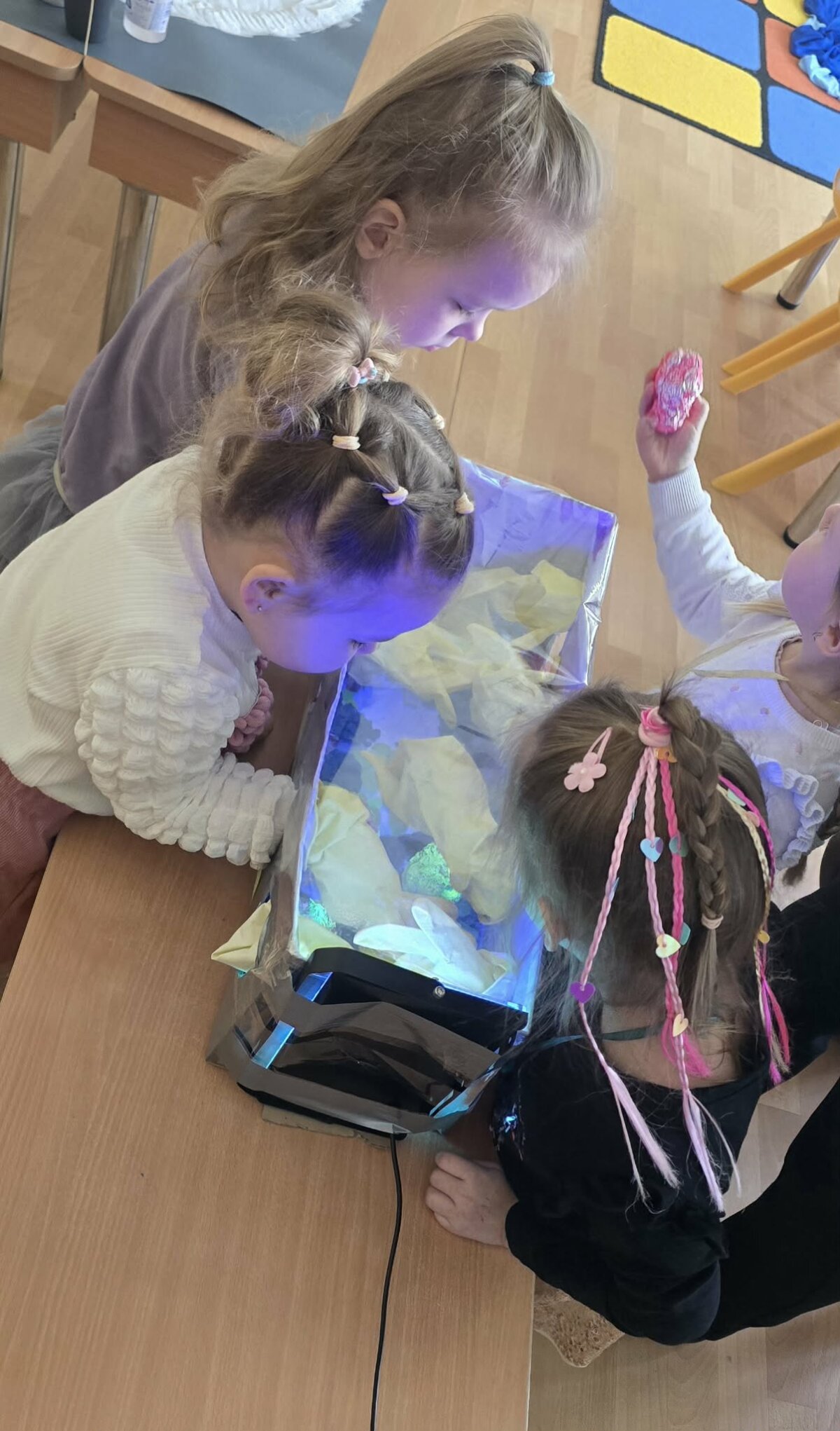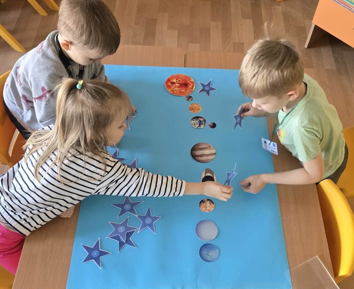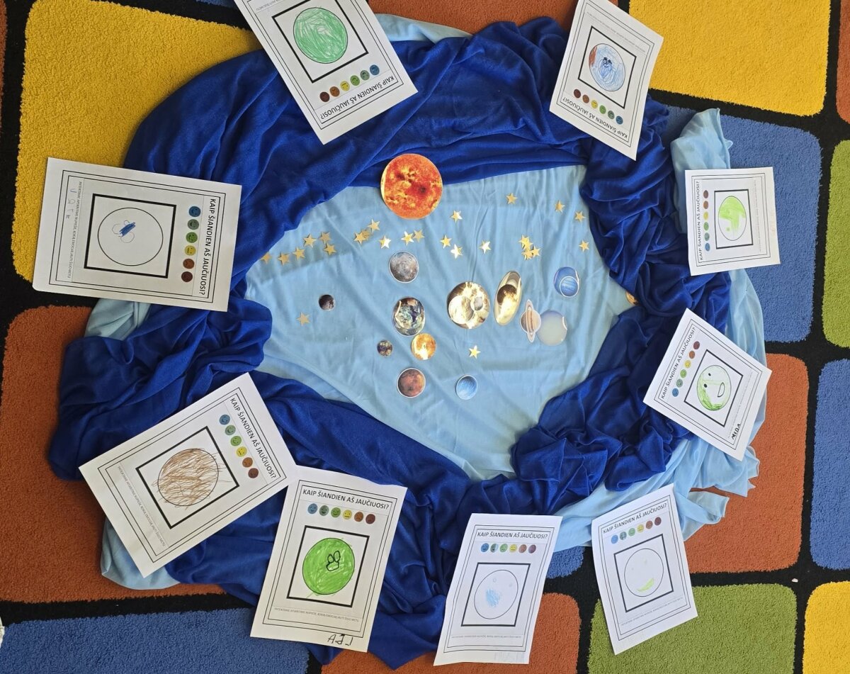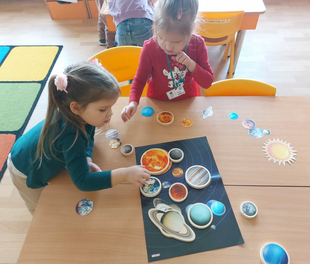 Šiaulių lopšelio-darželio „Eglutė“ grupėje „Kleviukai“ vaikai kartu su ikimokyklinio ugdymo vyr. mokytojomis Sandra Martinkute-Grigaitiene ir Žydrūne Baltrukėniene kovo 2–20 dienomis įgyvendino trumpalaikį STEAM projektą „Aš – astronautas kosmoso platybėse“. Projekto metu siekta ugdyti vaikų matematinį mąstymą ir skaitmeninį sumanumą, integruojant kosmoso temą į įvairias patyrimines veiklas. Veiklose dalyvavo grupės vaikai, mokytojai ir tėvai. Ugdymo procesas buvo grindžiamas STEAM principais, skatinančiais vaikų tyrinėjimą, kūrybiškumą, problemų sprendimą ir bendradarbiavimą. Veiklų metu vaikai susipažino su kosmoso pasauliu – planetomis, žvaigždėmis, raketomis ir astronautais. Ypatingas dėmesys buvo skiriamas matematinio mąstymo ugdymui: vaikai skaičiavo kosmoso objektus, lygino jų dydžius, svorius ir atstumus, mokėsi rūšiuoti bei grupuoti pagal įvairius požymius. Jie taip pat taikė matematinius gebėjimus konstruodami, skaičiuodami, grupuodami ir spręsdami paprastas užduotis, susijusias su kosmoso tema – matavo raketų aukščius liniuote, lygino rezultatus ir darė išvadas. Projekte dalyvavo ir socialinis pedagogas, kuris įgyvendino Socialinių tyrinėtojų programos „Mes – mąstytojai“ III dalį tema „Kaip suprasti vieniems kitus be žodžių“. Konstruodami raketas ir kosmoso modelius, vaikai gilino skaičiavimo, matavimo bei erdvinio suvokimo gebėjimus, sprendė paprastas problemas, kėlė hipotezes ir ieškojo sprendimų. Skaitmeninio sumanumo gebėjimai buvo ugdomi naudojant planšetes, edukacines bitutes „Bee-Bot“, interaktyvias lentas ir edukacines programėles. Vaikai mokėsi valdyti „Bee-Bot“ – planuoti maršrutus, nustatyti kryptis, sudaryti logines sekas ir spręsti paprastas algoritminio mąstymo užduotis. Patirtiniam mokymuisi buvo skiriamas ypatingas dėmesys: vaikai atliko eksperimentus, dalyvavo įvairiose sensorinėse veiklose, tyrinėjo, atrado naujus dalykus ir lavino kūrybiškumą. Taip pat buvo lavinama smulkioji motorika per piešimą, lipdymą, karpymą bei įvairias manipuliacines užduotis. Į projektą aktyviai įsitraukė ir tėvai – kartu su vaikais kūrė kosminius darbelius, atliko kūrybines užduotis namuose. Veikloje dalyvavo ir sveikatos specialistė, kuri skatino sveikos mitybos įpročių formavimą, padėjo vaikams atrasti maisto gaminimo džiaugsmą ir pabrėžė sveikos mitybos svarbą kasdienybėje. Veikloje „Kosmoso vaisinės salotos“ vaikai patys pjaustė įvairius vaisius, maišė juos su natūraliu jogurtu, dekoravo „kosminiais“ pabarstukais, svėrė vaisius ir lygino jų dydžius, taip lavindami smulkiąją motoriką, kūrybiškumą bei matematinius gebėjimus. Projekto pabaigoje buvo organizuota fotosesija, kurios metu vaikai į darželį atvyko pasipuošę pačių kurtais kostiumais – astronautų aprangomis ir skafandrais. Įgyvendinant projektą sudarytos sąlygos kiekvienam vaikui aktyviai dalyvauti, patirti sėkmę bei ugdyti pažintinius, kūrybinius ir socialinius gebėjimus. Taip pat buvo organizuota išvyka į „Akropolis“ prekybos centre esantį „Forum Cinemas“, kur žiūrėtas animacinis filmas „Arklio Dominyko kelionė į žvaigždes“. Ši veikla padėjo stiprinti vaikų žinias apie kosmosą, skatino domėjimąsi planetomis ir kosmoso pasauliu bei ugdė vaizduotę, draugiškumą, meilę ir drąsą. Kosmoso tema tapo patrauklia ir įkvepiančia priemone mokytis, tyrinėti ir atrasti.