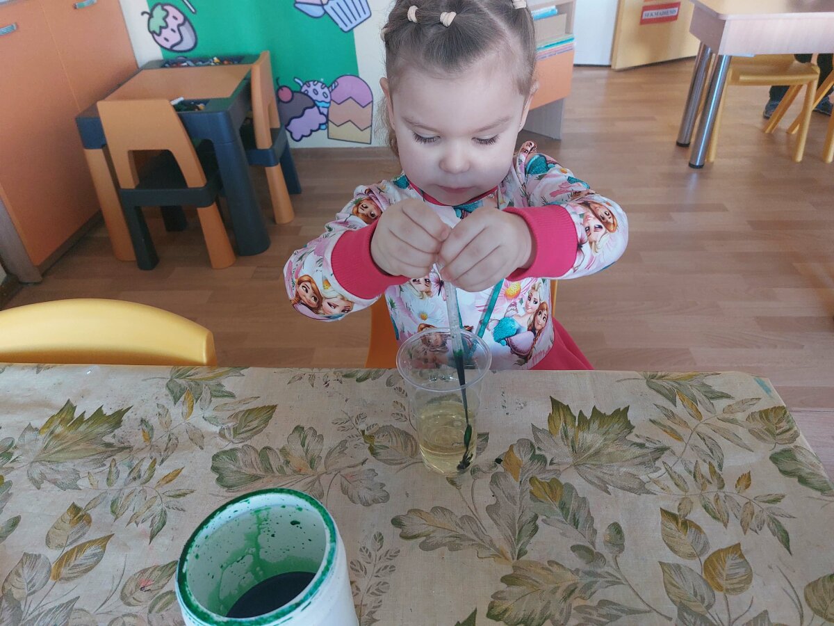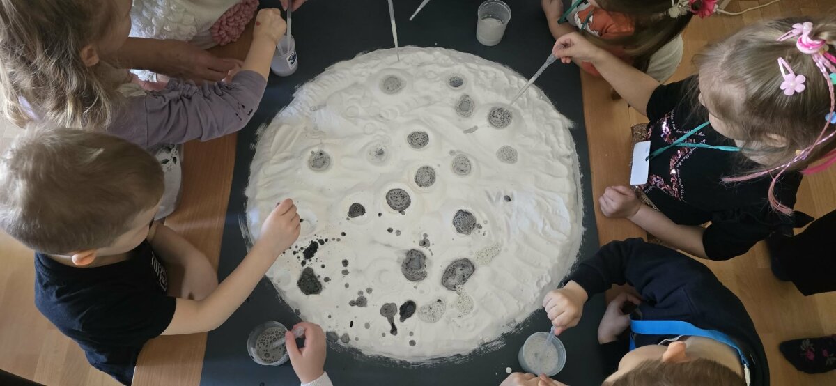 Grupės „Kaštoniukai“ vaikai tyrinėjo žiemą per STEAM eksperimentus. -