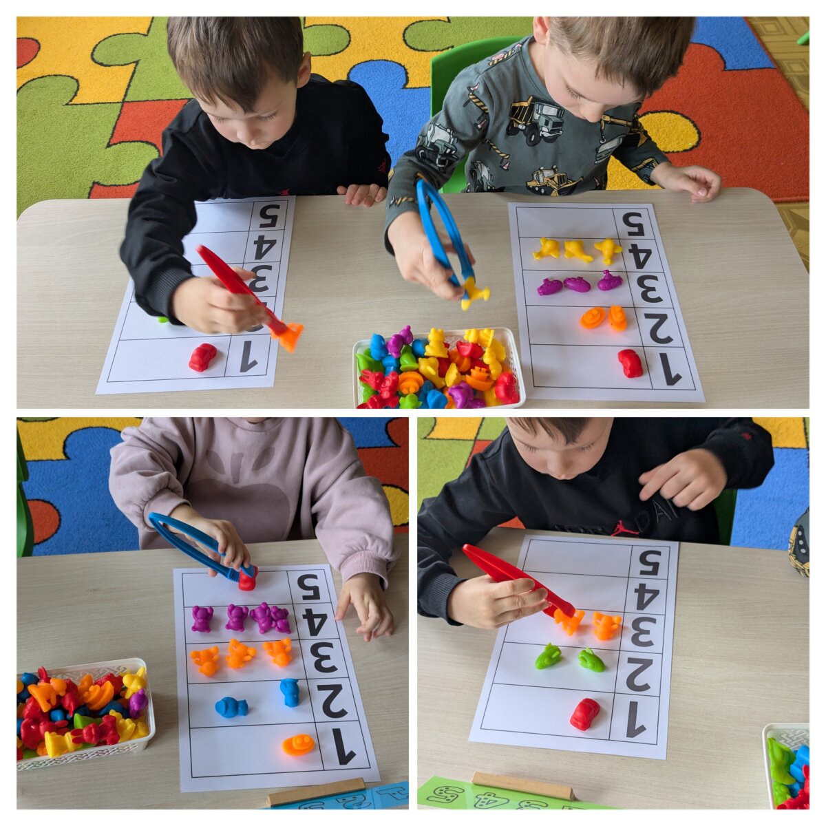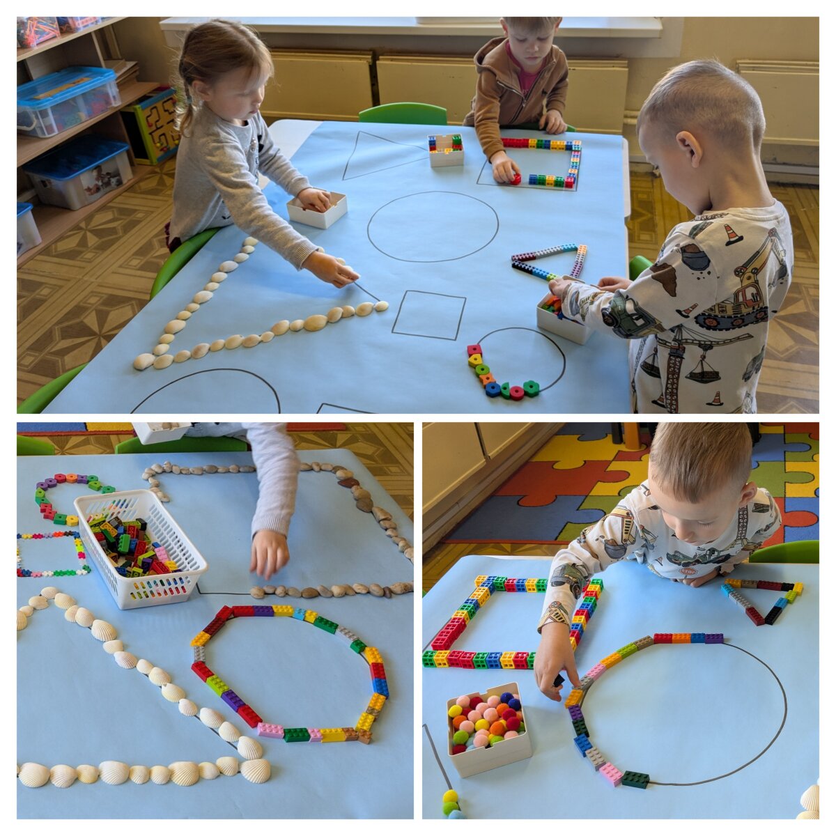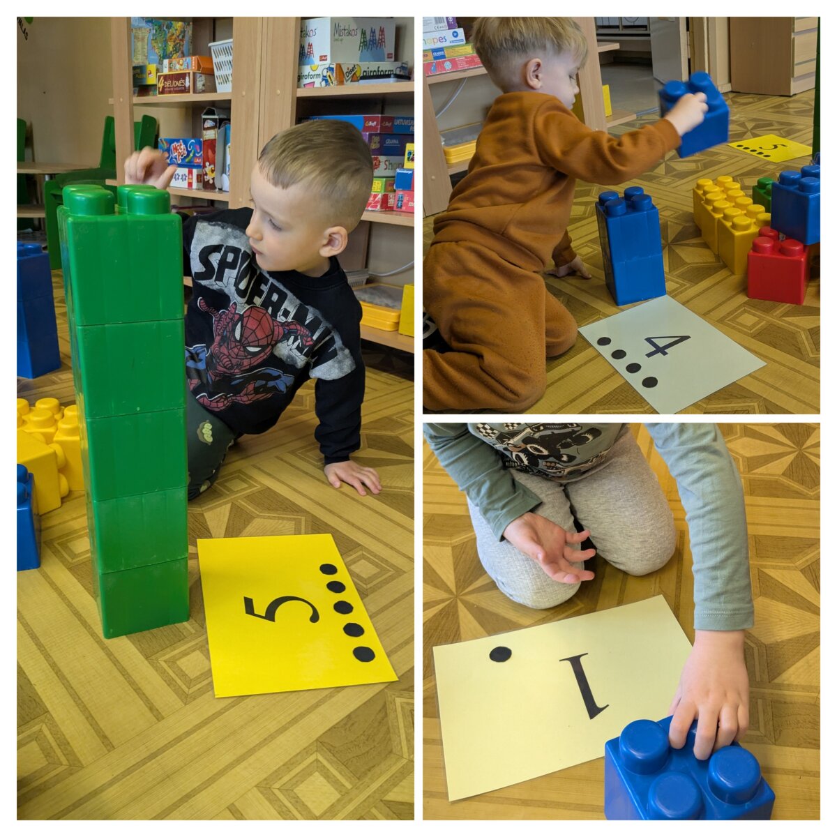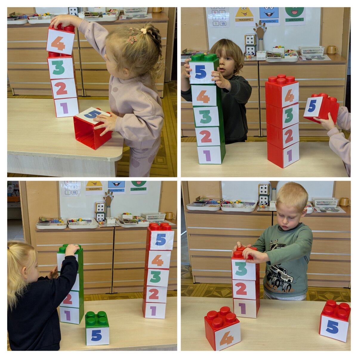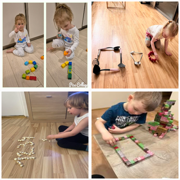 Projekto metu ugdymas buvo organizuojamas per žaidybinę, patirtinę ir tyrinėjimu grįstą veiklą, integruojant STEAM principus. Pirmąją savaitę vaikai susipažino su skaičiais nuo 1 iki 5: juos atpažino, siejo su kiekiu, taikė praktinėse situacijose. Skaičiavimo gebėjimai buvo lavinami per judriąsias veiklas („Kiek plojimų?“, „Skaičių mankšta“), sensorinius žaidimus („Suskaičiuokim pirštukus“, „Skaičių bokštai“), konstravimą ir problemų sprendimą. Vaikai mokėsi skaičius atpažinti įvairiose aplinkose, juos lyginti, grupuoti ir taikyti kasdienėje veikloje. Didelis dėmesys skirtas skaitmeninio sumanumo ugdymui – vaikai mokėsi saugiai ir atsakingai naudotis planšetiniais kompiuteriais, žaidė mokomuosius edukacinius žaidimus „Wordwall“, „Kahoot!“ ir „Wayground“ platformose. Šios veiklos skatino loginį mąstymą, dėmesio koncentraciją, problemų sprendimo įgūdžius bei gebėjimą susieti skaičių su kiekiu. Antrąją savaitę vaikai gilino žinias apie geometrines figūras – kvadratą, trikampį ir skritulį. Jie mokėsi jas atpažinti aplinkoje, lyginti, įvardyti jų požymius bei taikyti kūrybinėse ir praktinėse veiklose. Konstrukcinėse veiklose („Pastatyk figūrą!“) vaikai eksperimentavo su įvairiomis medžiagomis, kūrė figūras, lygino jų dydžius, ugdė erdvinį suvokimą ir inžinerinius gebėjimus. Kūrybinėse veiklose („Gražiausias skaičiukas“, „Figūrų nuotykiai“) vaikai dekoravo skaičius ir figūras, kūrė pasakojimus, taip stiprindami kūrybiškumą ir kalbinę raišką. Loginis mąstymas ir bendradarbiavimo gebėjimai buvo ugdomi žaidžiant porinius žaidimus („Autobusas“, „Kas pirmas?“, „Du krokodilai“), kuriuose vaikai mokėsi laikytis taisyklių, skaičiuoti, lyginti rezultatus ir siekti tikslo. Sensorinės ir pažintinės veiklos („Pasislėpusios figūros“, „Mašinėlių kelias“, „Skaičiukų detektyvai“) padėjo stiprinti smulkiąją motoriką, dėmesį bei skaičių ir formų pažinimą.2026 m. kovo 26 d. grupėje veiklą vedė logopedė–specialioji pedagogė Viktorija Balčiūnė. Užsiėmimo metu buvo lavinami vaikų kalbiniai gebėjimai, dėmesys ir suvokimas, veiklos integruotos su projekto tematika, taip užtikrinant visuminį ugdymą. Į projektą aktyviai įsitraukė ir ugdytinių tėvai, kurie kartu su vaikais namuose dėliojo skaičiukus ir geometrines figūras, fiksavo veiklas nuotraukose, taip stiprindami ugdymo tęstinumą bei bendradarbiavimą.