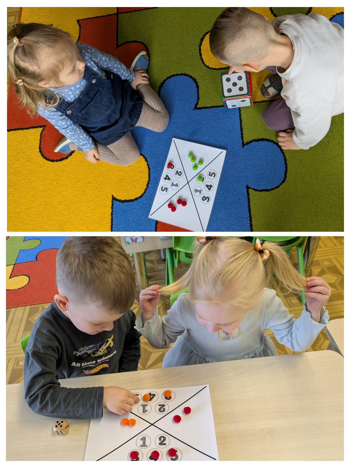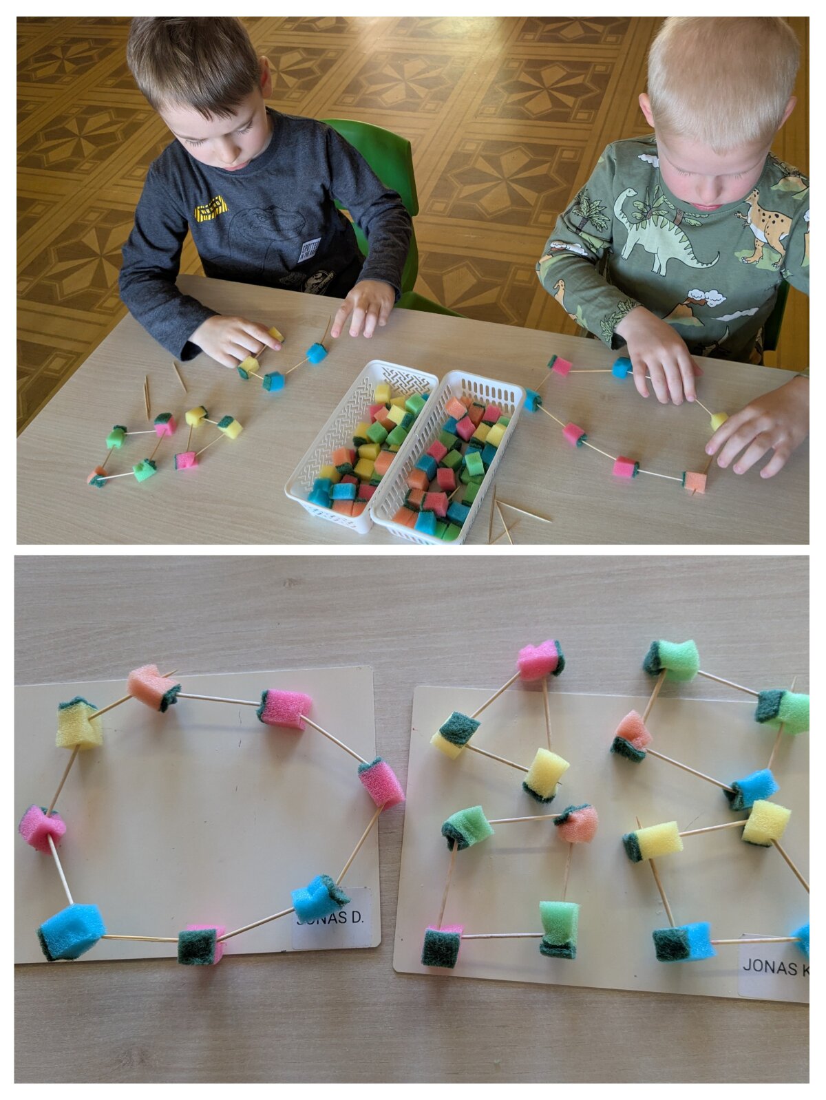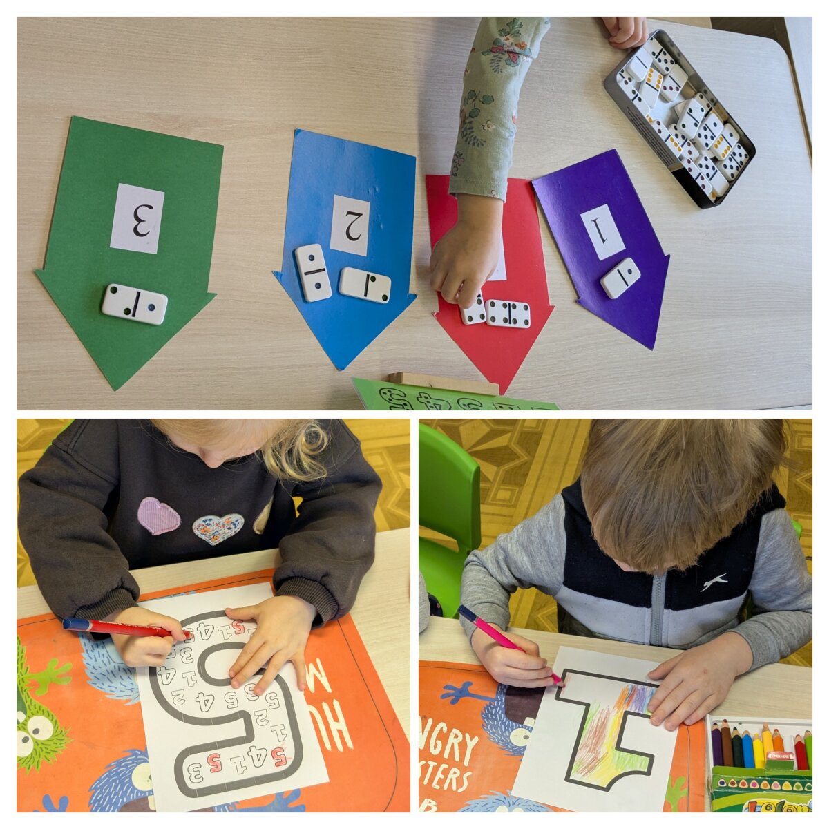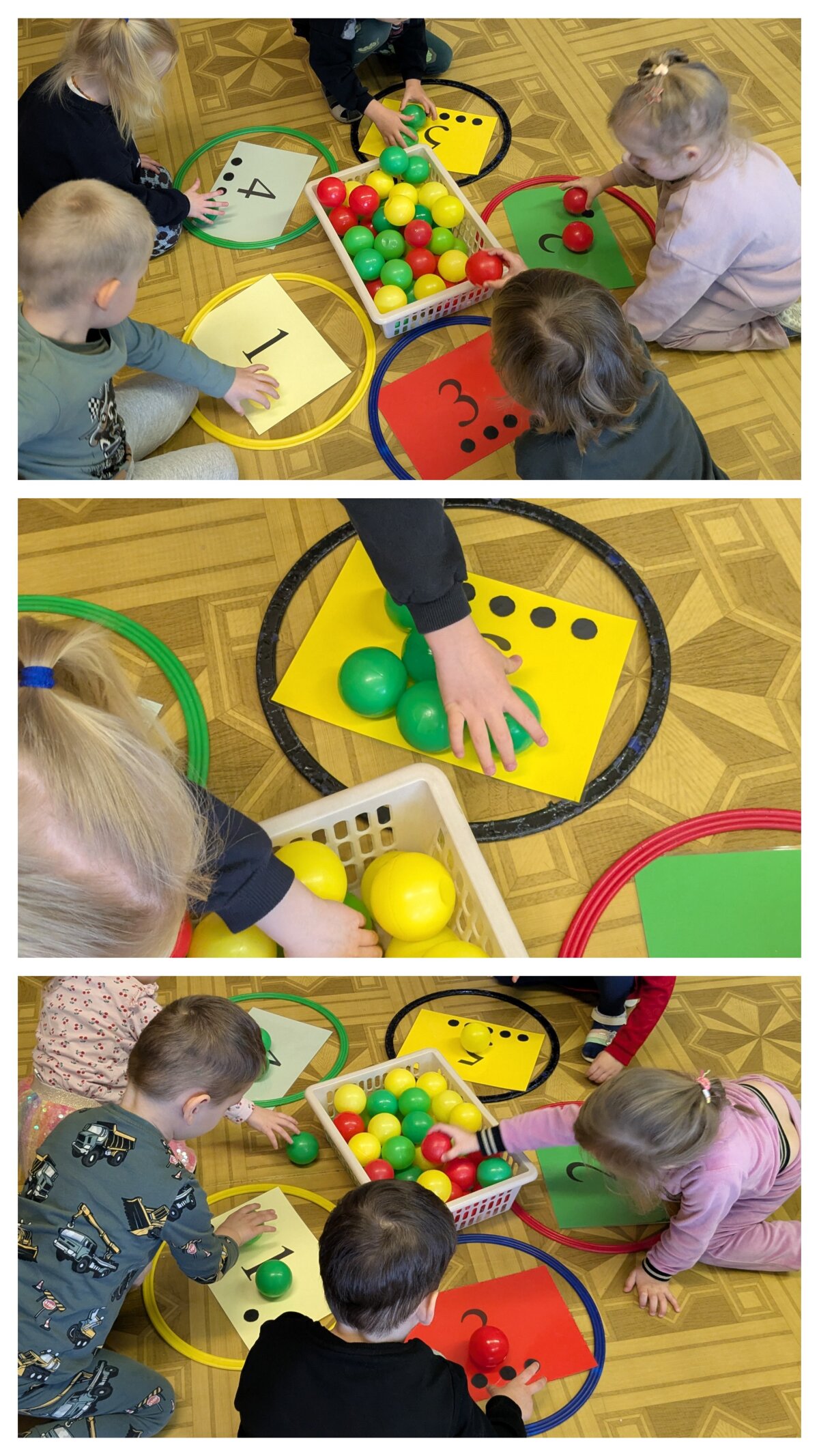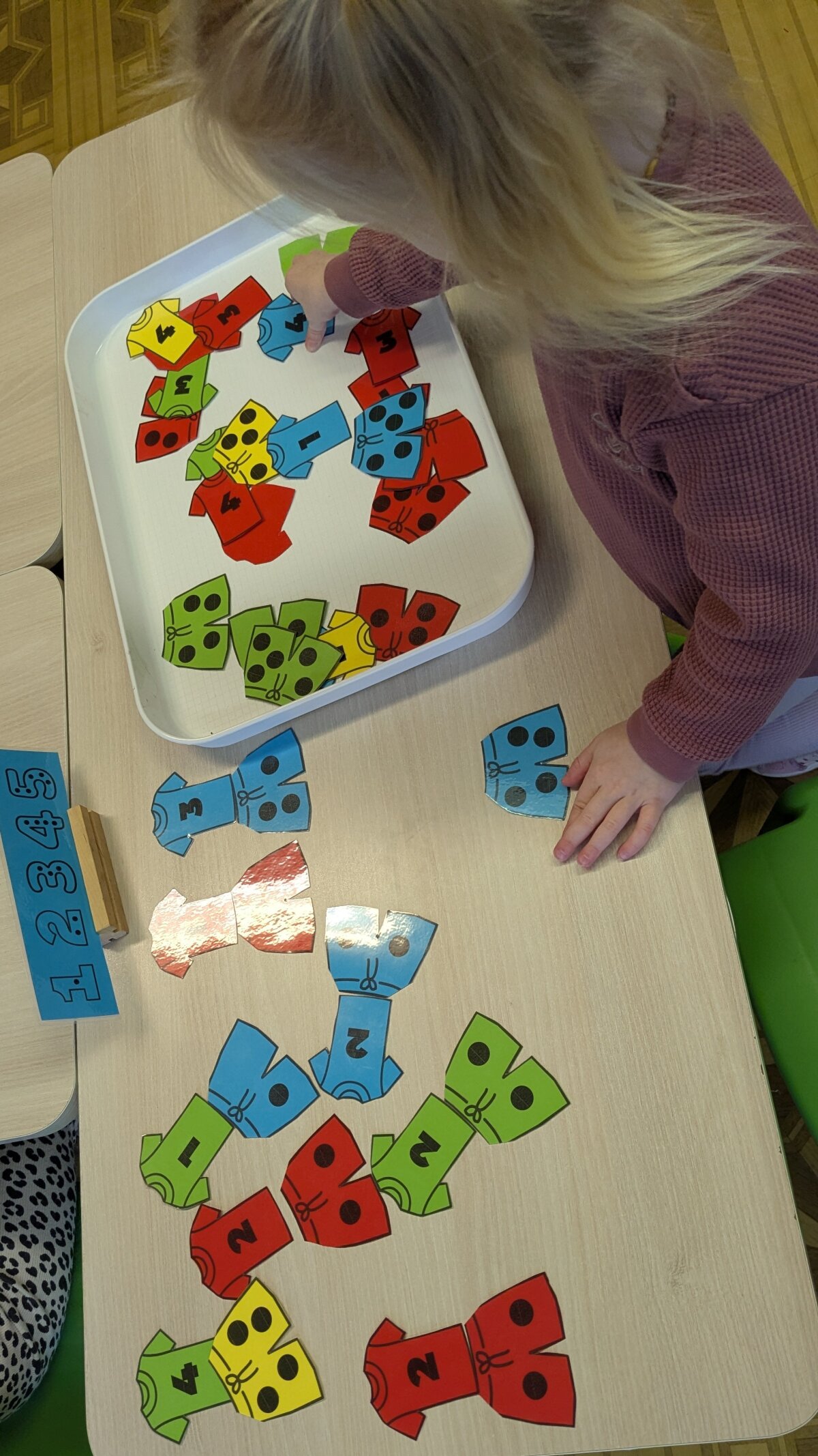 Projekto metu ugdymas buvo organizuojamas per žaidybinę, patirtinę ir tyrinėjimu grįstą veiklą, integruojant STEAM principus. Pirmąją savaitę vaikai susipažino su skaičiais nuo 1 iki 5: juos atpažino, siejo su kiekiu, taikė praktinėse situacijose. Skaičiavimo gebėjimai buvo lavinami per judriąsias veiklas („Kiek plojimų?“, „Skaičių mankšta“), sensorinius žaidimus („Suskaičiuokim pirštukus“, „Skaičių bokštai“), konstravimą ir problemų sprendimą. Vaikai mokėsi skaičius atpažinti įvairiose aplinkose, juos lyginti, grupuoti ir taikyti kasdienėje veikloje. Didelis dėmesys skirtas skaitmeninio sumanumo ugdymui – vaikai mokėsi saugiai ir atsakingai naudotis planšetiniais kompiuteriais, žaidė mokomuosius edukacinius žaidimus „Wordwall“, „Kahoot!“ ir „Wayground“ platformose. Šios veiklos skatino loginį mąstymą, dėmesio koncentraciją, problemų sprendimo įgūdžius bei gebėjimą susieti skaičių su kiekiu. Antrąją savaitę vaikai gilino žinias apie geometrines figūras – kvadratą, trikampį ir skritulį. Jie mokėsi jas atpažinti aplinkoje, lyginti, įvardyti jų požymius bei taikyti kūrybinėse ir praktinėse veiklose. Konstrukcinėse veiklose („Pastatyk figūrą!“) vaikai eksperimentavo su įvairiomis medžiagomis, kūrė figūras, lygino jų dydžius, ugdė erdvinį suvokimą ir inžinerinius gebėjimus. Kūrybinėse veiklose („Gražiausias skaičiukas“, „Figūrų nuotykiai“) vaikai dekoravo skaičius ir figūras, kūrė pasakojimus, taip stiprindami kūrybiškumą ir kalbinę raišką. Loginis mąstymas ir bendradarbiavimo gebėjimai buvo ugdomi žaidžiant porinius žaidimus („Autobusas“, „Kas pirmas?“, „Du krokodilai“), kuriuose vaikai mokėsi laikytis taisyklių, skaičiuoti, lyginti rezultatus ir siekti tikslo. Sensorinės ir pažintinės veiklos („Pasislėpusios figūros“, „Mašinėlių kelias“, „Skaičiukų detektyvai“) padėjo stiprinti smulkiąją motoriką, dėmesį bei skaičių ir formų pažinimą.2026 m. kovo 26 d. grupėje veiklą vedė logopedė–specialioji pedagogė Viktorija Balčiūnė. Užsiėmimo metu buvo lavinami vaikų kalbiniai gebėjimai, dėmesys ir suvokimas, veiklos integruotos su projekto tematika, taip užtikrinant visuminį ugdymą. Į projektą aktyviai įsitraukė ir ugdytinių tėvai, kurie kartu su vaikais namuose dėliojo skaičiukus ir geometrines figūras, fiksavo veiklas nuotraukose, taip stiprindami ugdymo tęstinumą bei bendradarbiavimą.