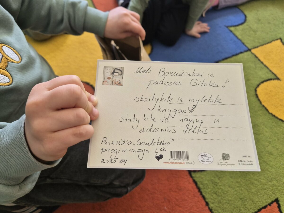 Apsikeitę dovanomis – rankų darbo knygų skirtukais – baigėme projektą. Džiaugiamės, kad šis projektas padėjo užmegzti gražius „knygų tiltus“ tarp skirtingo amžiaus vaikų. Nuoširdžiai dėkojame visiems dalyviams už bendrystę, kūrybiškumą ir užsimezgusią draugystę, kuri, tikime, tęsis ir ateityje.