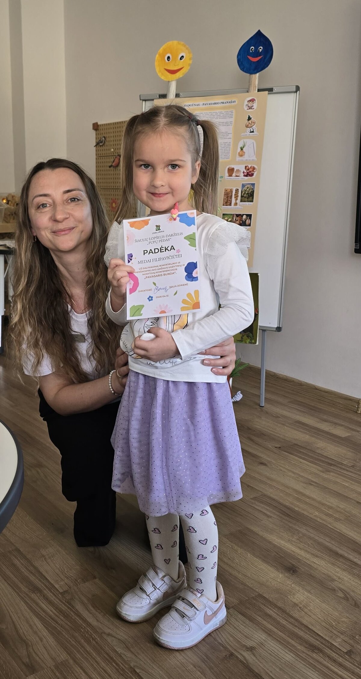 2026 m. balandžio 15 d. Šiaulių lopšelio-darželio „Eglutė“ grupės „Kleviukai“ vaikai Benas, Meda ir Elanas dalyvavo ikimokyklinio ir priešmokyklinio amžiaus vaikų konferencijoje „Pavasaris bunda“, vykusioje Šiaulių lopšelyje-darželyje „Pupų pėdas“. Konferencijos metu buvo siekiama plėtoti vaikų pažintinę, komunikavimo ir socialinę kompetencijas, skatinti domėjimąsi gamta, aplinkosauga bei patirtiniu ugdymu. Kartu su vaikais aktyviai įsitraukėme į įvairias veiklas: stebėjome kitų dalyvių pristatymus, kūrybiškai tyrinėjome pavasario požymius, klausėmės įdomių pranešimų ir dalijomės savo atradimais. Vaikai turėjo galimybę ne tik stebėti, bet ir patys patirti, išbandyti, klausti bei atrasti naujus dalykus. Didžiuojamės pristatę savo veiklą „Pavasaris bunda su paukščiais“. Vaikai pasakojo apie sugrįžtančius paukščius, aptarė jų gyvenimo ypatumus ir kūrybiškai perteikė savo žinias. Pristatymo metu jie drąsiai reiškė savo mintis, bendradarbiavo tarpusavyje bei dalijosi patirtimi su kitais dalyviais. Ši veikla skatino vaikų smalsumą, pažinimo džiaugsmą, kūrybiškumą ir komunikavimo įgūdžius. Dalyvauti konferencijoje vaikus paruošė vyresnioji ikimokyklinio ugdymo mokytoja Sandra Martinkutė-Grigaitienė ir socialinė pedagogė Viktorija Lukoševičienė. Dalyvavimas konferencijoje sustiprino vaikų pasitikėjimą savimi, gebėjimą kalbėti prieš auditoriją bei didžiavimąsi savo atliktu darbu. Ši patirtis suteikė daug teigiamų emocijų, naujų žinių ir įkvėpimo tolimesnei veiklai. Džiaugiamės galėdami augti, kurti ir mokytis kartu!