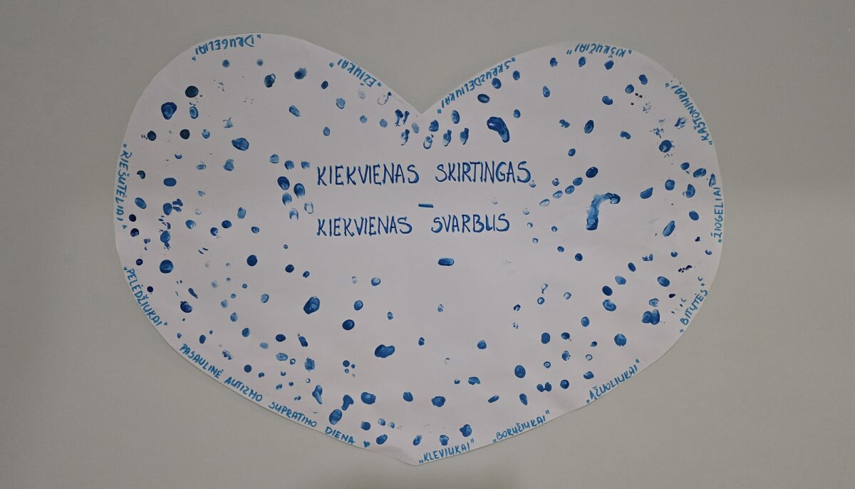 Šiaulių lopšelis-darželis „Eglutė“, minėdamas Pasaulinę autizmo supratimo dieną, organizavo iniciatyvą „Kiekvienas skirtingas – kiekvienas svarbus“, kurią įgyvendino Šiaulių lopšelis-darželis „Eglutė“ vaikai ir ikimokyklinio ugdymo vyresnioji mokytoja Sandra Martinkutė-Grigaitienė ir socialinė pedagogė Viktorija Lukoševičienė. Šios iniciatyvos tikslas – ugdyti vaikų ir bendruomenės supratimą apie autizmo spektro sutrikimą, skatinti toleranciją, empatiją bei pagarbą kiekvieno žmogaus individualumui. Iniciatyvos metu siekiama atkreipti dėmesį į tai, kad visi žmonės yra skirtingi, tačiau kiekvienas yra vienodai vertingas ir svarbus. Veiklos metu vaikai darė bendrą meninį darbą – didelę širdį, dekoruotą mėlynais pirštų antspaudais. Širdis simbolizuos bendruomeniškumą, rūpestį ir vienybę, o mėlyna spalva – palaikymą autizmo spektro bendruomenei. Kiekvieno vaiko piršto antspaudas taps savitu ir unikaliu indėliu į bendrą kūrinį, atspindinčiu individualumą ir išskirtinumą. Įgyvendinant iniciatyvą bus kuriama saugi, draugiška ir įtrauki aplinka, kurioje kiekvienas vaikas jausis priimtas ir vertinamas. Tikimasi, kad ši veikla prisidės prie atviresnės, supratingesnės ir empatiškesnės bendruomenės formavimo.