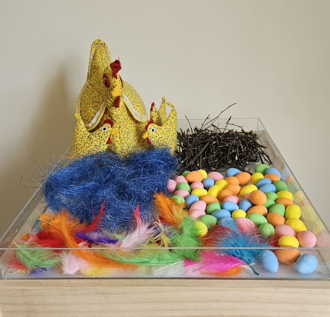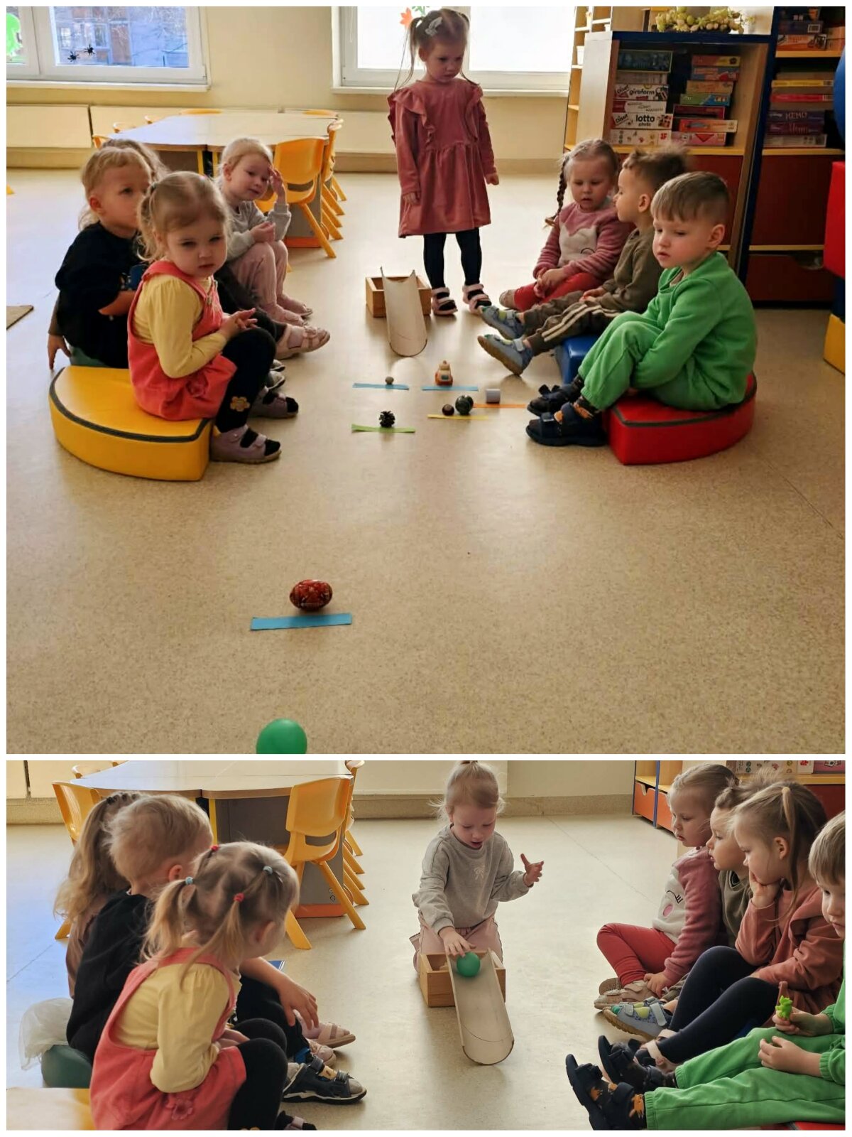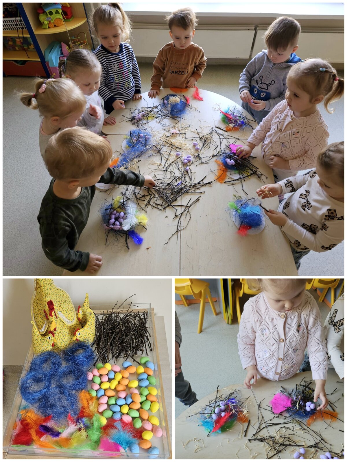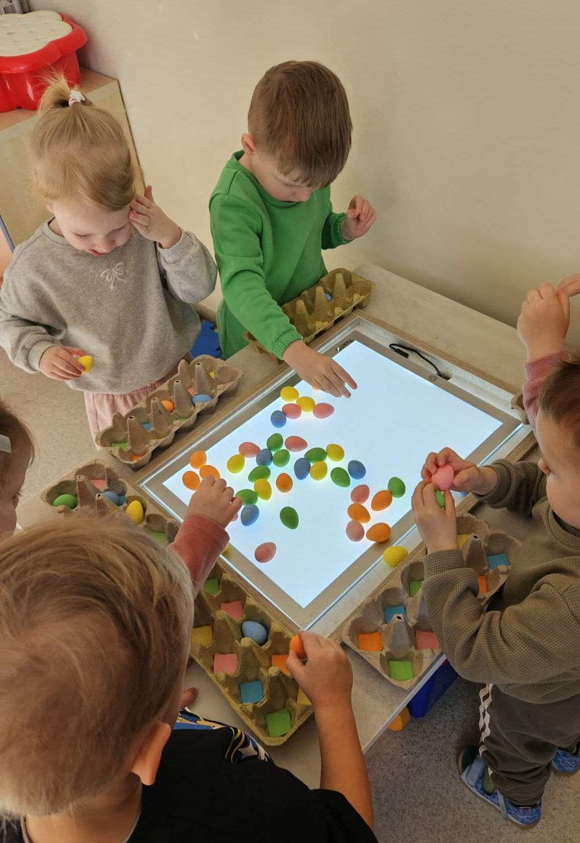 Vaikai su dideliu susidomėjimu tyrinėjo kiaušinius: bandė, eksperimentavo, stebėjo ir dalijosi savo atradimais. Atliekant bandymą su vandeniu ir druska, mažieji patys bėrė druską, maišė ir su nuostaba stebėjo, kaip kiaušinis tai skęsta, tai ima plūduriuoti. Eksperimento su actu metu vaikai su smalsumu lietė kiaušinį be lukšto ir nustebę atrado, kad jis tapo minkštas. Tyrinėdami kiaušinį vaikai jį lukšteno, apžiūrėjo iš vidaus, lygino spalvas, paviršius, dalijosi įspūdžiais. Kūrybiškumo ir sumanumo pareikalavo užduotis sukurti kiaušiniui lizdą – mažieji rinkosi medžiagas, dėliojo, bandė ir džiaugėsi savo rezultatais. Judriose ir pažintinėse veiklose vaikai rideno kiaušinius ir kitus daiktus, smalsiai stebėjo jų judėjimą, lygino, kuris nurieda toliau. Taip pat rūšiavo spalvotus kiaušinius, dėliojo paprastas sekas, lavino spalvų pažinimą ir loginį mąstymą. Kūrybinėse veiklose vaikai turėjo galimybę išbandyti įvairias technikas. Dažydami kiaušinius pipetėmis, jie su džiaugsmu stebėjo, kaip spalvos susilieja ir kuria netikėtus raštus. Mažieji išbandė netradicinę techniką – margučių atspaudus naudojant burbulinę plėvelę. Vaikai tepė dažus, prispaudė plėvelę prie popieriaus ir smalsiai stebėjo, kaip ant popieriaus atsiranda spalvoti, taškuoti raštai. Kiekvienas darbas tapo savitas ir ypatingas.