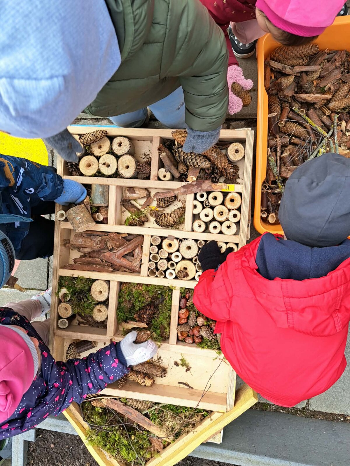 Vabaliukų viešbučio įrengimas“ – tai integruota patyriminė STEAM veikla, skirta visų darželio amžiaus grupių vaikams. Veiklos metu vaikai, tyrinėdami, kurdami ir bendradarbiaudami, susipažįsta su gamtos pasauliu bei įgyja praktinių, matematinių ir inžinerinių įgūdžių.
