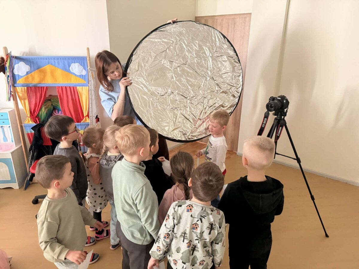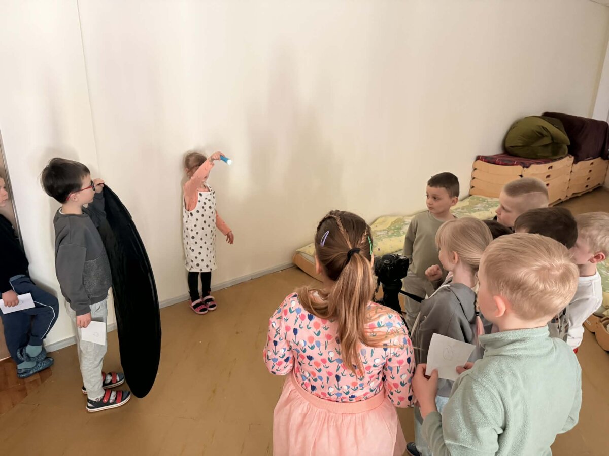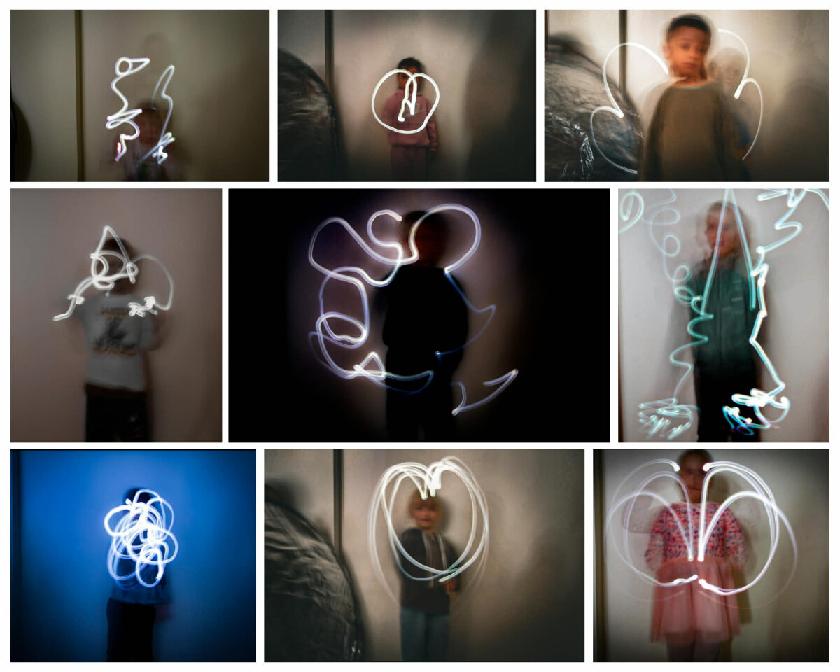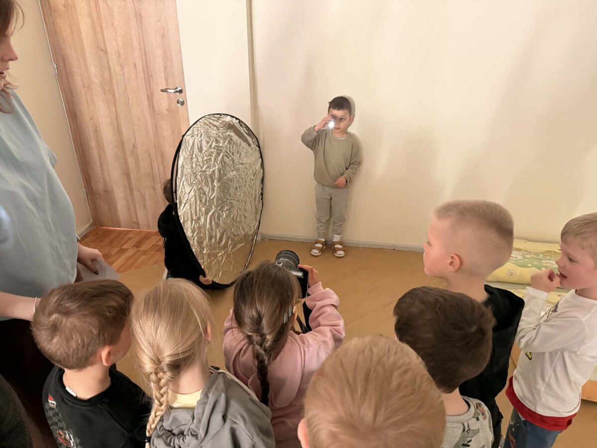 Mokytoja supažindino su naudojama technologija – fotoaparatu, kuris galėjo ilgai fiksuoti vaizdą, ir paaiškino, kad judant su šviesos šaltiniu tamsoje buvo galima sukurti „šviesos piešinį“. Vaikai patys įsitraukė į aplinkos paruošimą: pritemdė aplinką, kartu su mokytoja saugiai sustatė įranga, pasiruošė žibintuvėlius. Eksperimento metu vaikai kūrė šviesos piešinius ore. Piešė įvairias figūras, širdeles, paukštelius, drugelius. Vaikai atsakingai skaičiavo sekundes per kurias turėjo nupiešti savo planuotą piešinį.