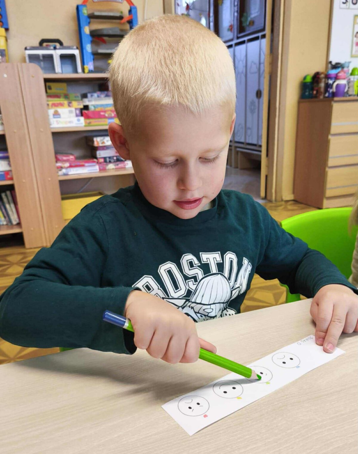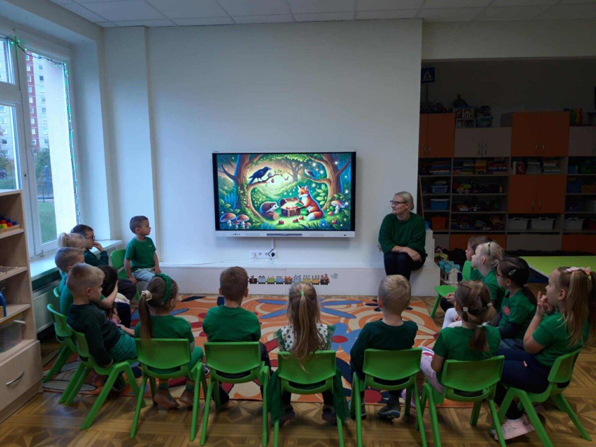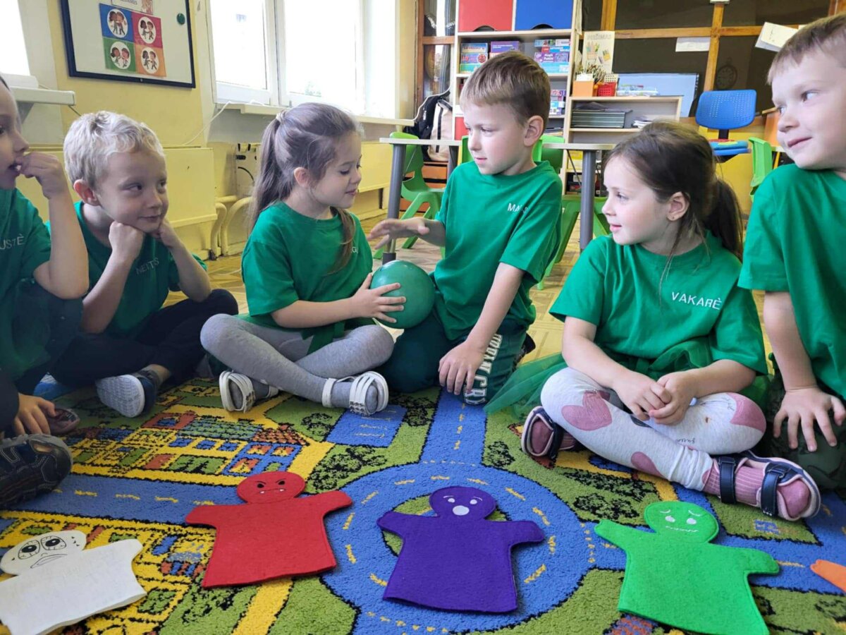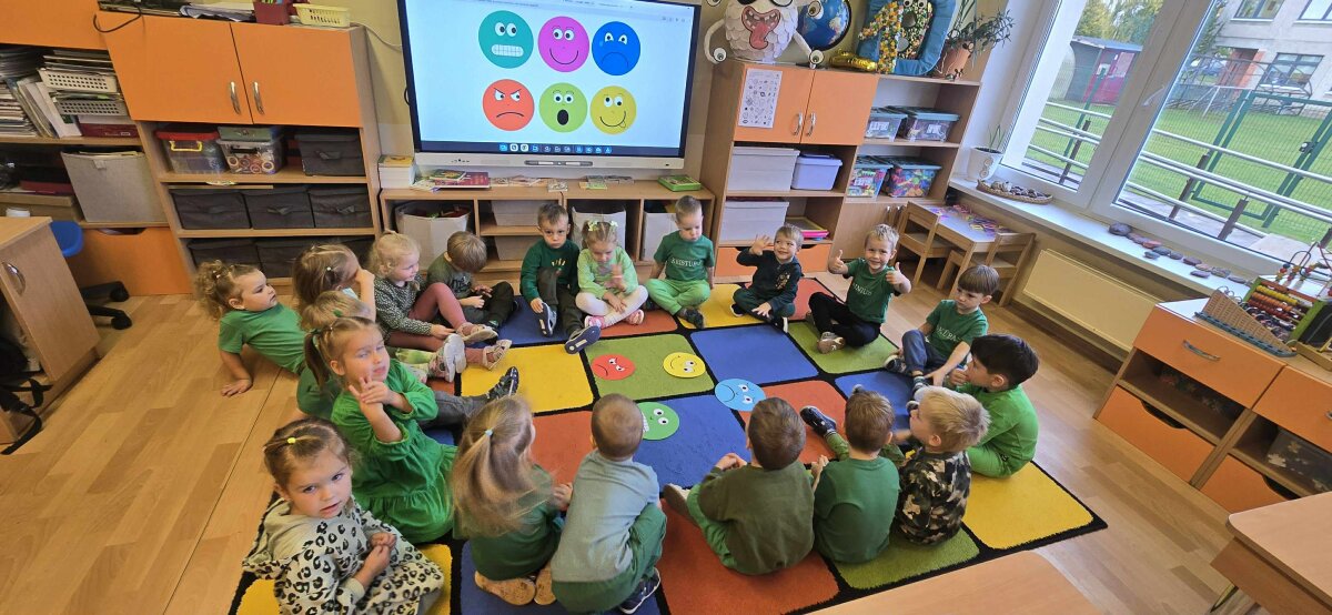 Darbuotojai ir vaikai pasipuošė žalios spalvos drabužiais, vaišinosi šilta arbata ir dalyvavo pokalbyje su visuomenės sveikatos specialiste Agne Karčmariniene. Diskusijos metu buvo kalbama apie emocijų pažinimo, savęs priėmimo ir rūpinimosi vieni kitais svarbą. Kartu žaidė įvairius žaidimus, „gaudė emocijas“, mokėsi jas atpažinti ir įvardyti, aptarė apie tai, kaip kiekvienas jaučiasi šiandien.Vaikai dalijosi savo jausmais, šypsojosi ir sužinojo, kad visos emocijos yra svarbios ir reikalingos.