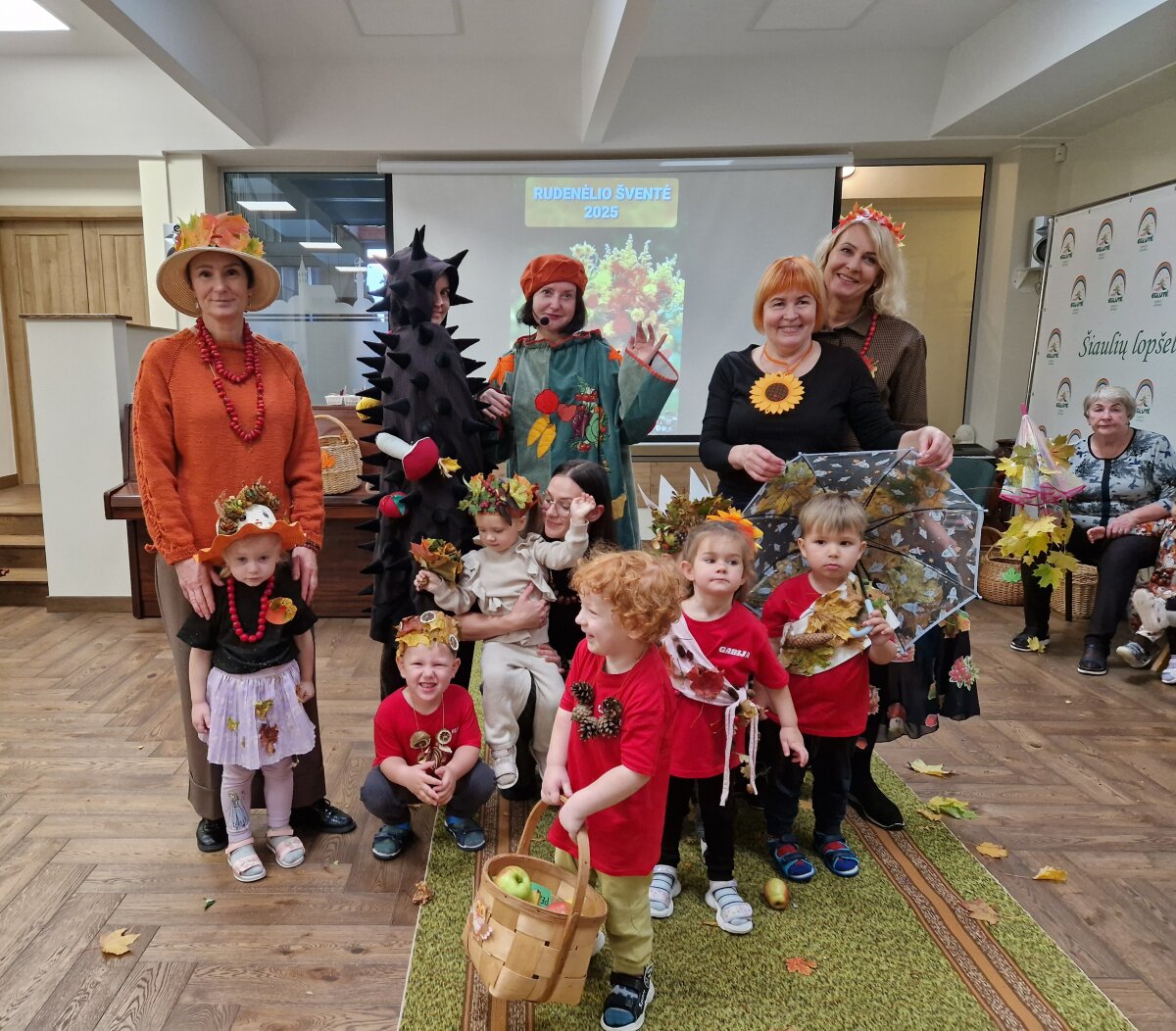 Į šventę atkeliavo personažai – Rudenėlis ir Ežiukas, nešini rudens gėrybių pintinėlėmis. Vaikai kartu su jais žaidė, šoko ir dainavo daineles: „Rudenėlis“, „Ežiuko dainelė“, „Voverytės grybai“.