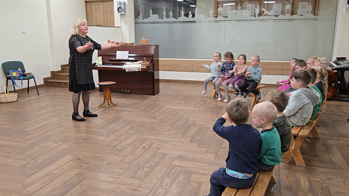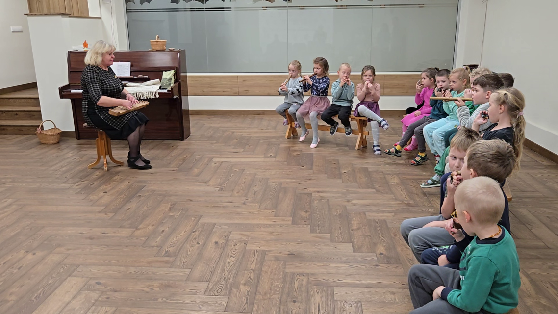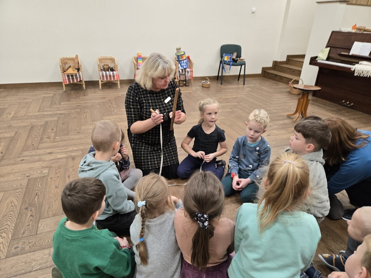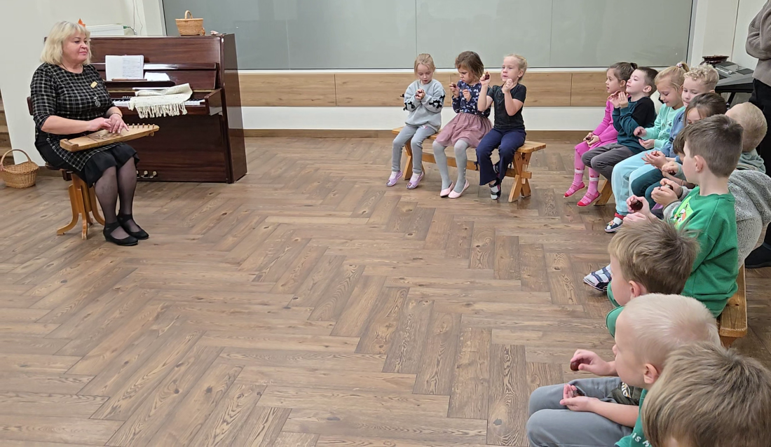 Veiklos pabaigoje susipažino su mišrios sandaros instrumentais – kanklėmis ir būgneliais. Vaikučiai gebėjo pasakyti, kad kanklės pagamintos iš medžio, o stygos - iš metalo.