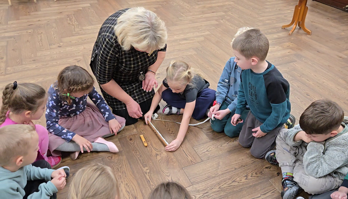 Vaikams buvo duota užduotis: surasti buities apyvokos daiktus, pagamintus iš tokios pat medžiagos, žaliavos kaip ir muzikos instrumentai.