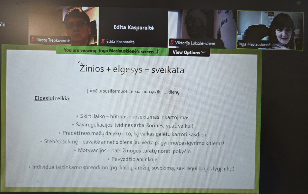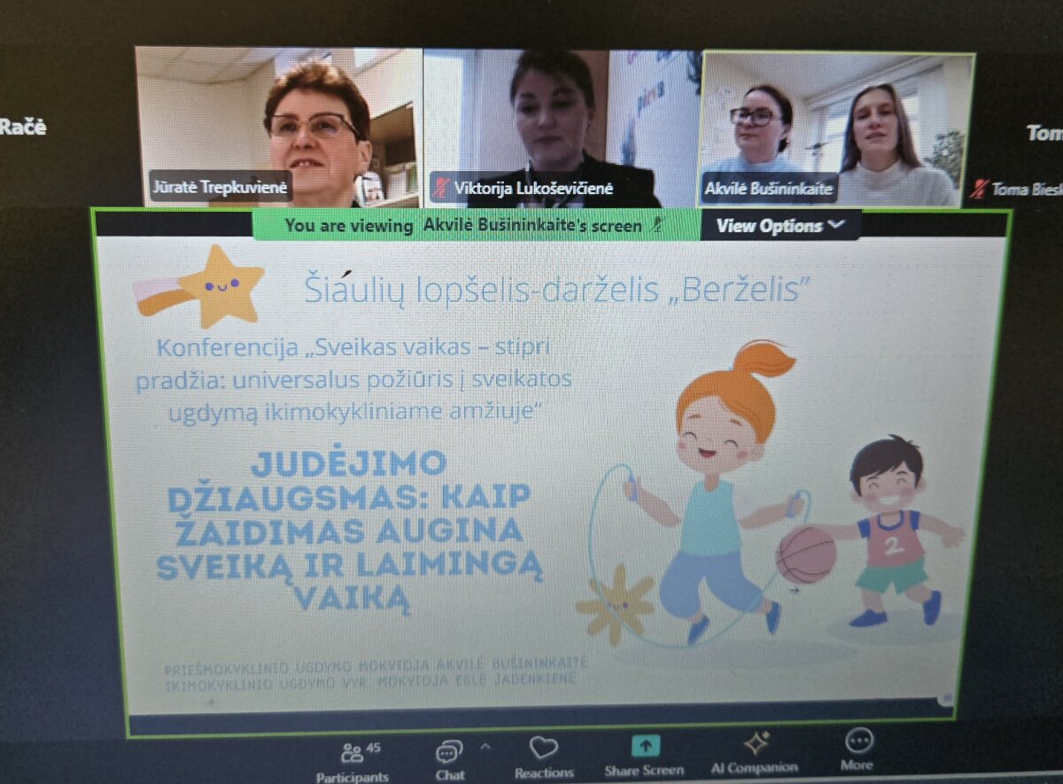 Lapkričio 3 d. „Zoom“ platformoje Šiaulių lopšelyje-darželyje „Eglutė“ vyko respublikinė metodinė-praktinė konferencija „Sveikas vaikas – stipri pradžia: universalus požiūris į sveikatos ugdymą ikimokykliniame amžiuje“.