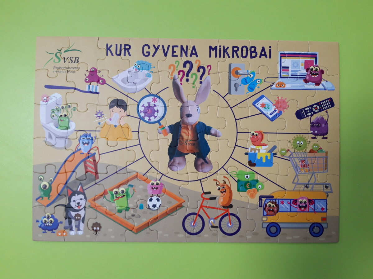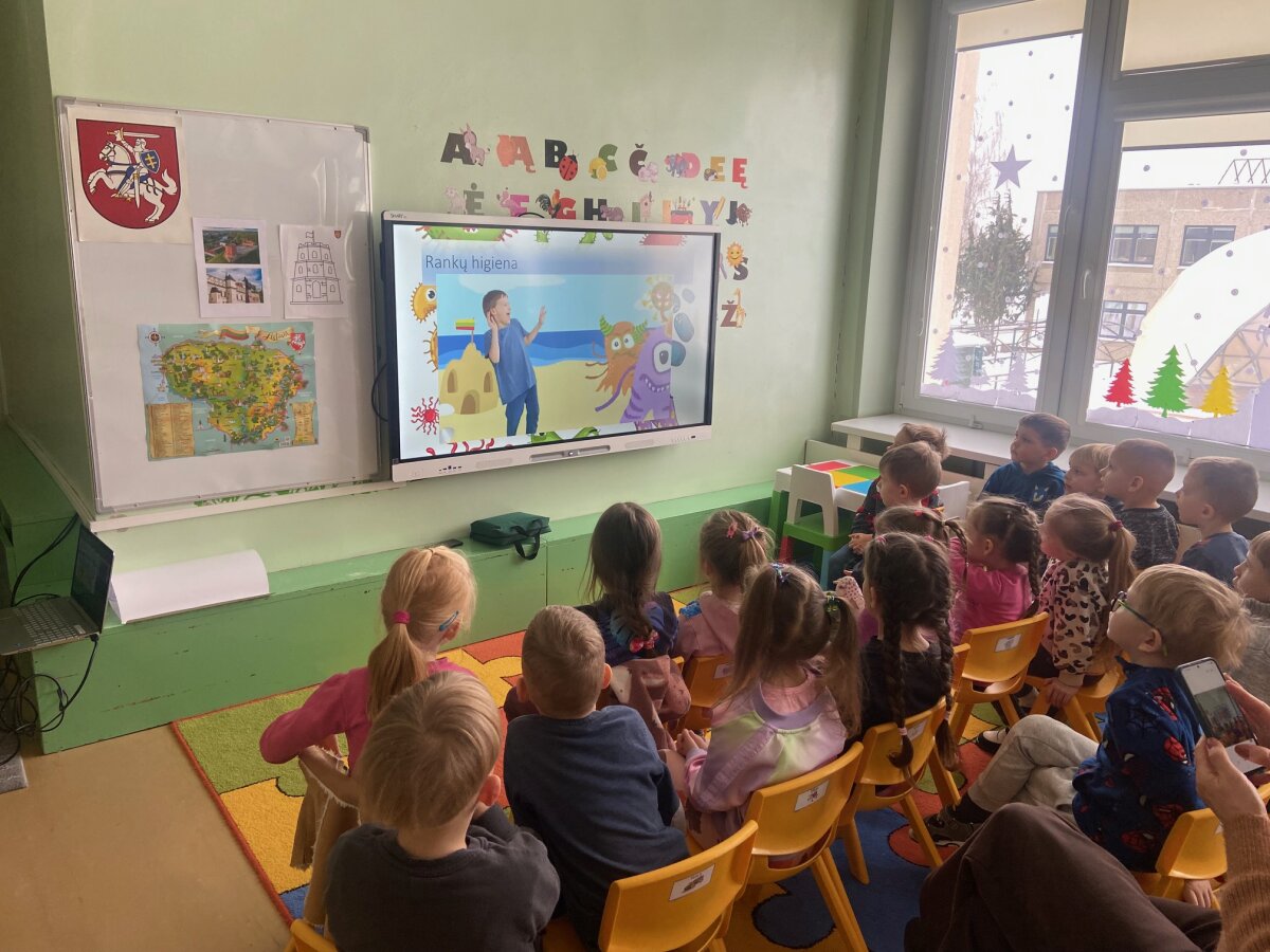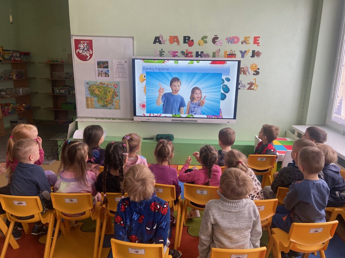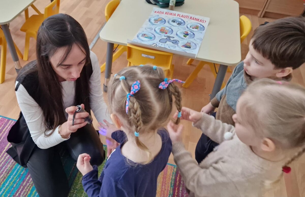 “Eglutės” darželio ugdytiniai: „Žiogeliai“, „Bitutės“, „Kaštoniukai“ ir „Ežiukai“ su visuomenės sveikatos specialiste artimiau susipažino su mikrobų pasauliu. Vaikai sužinojo kas yra mikrobai, kokios jų rūšys, kokie pavadinimai, į ką jie panašūs ir kur jie gyvena. Mikroorganizmų maišelio ir UV lempos pagalba pamatėme kaip mikrobai plinta, tada visi kartu pakartojome taisyklingų rankų plovimo žingsnelius ir ėjome plautis rankyčių.