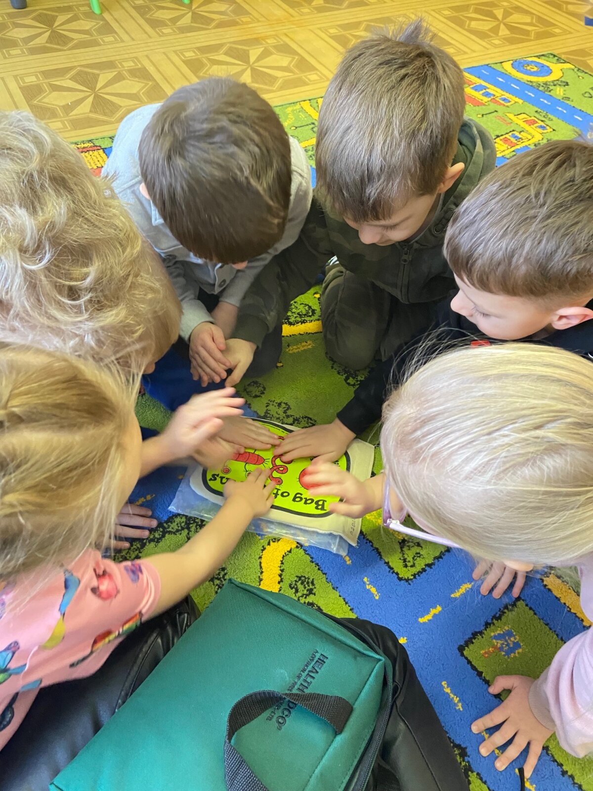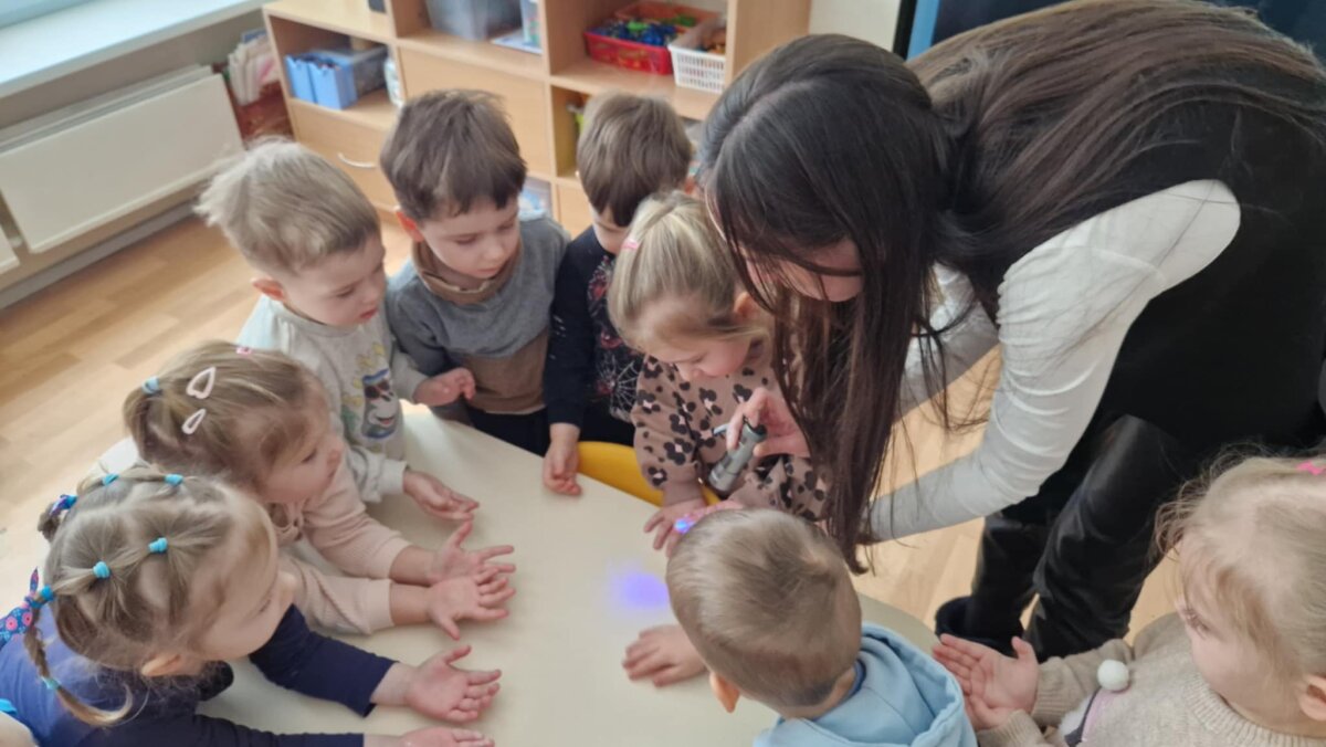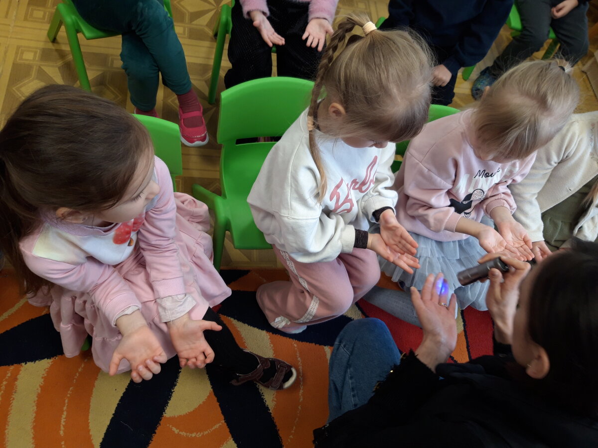 “Eglutės” darželio ugdytiniai: „Žiogeliai“, „Bitutės“, „Kaštoniukai“ ir „Ežiukai“ su visuomenės sveikatos specialiste artimiau susipažino su mikrobų pasauliu. Vaikai sužinojo kas yra mikrobai, kokios jų rūšys, kokie pavadinimai, į ką jie panašūs ir kur jie gyvena. Mikroorganizmų maišelio ir UV lempos pagalba pamatėme kaip mikrobai plinta, tada visi kartu pakartojome taisyklingų rankų plovimo žingsnelius ir ėjome plautis rankyčių.