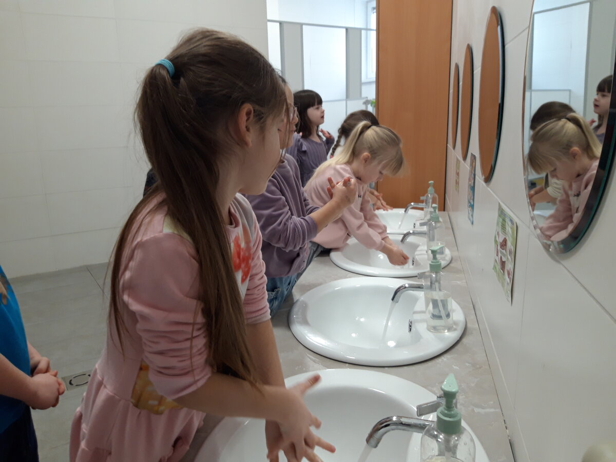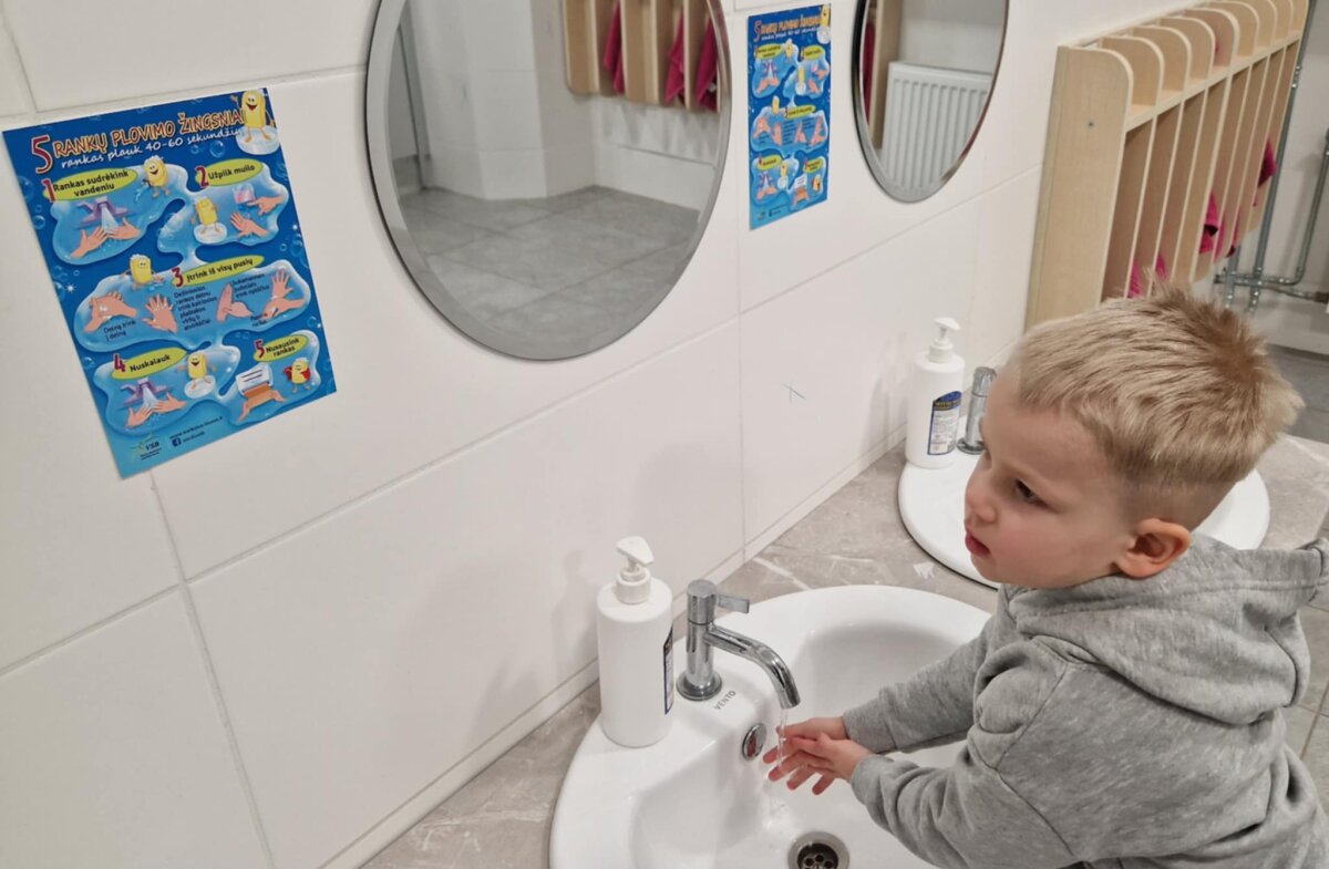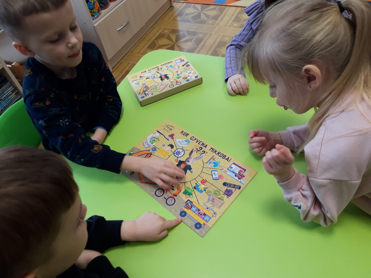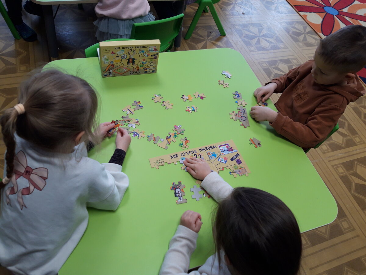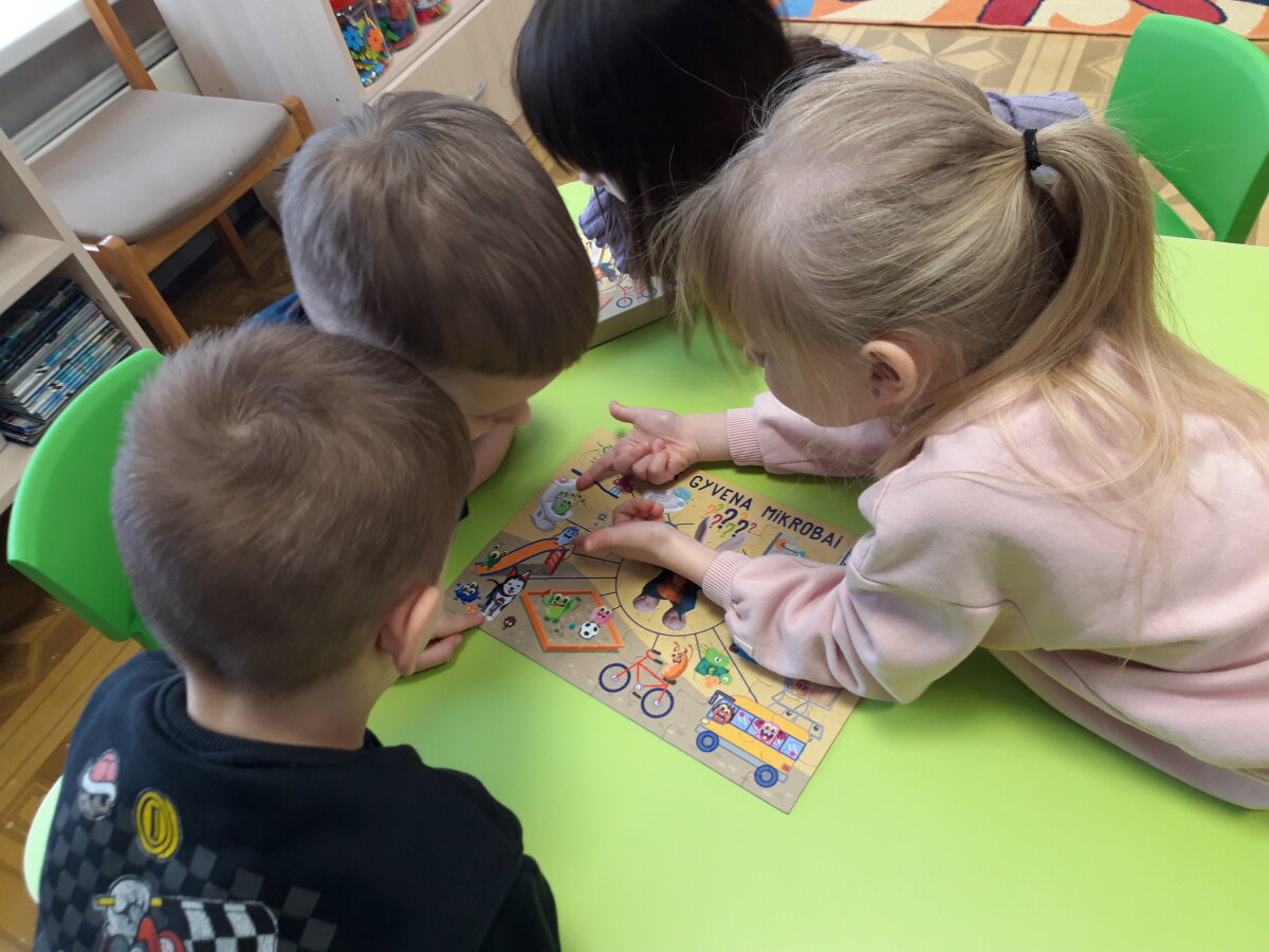 Pamokėlės tikslas – supažindinti vaikus su mikroorganizmais, ugdyti jų higienos įgūdžius, atkreipti dėmesį į rankų higienos svarbą. Vaikai pamatė, kad šiltas vanduo su muilu ir taisyklingi rankų plovimo judesiai gali pašalinti daugumą bakterijų ir sumažinti sergamumą. O žinioms užtvirtinti vaikai dėliojo dėlionę ir diskutavo apie tai ką naujo sužinojo.