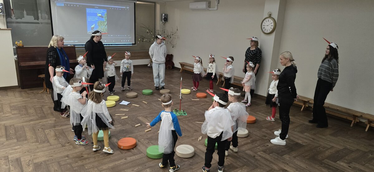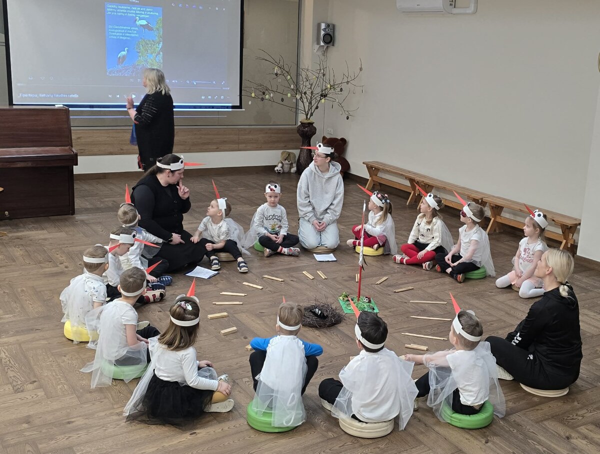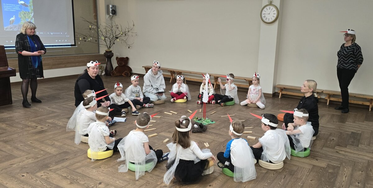 Kovo 25-ąją minima Gandrinės – gandro sugrįžimo iš tolimos kelionės šventė. Ikimokyklinio ugdymo mokytoja Sandra Martinkutė-Grigaitienė, meninio ugdymo mokytoja Vita Taučienė-Rezgienė ir fizinio ugdymo mokytoja, judesio korekcijos specialistė Lina Račė organizavo integruotą renginį, kurio metu vaikai sužinojo apie lietuvių nacionalinį paukštį gandrą, jo simboliką bei tradicijas.