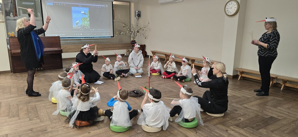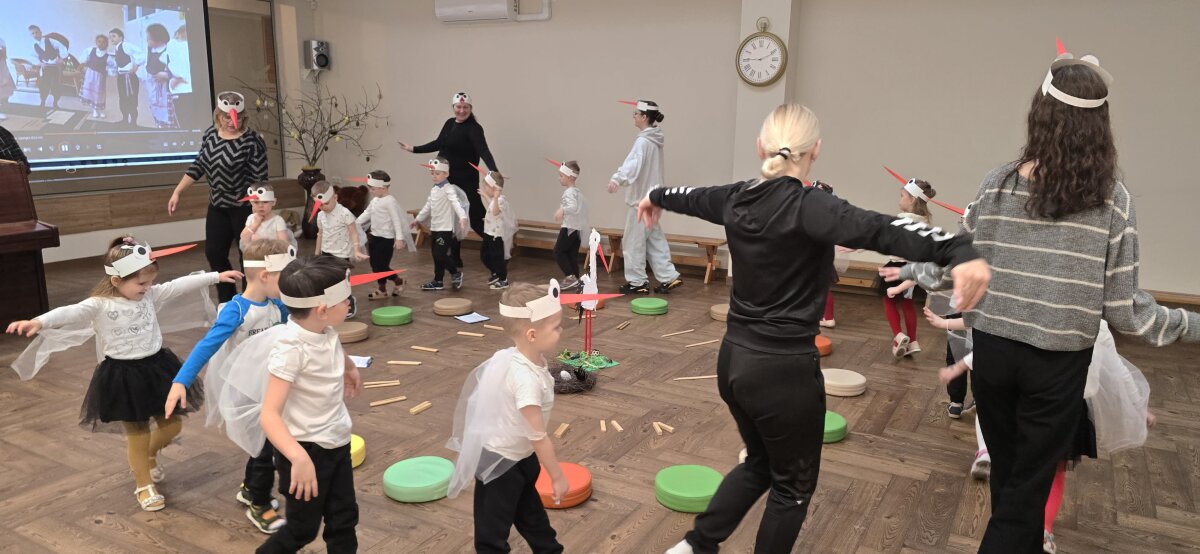 Senovėje Gandrinės buvo džiaugsmo ir linksmybių diena, apipinta įvairiais papročiais. Tikėta, kad pirmą kartą pamatytas gandras gali nulemti visus metus: jei pirmą kartą pamatai skrendantį gandrą – viskas puikiai ir sparčiai seksis, jei pamatai tupintį – viskas šiemet eisis lėčiau. Šią dieną prasideda šiltasis metų pusmetis. Mėgdžiodami gandrą ir jo kleketavimą, dalyvaudami žaidimuose bei rateliuose, vaikai lavino kalbinius gebėjimus, reakciją, greitį, ritmo pajautimą ir kūrybiškumą. Judri ir smagi veikla skatino bendravimą, saviraišką bei teigiamas emocijas. Vaikai aktyviai įsitraukė į veiklas, noriai bendradarbiavo, laikėsi susitarimų ir džiaugėsi bendrais pasiekimais. Žaidimų metu jie mokėsi klausytis, susikaupti, reaguoti į signalus bei veikti komandoje. Integruotas renginys prisidėjo prie vaikų žinių apie gamtą, lietuvių papročius ir kultūrą plėtimo, skatino aktyvų ir žaismingą mokymąsi. Vaikai sužinojo apie gandro reikšmę lietuvių tradicijose, jo sugrįžimo svarbą pavasarį bei ryšį su gamtos atbudimu. Renginyje dalyvavo Gytarių progimnazijos mokinė Paula, kuri vaikams papasakojo apie gandrų papročius ir tradicijas. Lauke vaikai rado gandro vaišes, kurios suteikė daug džiaugsmo ir netikėtumo. Ši patirtis stiprino vaikų smalsumą, kūrė šventinę nuotaiką ir paliko daug teigiamų įspūdžių.
