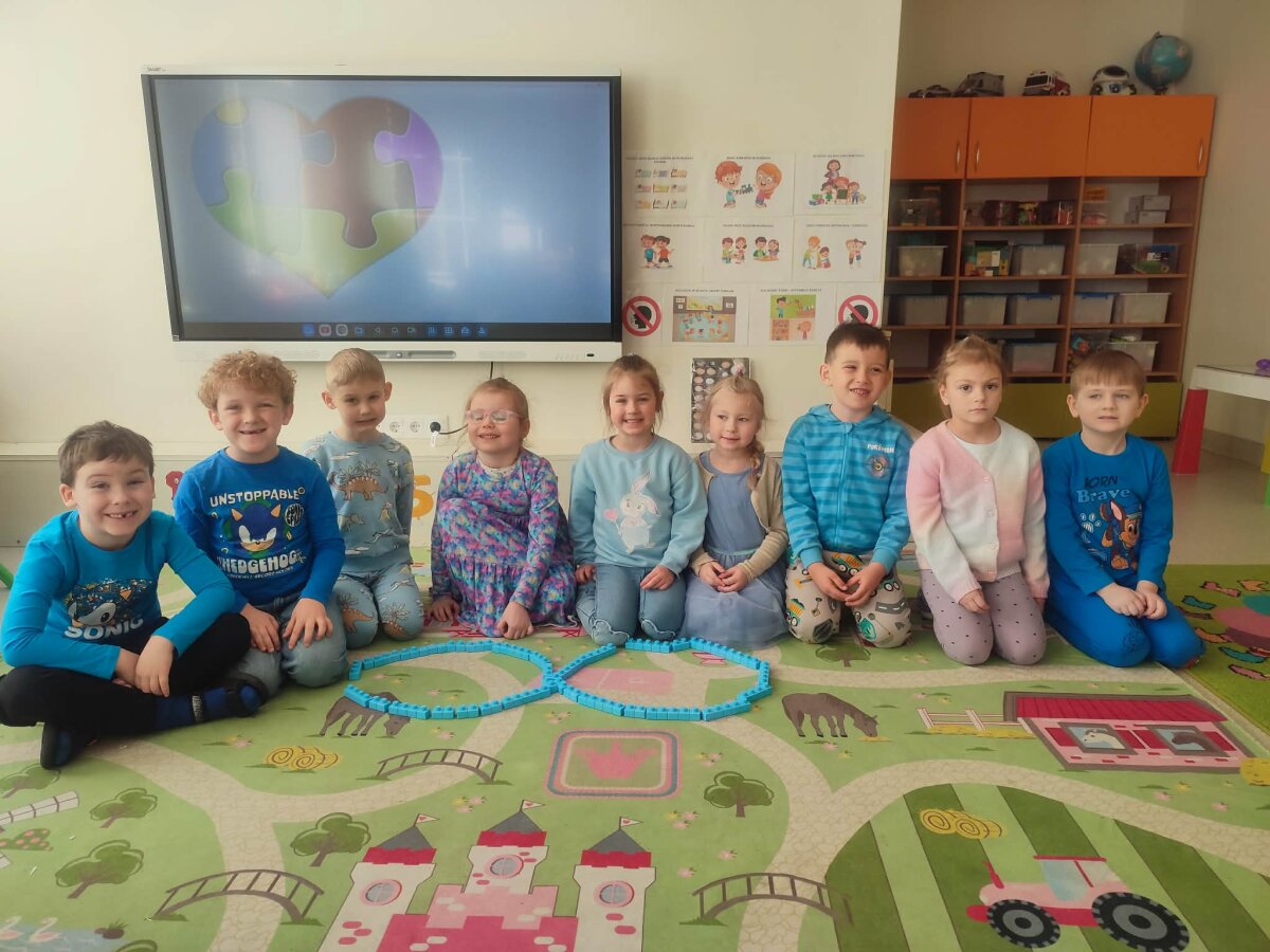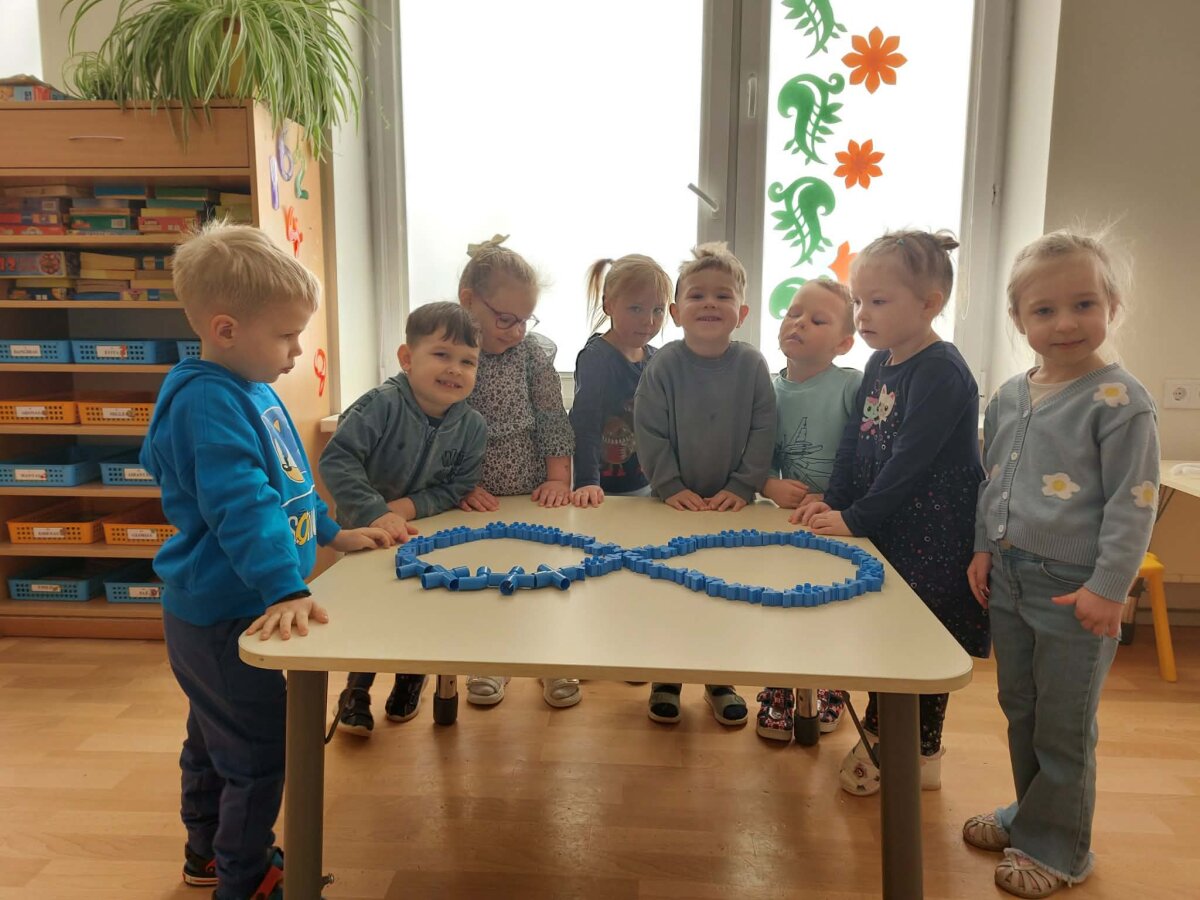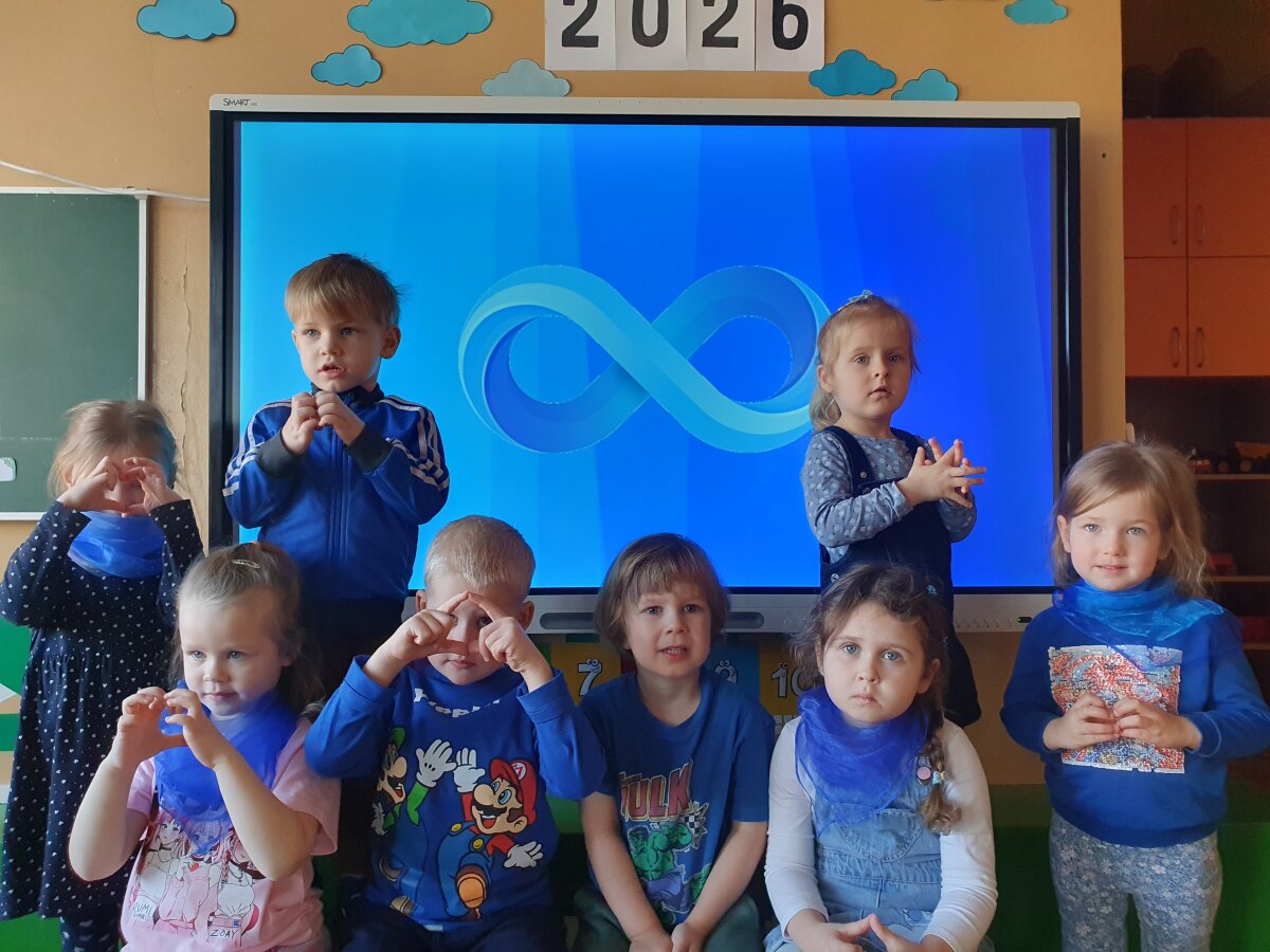 Darželyje buvo organizuojama „Mėlynoji diena“, kurios metu vaikai ir pedagogai rinkosi mėlynos spalvos drabužius, taip išreikšdami solidarumą ir palaikymą autistiškiems vaikams bei jų šeimoms. Mėlyna spalva tapo vienybės, supratimo ir draugystės simboliu. Taip pat buvo organizuota kūrybinė veikla, kurios metu buvo formuojamas begalybės ženklas. Kiekvienai grupei buvo paskirta po dalį ženklo, kurią jos dekoravo pasirinktais būdais: piešė pirštukais, kūrė aplikacijas, klijavo lipdukus ar spalvino. Sujungus visas dalis, atsirado spalvinga, vaivorykštinė begalybė, atspindinti neuroįvairovę ir kiekvieno žmogaus išskirtinumą. Begalybės ženklas primena, kad nėra dviejų vienodų žmonių, nes kiekvienas yra savitas ir turi savo stiprybes, gebėjimus bei unikalų pasaulio suvokimą.