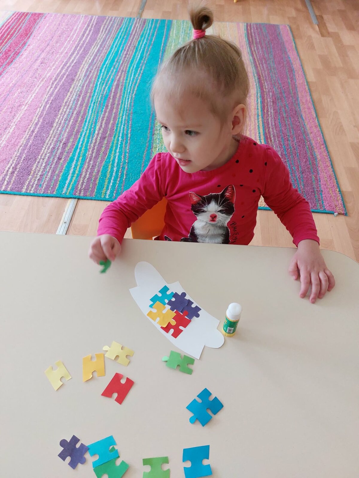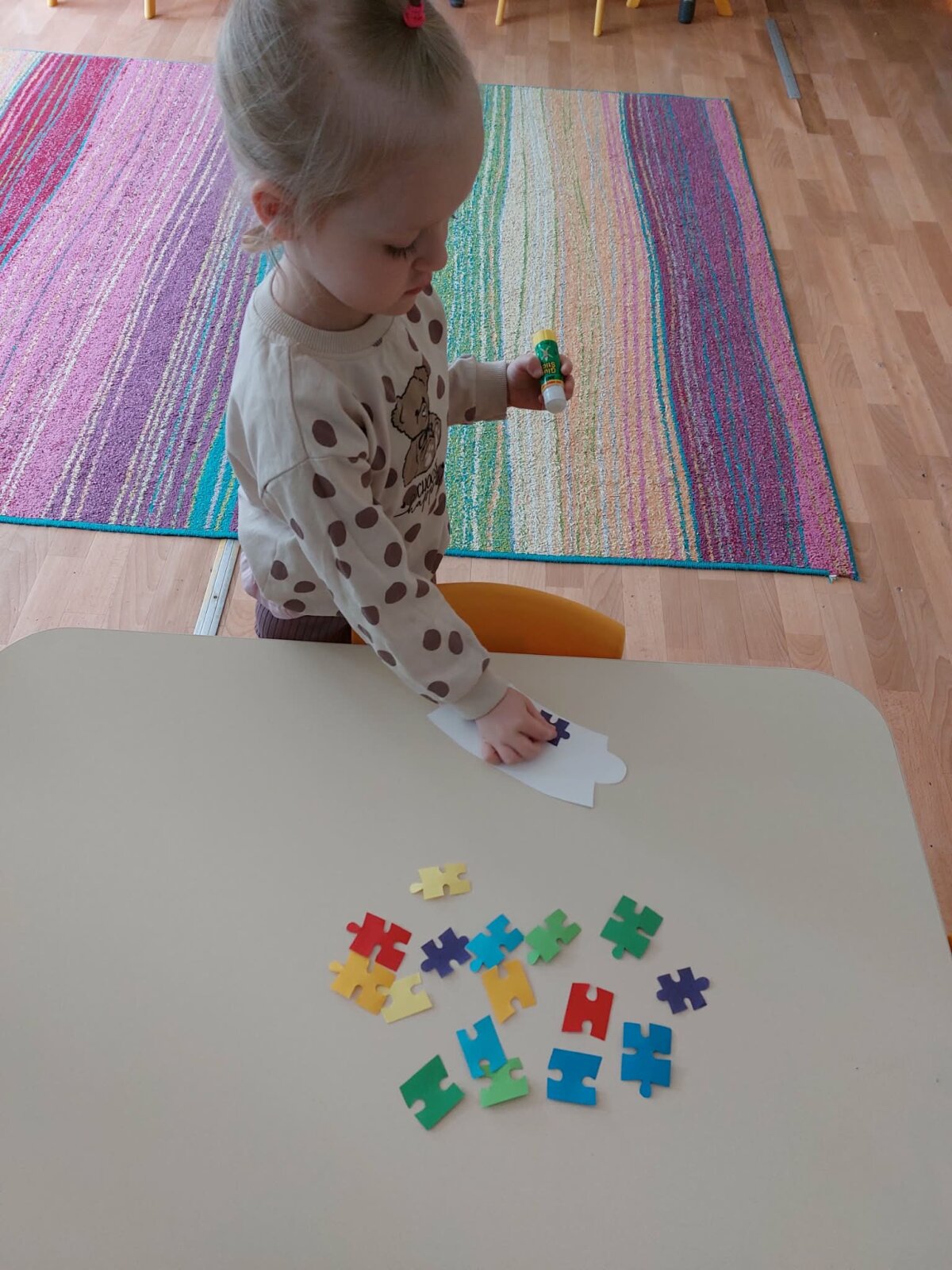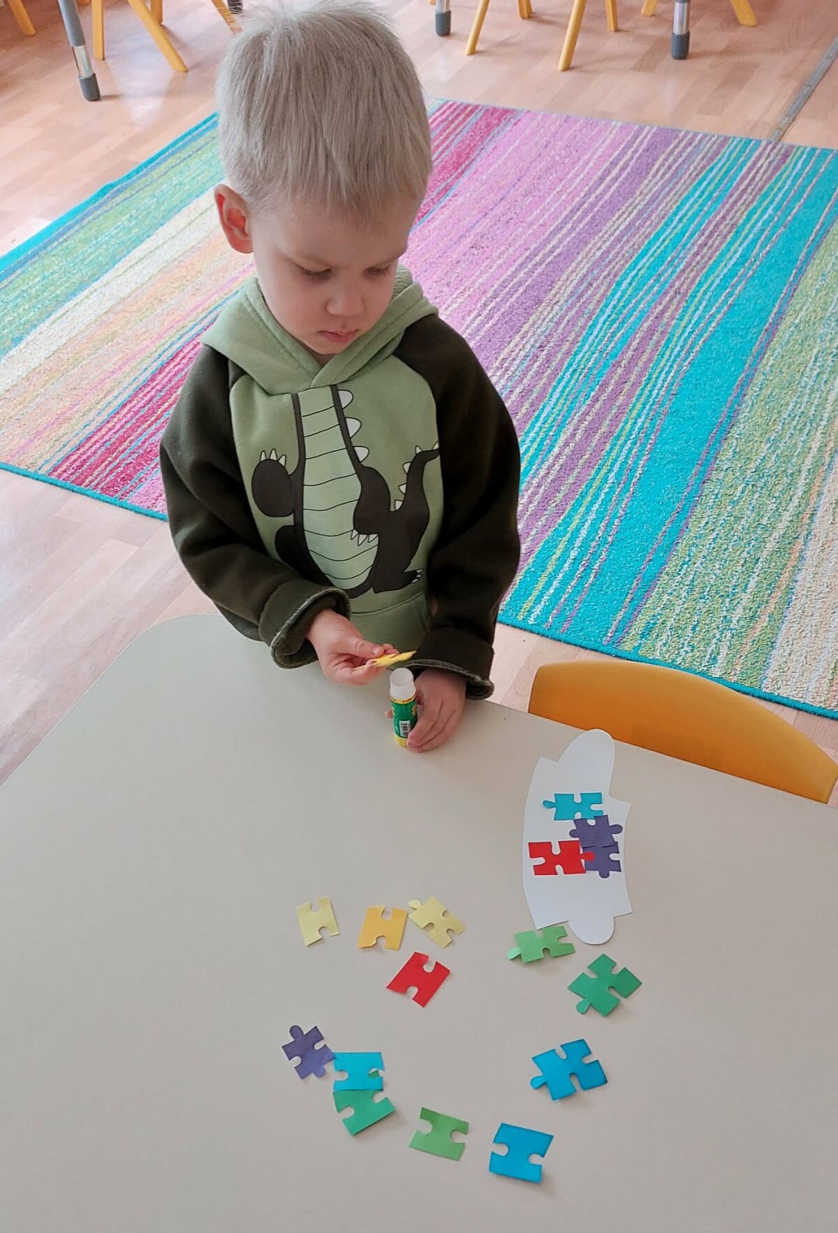 Darželyje buvo organizuojama „Mėlynoji diena“, kurios metu vaikai ir pedagogai rinkosi mėlynos spalvos drabužius, taip išreikšdami solidarumą ir palaikymą autistiškiems vaikams bei jų šeimoms. Mėlyna spalva tapo vienybės, supratimo ir draugystės simboliu. Taip pat buvo organizuota kūrybinė veikla, kurios metu buvo formuojamas begalybės ženklas. Kiekvienai grupei buvo paskirta po dalį ženklo, kurią jos dekoravo pasirinktais būdais: piešė pirštukais, kūrė aplikacijas, klijavo lipdukus ar spalvino. Sujungus visas dalis, atsirado spalvinga, vaivorykštinė begalybė, atspindinti neuroįvairovę ir kiekvieno žmogaus išskirtinumą. Begalybės ženklas primena, kad nėra dviejų vienodų žmonių, nes kiekvienas yra savitas ir turi savo stiprybes, gebėjimus bei unikalų pasaulio suvokimą.