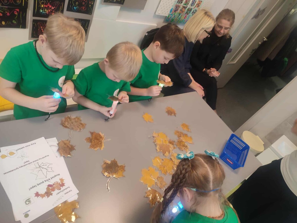 2025 m. lapkričio 13 d. grupės „Riešutėliai“ keturi vaikai su ikimokyklinio ugdymo mokytoja Vaida Vaičiuviene dalyvavo rytmetyje, STEAM veikloje „Rudens laboratorija“, vykusiame Šiaulių lopšelyje-darželyje „Berželis“. Renginyje dalyvavo ugdytiniai iš penkių darželių, todėl vaikai turėjo galimybę ne tik mokytis, bet ir bendrauti su bendraamžiais iš kitų įstaigų. Rytmečio tikslas – skatinti vaikų smalsumą, kūrybiškumą, bendravimo įgūdžius ir tobulinti jų gebėjimus per patirtinį mokymąsi. Renginio metu vaikai atliko įvairias tyrinėjimo, kūrybines ir loginio mąstymo veiklas. Jie skaičiavo rudens lapus, lygino formas, o vėliau lapus tyrinėjo mikroskopu, atrado smulkiausias jų detales ir susipažino su gamtos įvairove iš arti. Kitoje užduotyje vaikai konstravo išmaniuosius medžius, lavino vaizduotę ir kūrybinį mąstymą. Taip pat jie statė bokštus iš plastilino ir medžių šakelių, tyrinėjo konstrukcijų tvirtumą, mokėsi bendradarbiauti. Didelio susidomėjimo sulaukė veikla, kurioje naudojant žibintuvėlio apšvietimą reikėjo surasti paslėptus skaičius ir juos padėti prie atitinkamo skaičiaus, taip lavinant skaičiavimo, dėmesio ir problemų sprendimo įgūdžius. Vaikai taip pat atliko skaitmenines užduotis, kurios padėjo stiprinti informacinių technologijų ir loginio mąstymo gebėjimus. Renginio pabaigoje visi dalyviai buvo apdovanoti padėkos raštais ir dovanėlėmis, kurios suteikė daug džiaugsmo ir paskatino didžiuotis savo pastangomis. Grupės „Riešutėliai“ vaikai grįžo kupini teigiamų emocijų, naujų žinių ir įspūdžių.