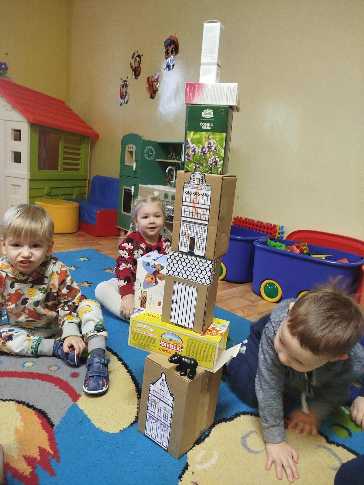 „Boružiukai“ ir „Kiškučiai“ grupės vaikai dalyvavo kūrybiškoje ir eksperimentinėje STEAM veikloje, kurios pagrindinė tema buvo namai ir miestas. Veiklos metu mažieji architektai turėjo galimybę ne tik iš arčiau susipažinti su įvairių namų formomis, dydžiais ir paskirtimis, bet ir patys išbandyti statybų procesą, naudojant dėžes, kartoną ir kitas paprastas medžiagas. Veikla buvo suplanuota taip, kad vaikai natūraliai tyrinėtų, stebėtų, lygintų ir eksperimentuotų, mokydamiesi per gyvą patirtį ir žaidimą.